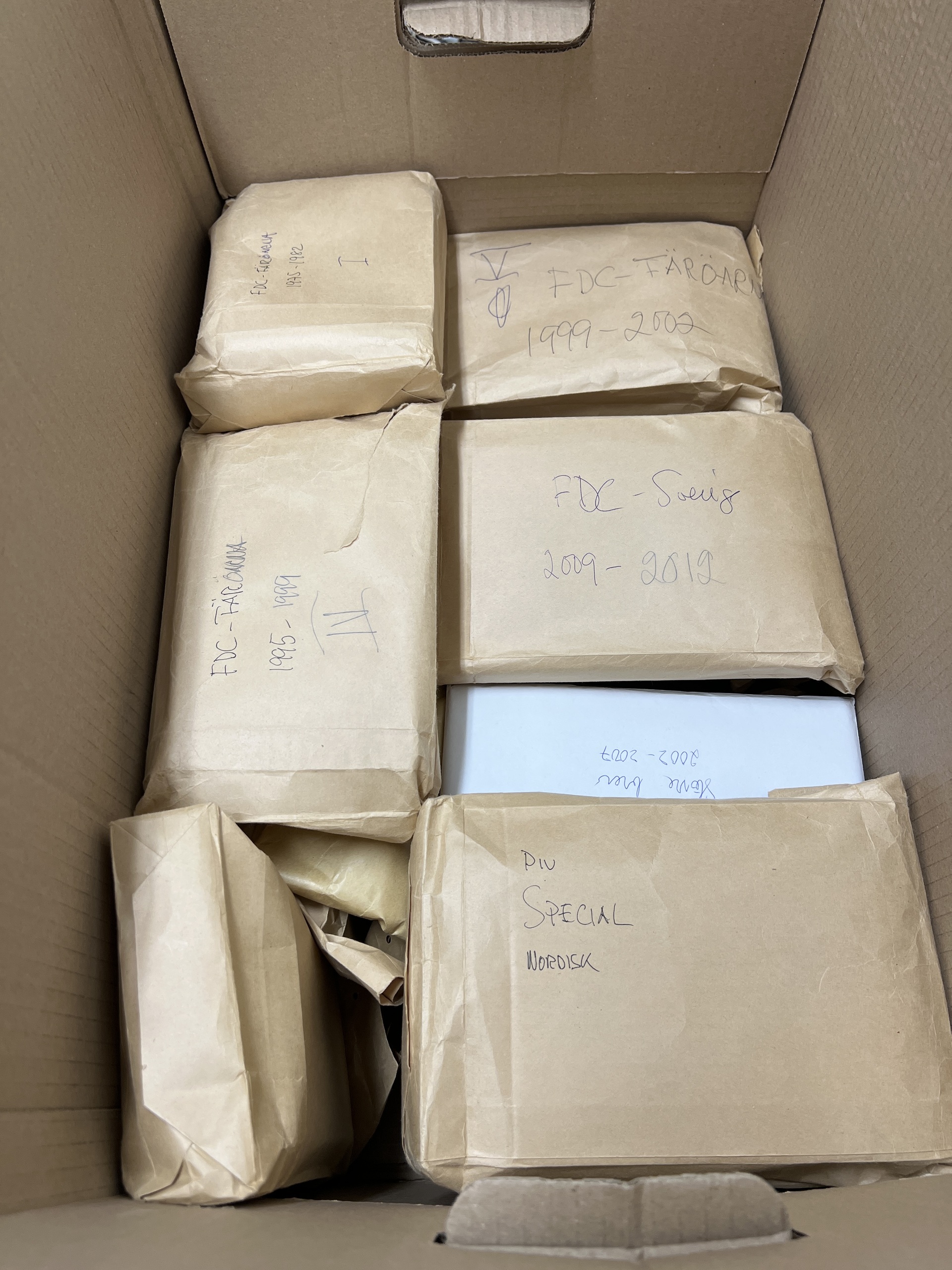 NORDIC COUNTRIES. Collection/accumulation ★★/★/⊙ 1900–2000s in removal box. Swedish FDCs 1970–2020s (not complete), Faroe Islands, Åland, Greenland FDC and year books. Some albums, boxes and Swedish nominal from 1990s, not counted. Excellent quality. Approx. 20 kg. (1000s)