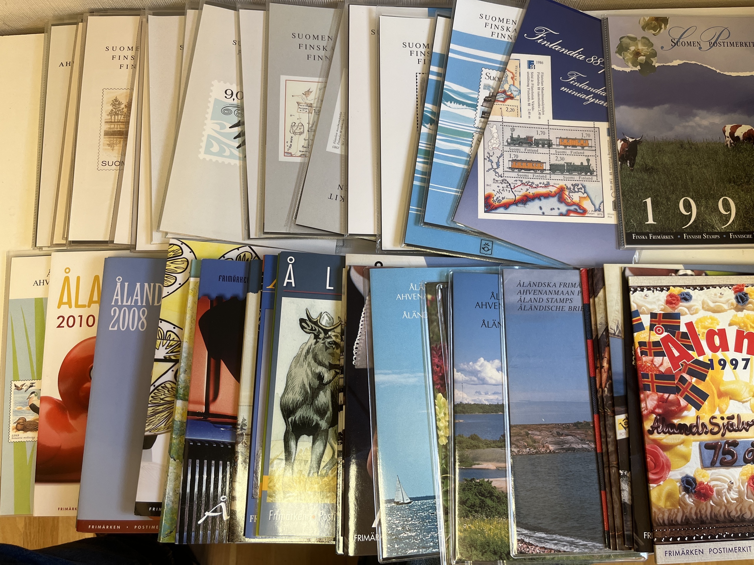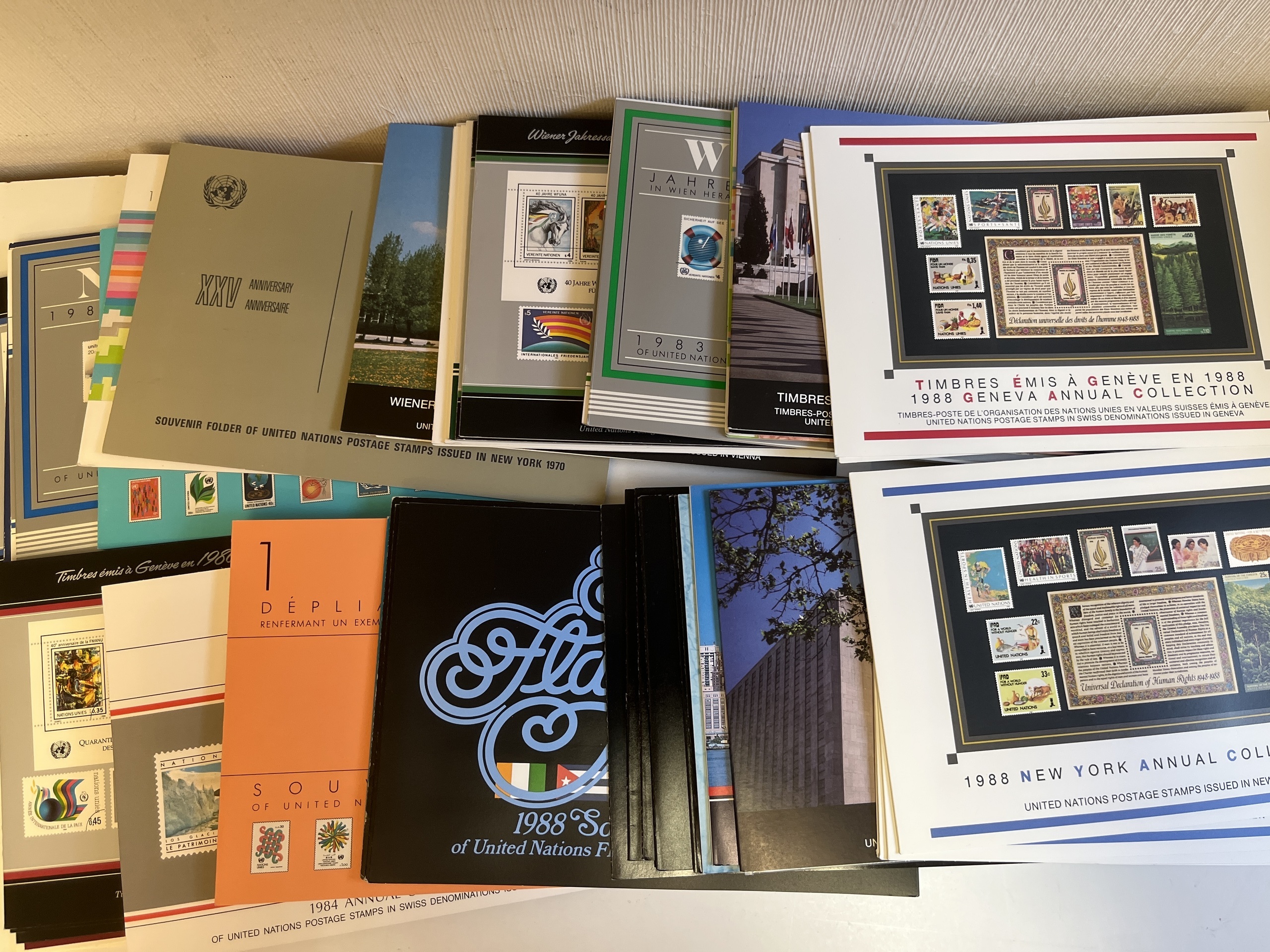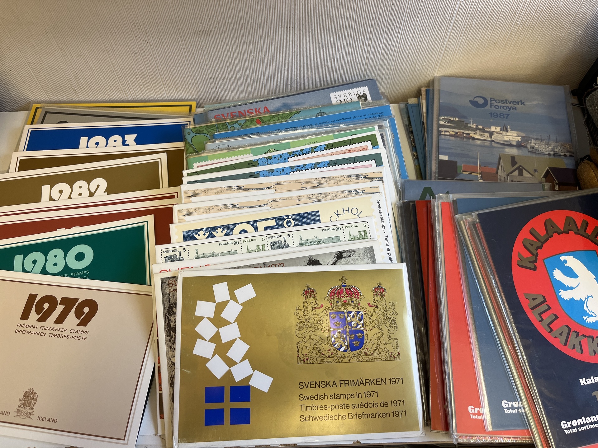 NORDIC COUNTRIES. Year sets, collection 1970– ca. 2000 in snall removal box and some souvenir folders from UN. Approx. 11 kg.