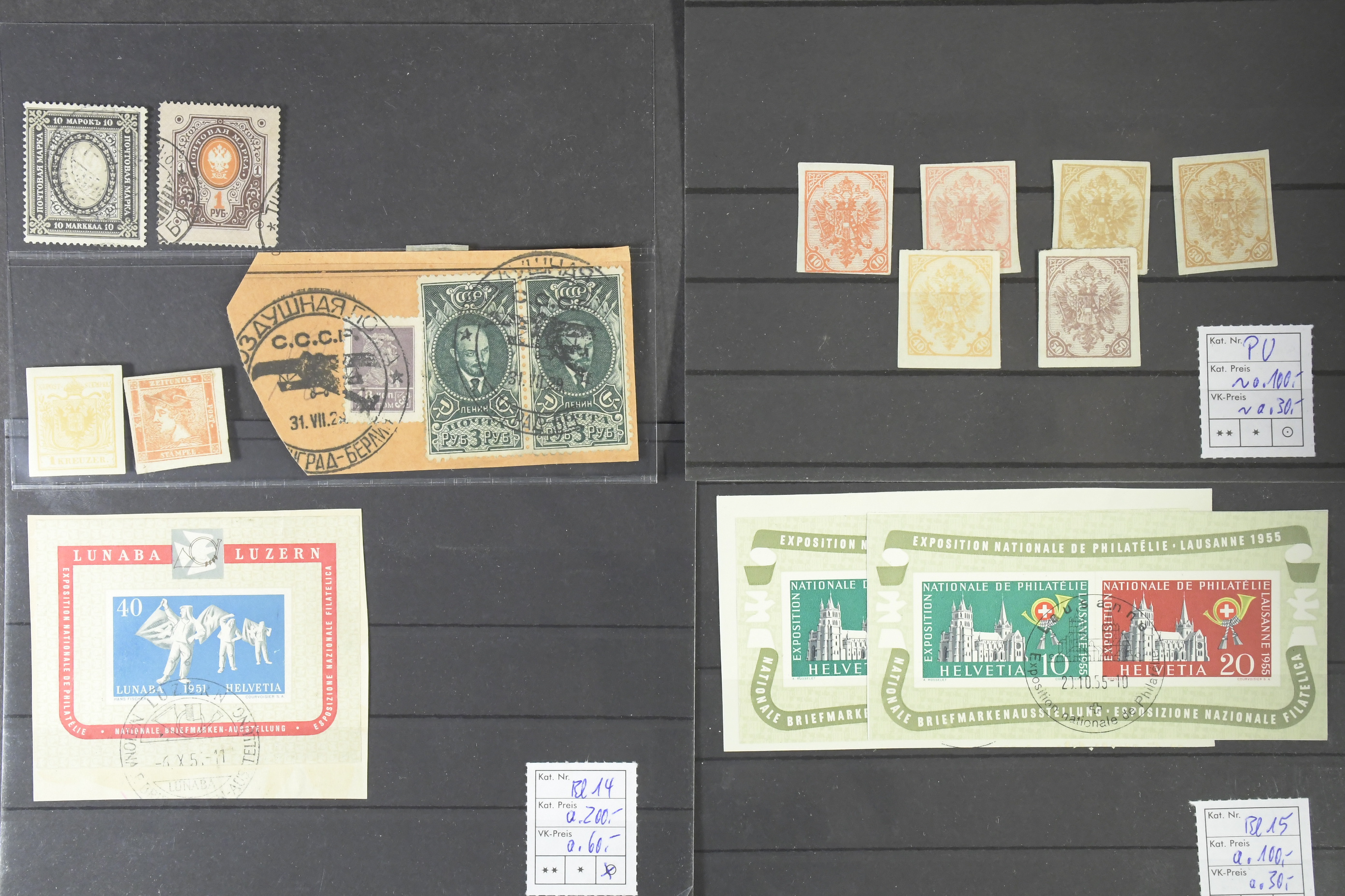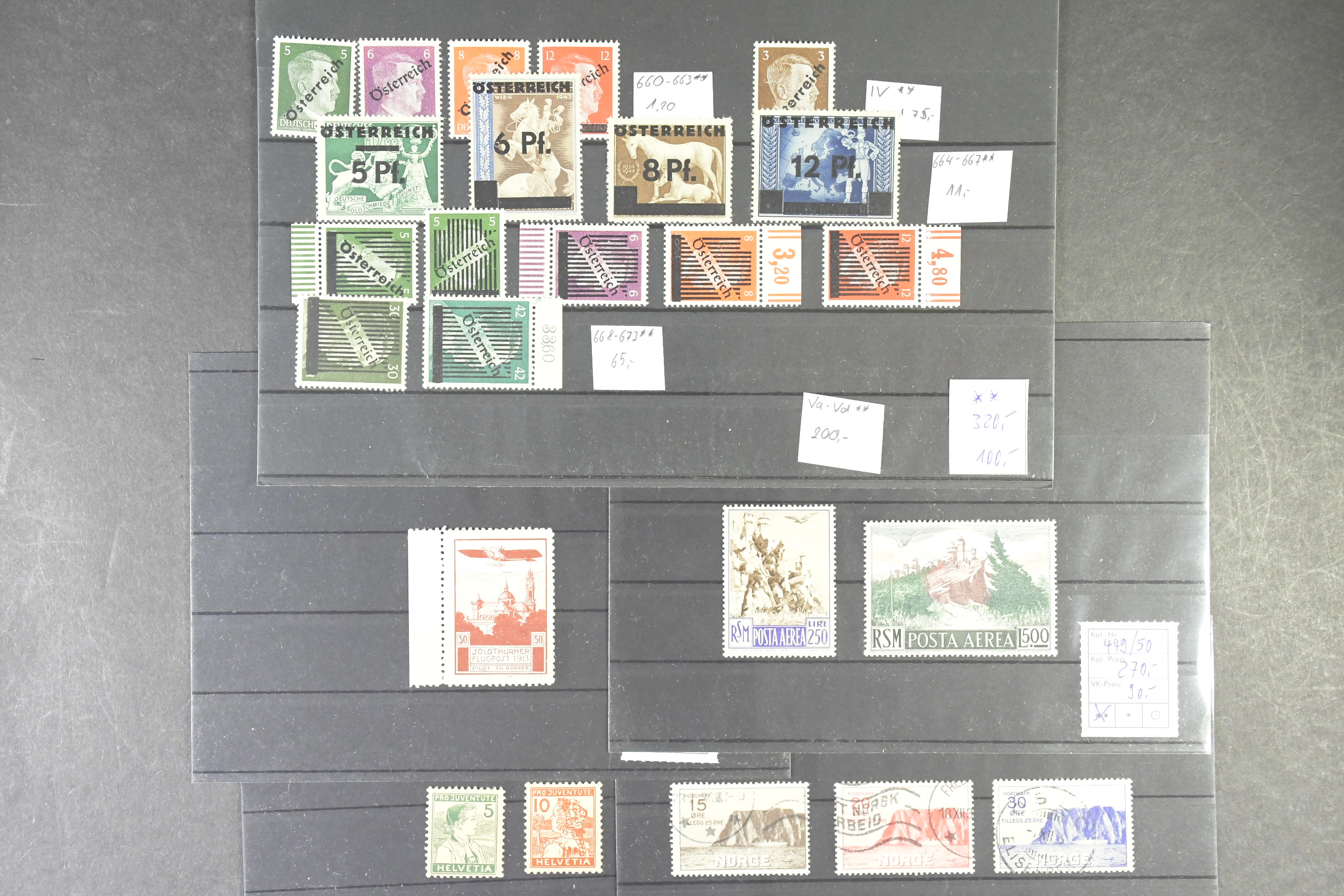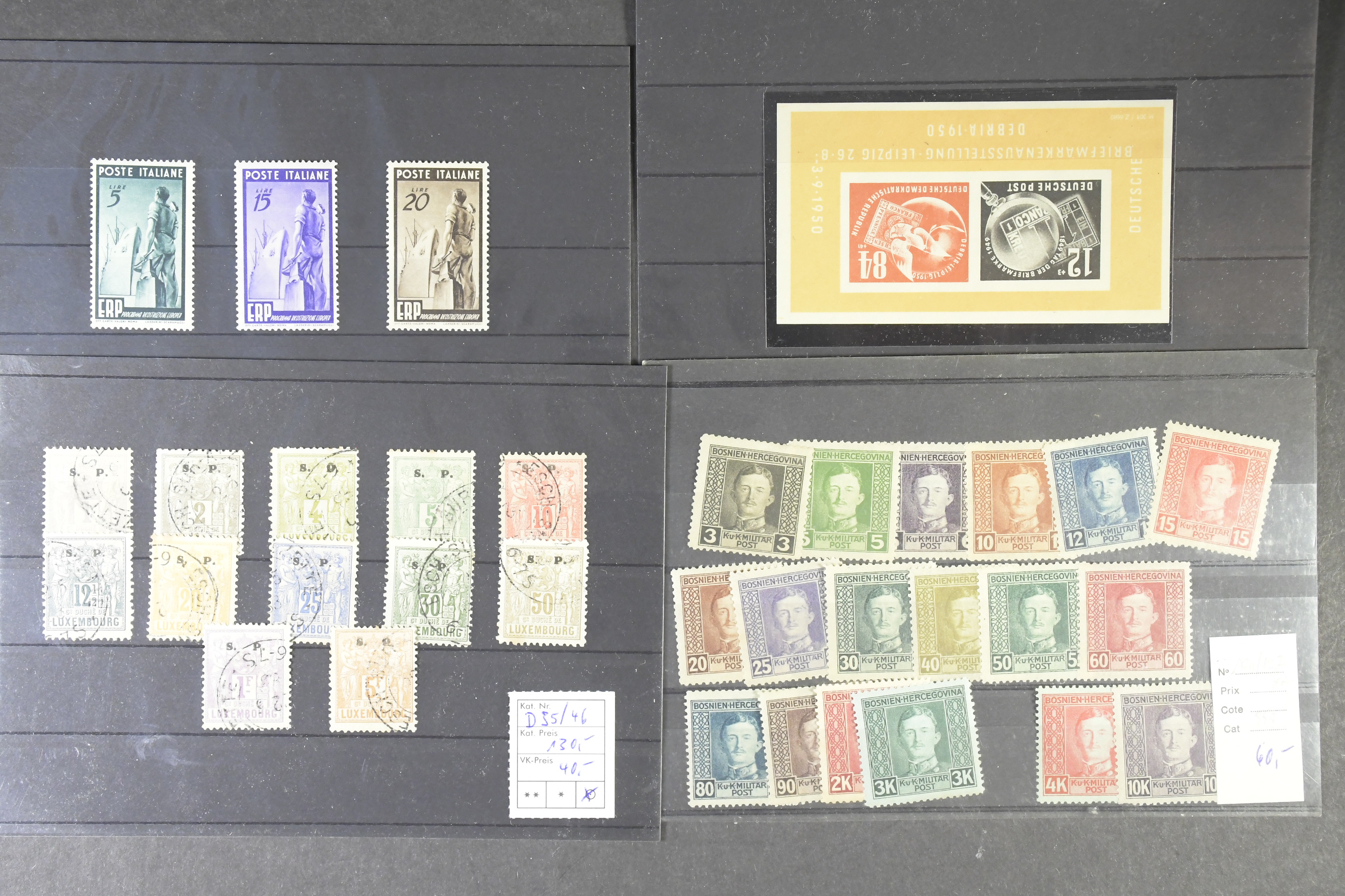 EUROPE. Lot ★★/★/⊙ Classics–1950s on cards. Medium priced and better stamps often with catalogue values (in EURO) and Mi numbers to facilitate resale. E.g. classic Portugal, Finland, Switzerland s/s, Bosnia, Germany and more. Complete overview on the website. Fine quality.