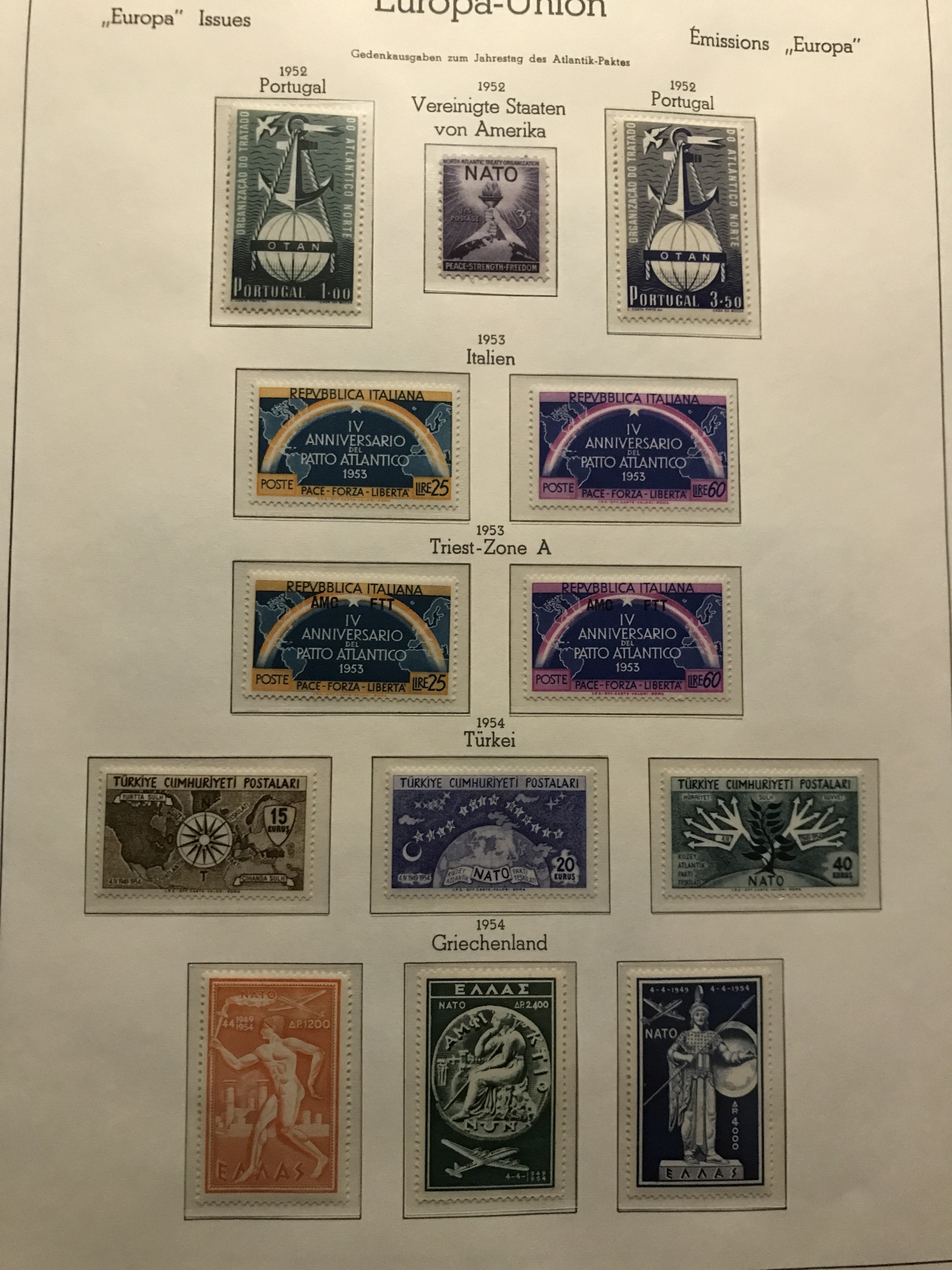 EUROPE. Mostly ★★. Collection European Union and some NATO 1949-60. Containing nice sets like e.g. Freece 1951 and 1954, Portugal 1952, Luxembourg 1951+1956-57 and Italy 1949 all **. Please see a selection of scans at www.philea.se. (170)