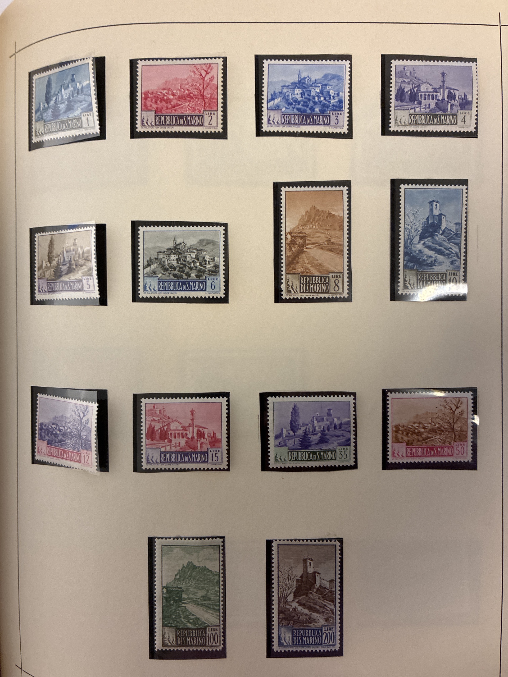 EUROPE. Collection ★★/★ 1920– in album. Interesting collection mainly Europe with landscape motifs som better series mainly * but some **. San Marino Mi.409-422 **, 464-476 **. Please see a selection of scans at www.philea.se. Mostly fine quality. (ca 400)
