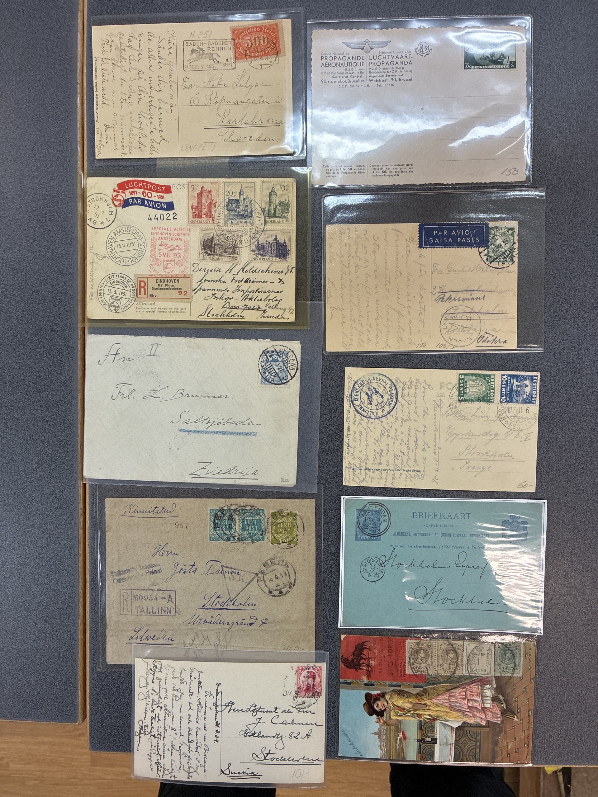 EUROPE. Covers about 1890–1940. 24 postcards ore covers mostly sent to Sweden. The entire lot is presented at www.philea.se.