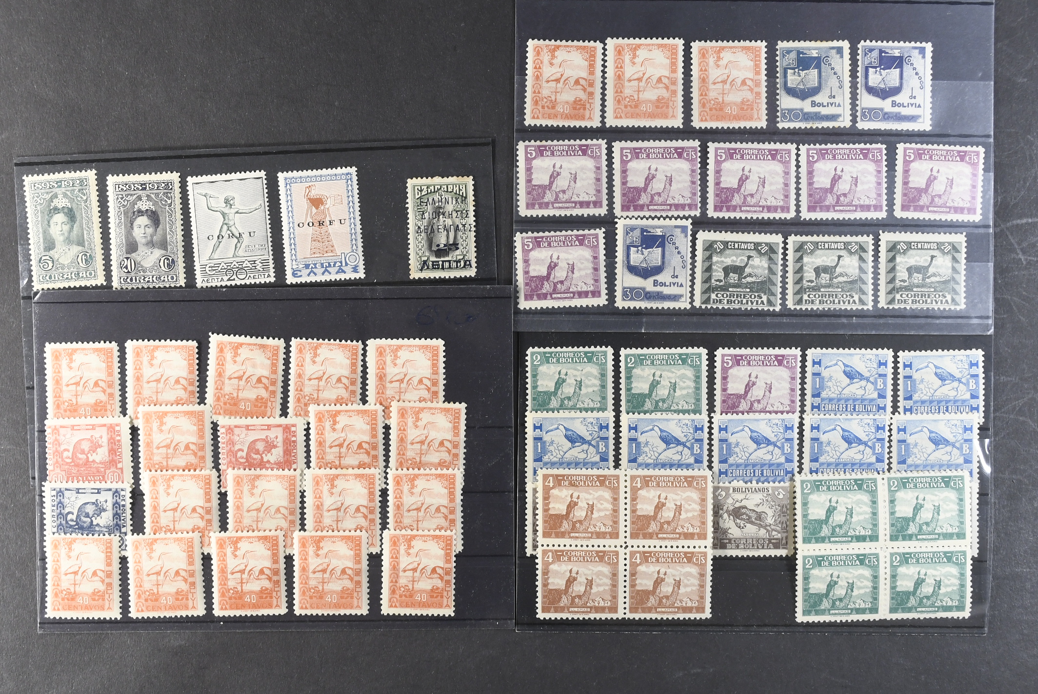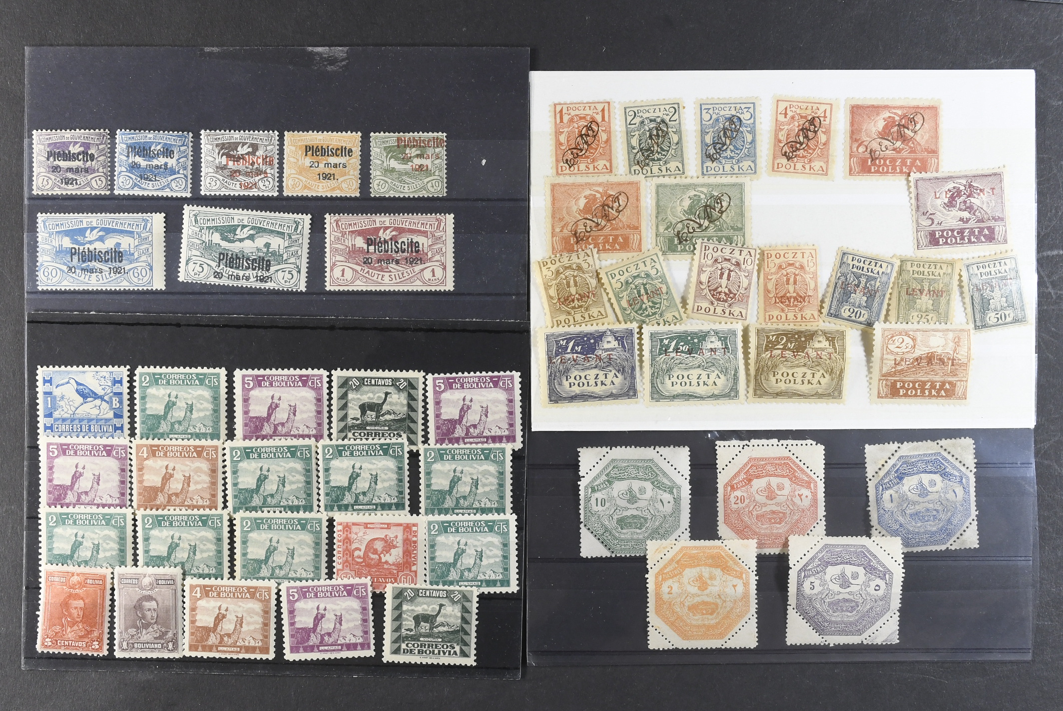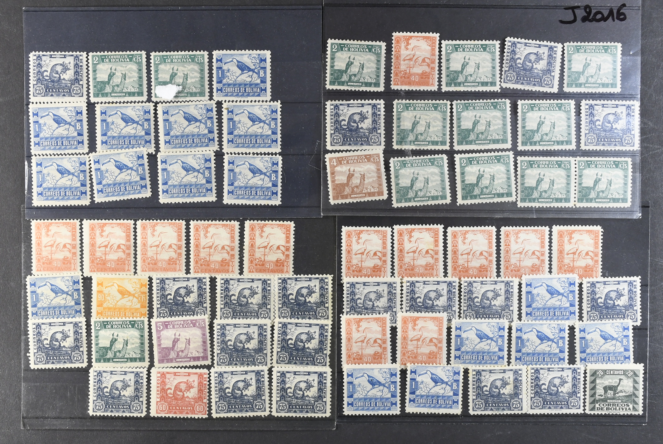 ALL WORLD. Lot ★★/★/⊙ on stock cards. Interesting mix with e.g. USA, Bolivia, France. Please see a selection of scans at www.philea.se.