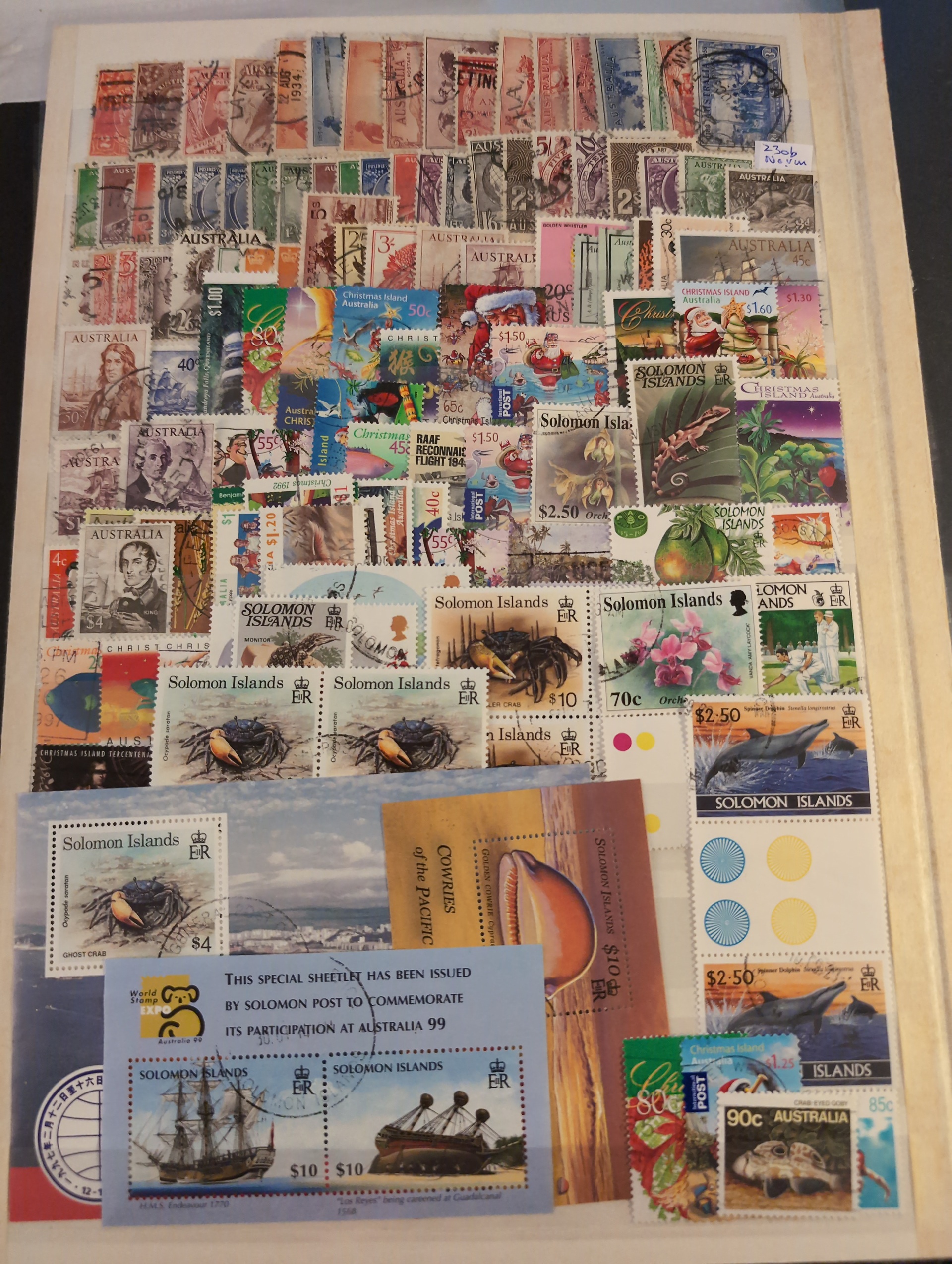 ALL WORLD. Collection/accumulation ★★/★/⊙ 1890s–1970s on stock pages. Africa, Middle East, Australia, Haiti, NZ, Faroe Islands and Oceania on stockpages and in packets. High cat. value. Incl. some better stamps. Please see a selection of scans at www.philea.se. Mostly good quality. (2000+)