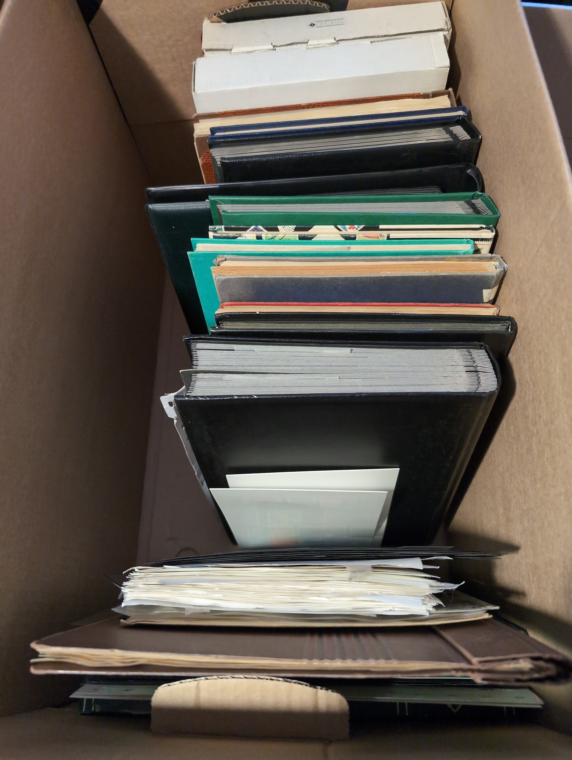 ALL WORLD. Accumulation ★★/★/⊙ 1870s–1990s in removal box. 15 stockbooks and albums. One album with cinderella, many different countries and ountries with some better stamps and sets. The entire lot is presented at www.philea.se. Somewhat mixed quality. Approx. 20 kg. (1000s)