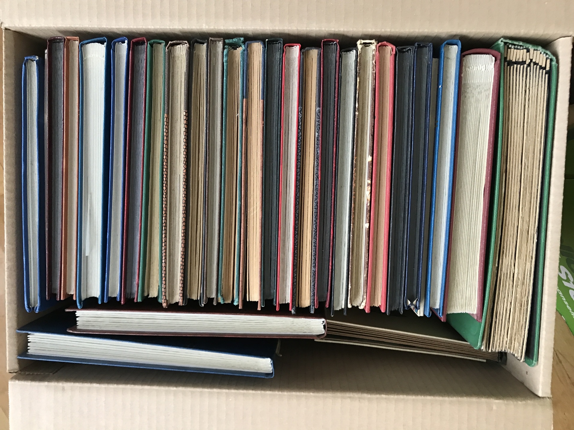 ALL WORLD. ★★/★/⊙. Box with stamps in 29 stockbooks . Mainly non-European countries incl. e.g. some thematics and ** sets, etc. Approx. 21 kg.
