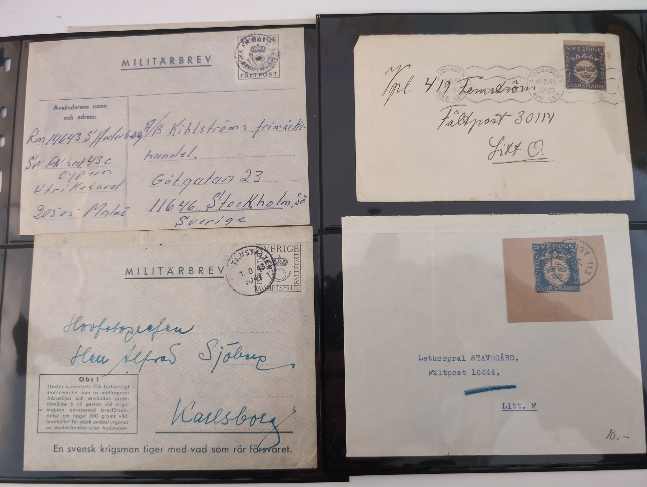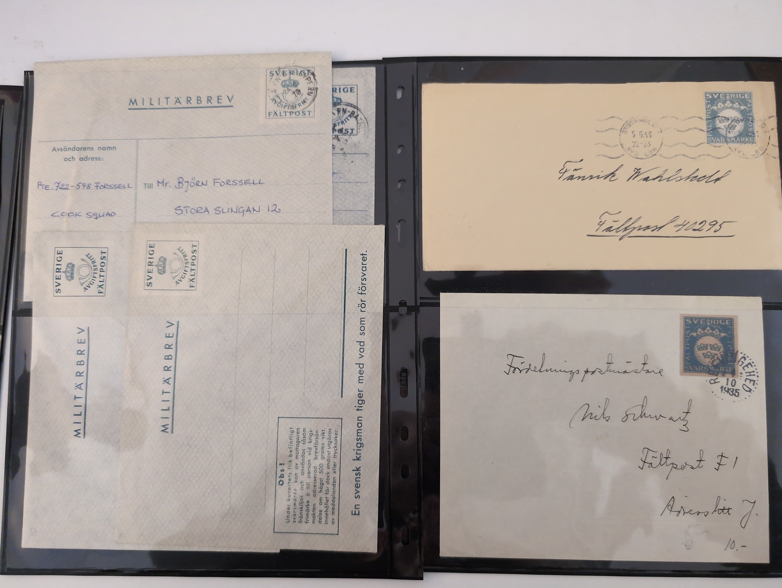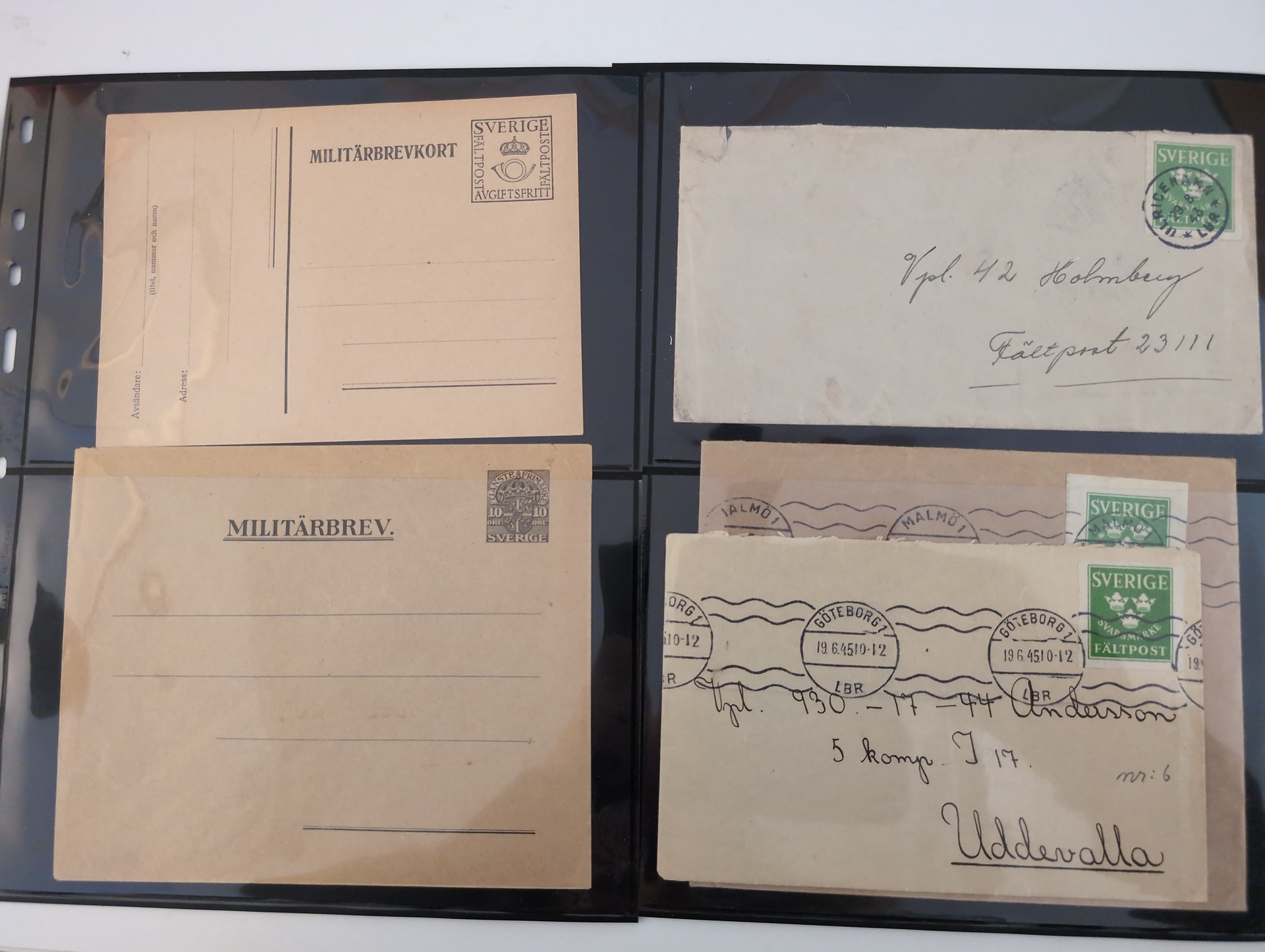 ALL WORLD. Lot covers 1849–1973 on leaves. lot incl. Japan 2s Postal card uprated 2s to Germany, and 5 other items, GB 3× Penny Red folded letters, 2 Early France, Cover with BC pair New Sweden and 24 Swedish Military mail items. The entire lot is presented at www.philea.se. Good quality. (39)