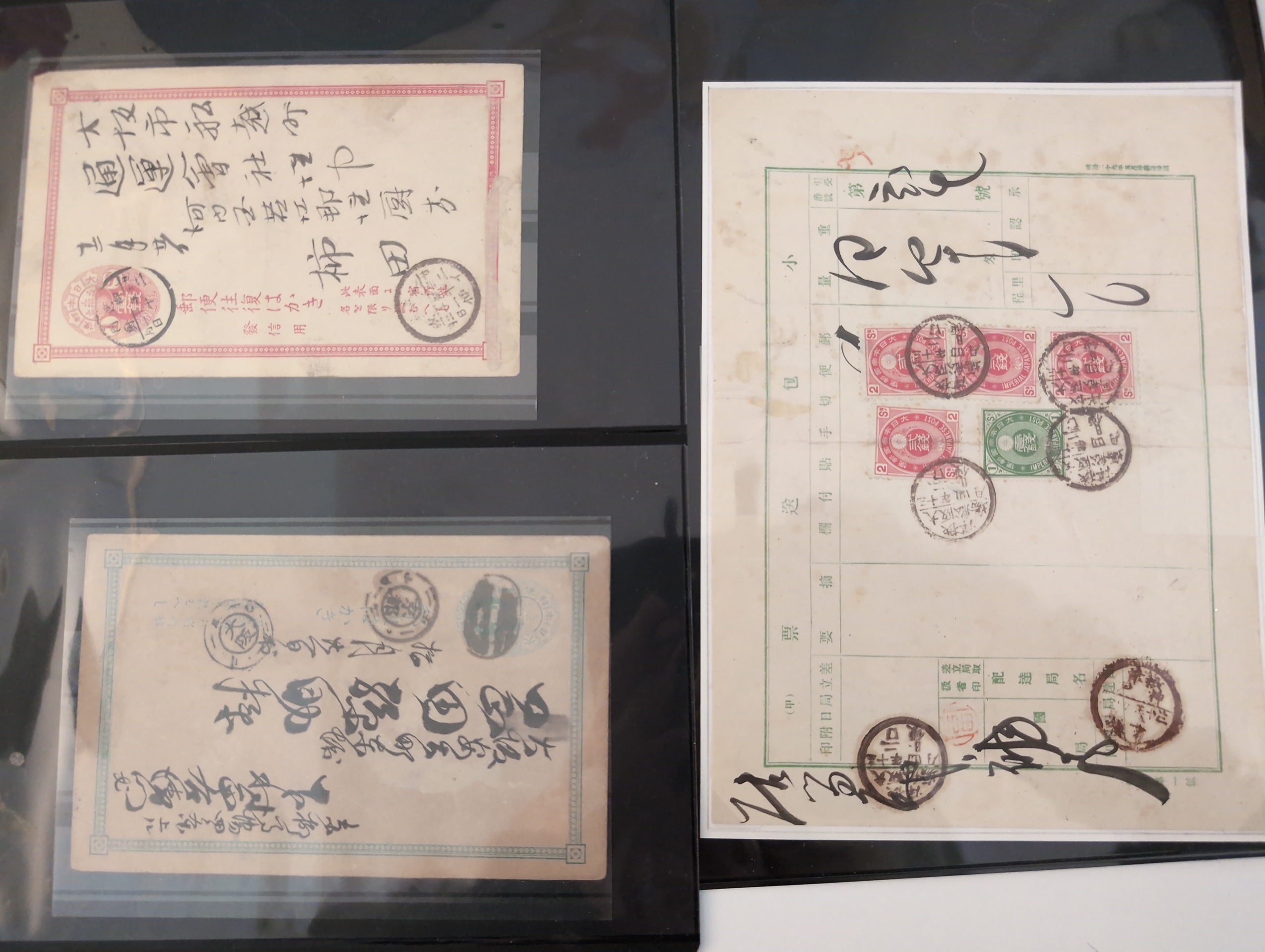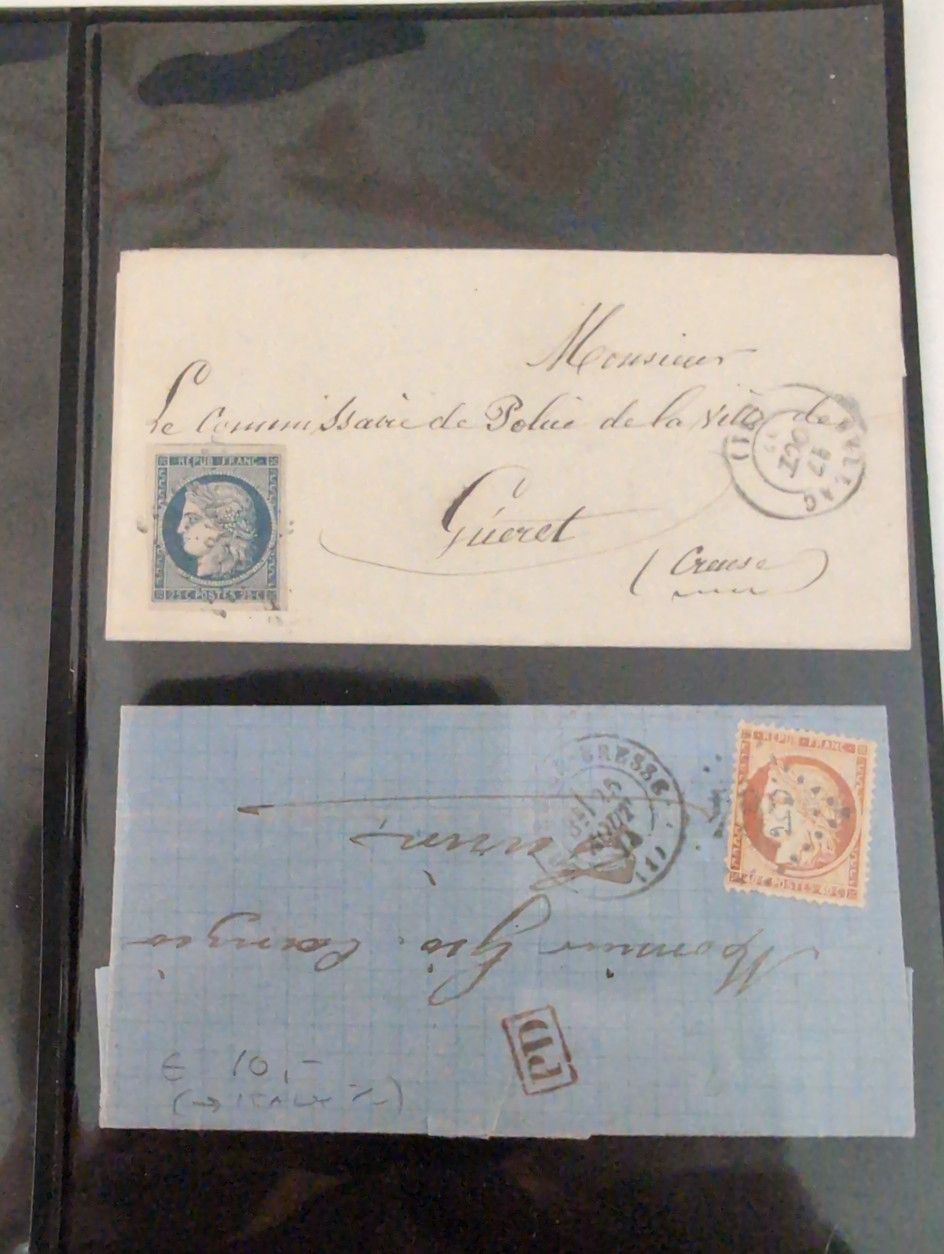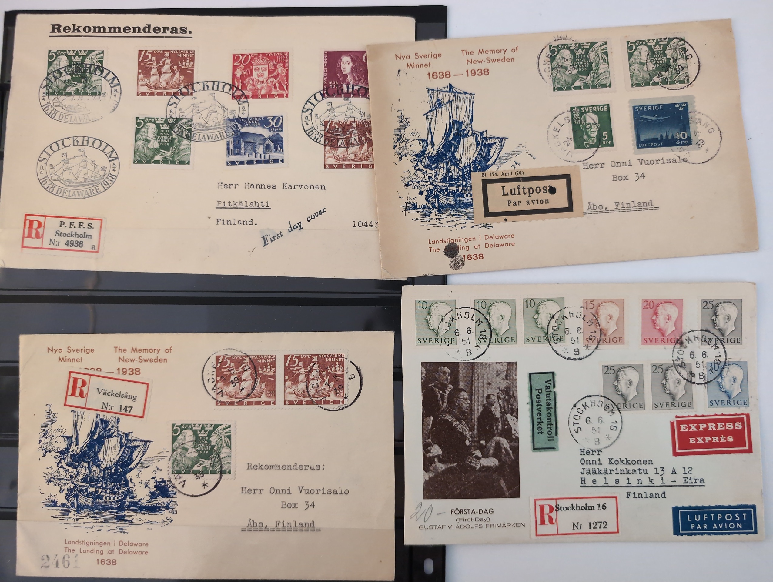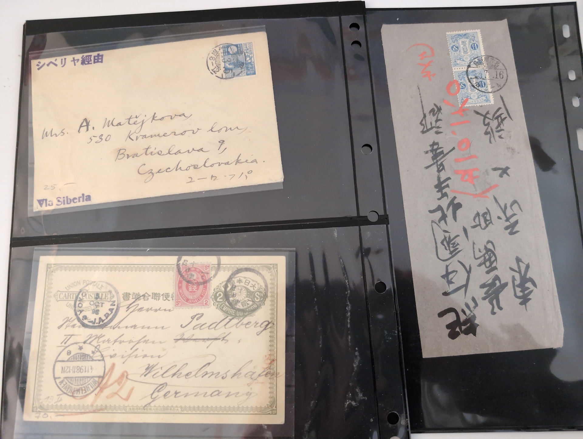 ALL WORLD. Lot covers 1849–1973 on leaves. lot incl. Japan 2s Postal card uprated 2s to Germany, and 5 other items, GB 3× Penny Red folded letters, 2 Early France, Cover with BC pair New Sweden and 24 Swedish Military mail items. The entire lot is presented at www.philea.se. Good quality. (39)