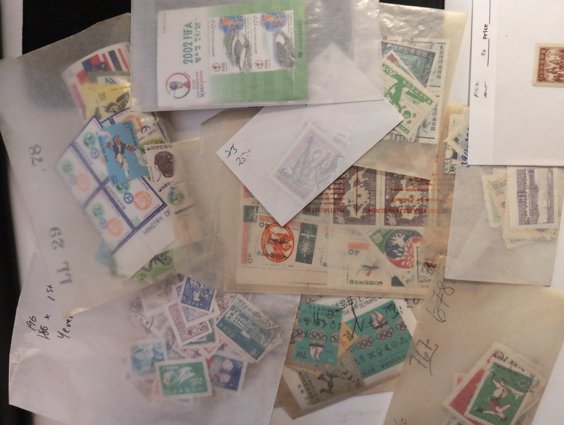 ALL WORLD, ASIA. Accumulation ★★/★/⊙ 1880s–1980s in medium removal box. 17 stockbooks and albums, packages and envelopes. Much to go through incl. Hong Kong, Malayan states, Manchukuo, Singapore, Taiwan, Thailand, South Korea incl. ca. 100 S/S many different and much more. Somewhat mixed quality. Approx. 16 kg. (1000s)