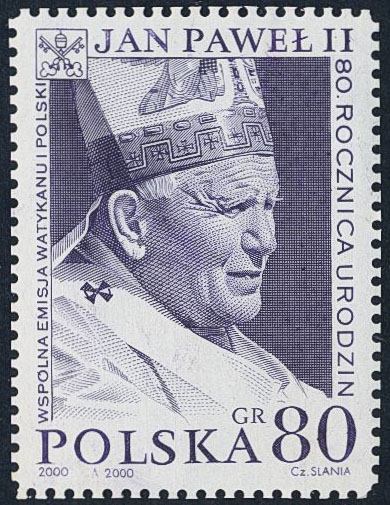 Thematics, Slania, Poland. Michel 3830. (★). 2000 80th Birthday of Pope John Paul II 80 gr. Stamp proof in greyish-ultramarine.