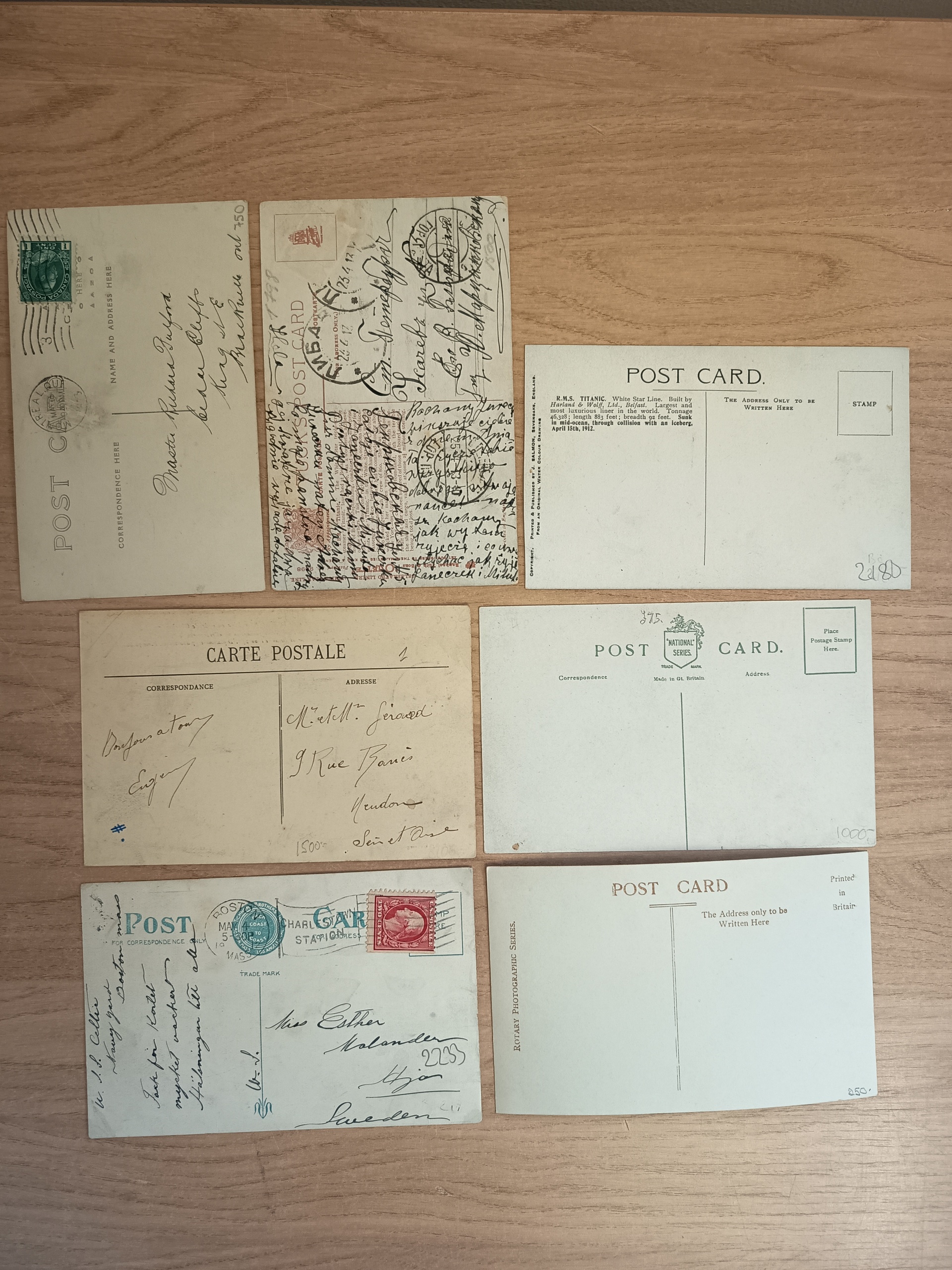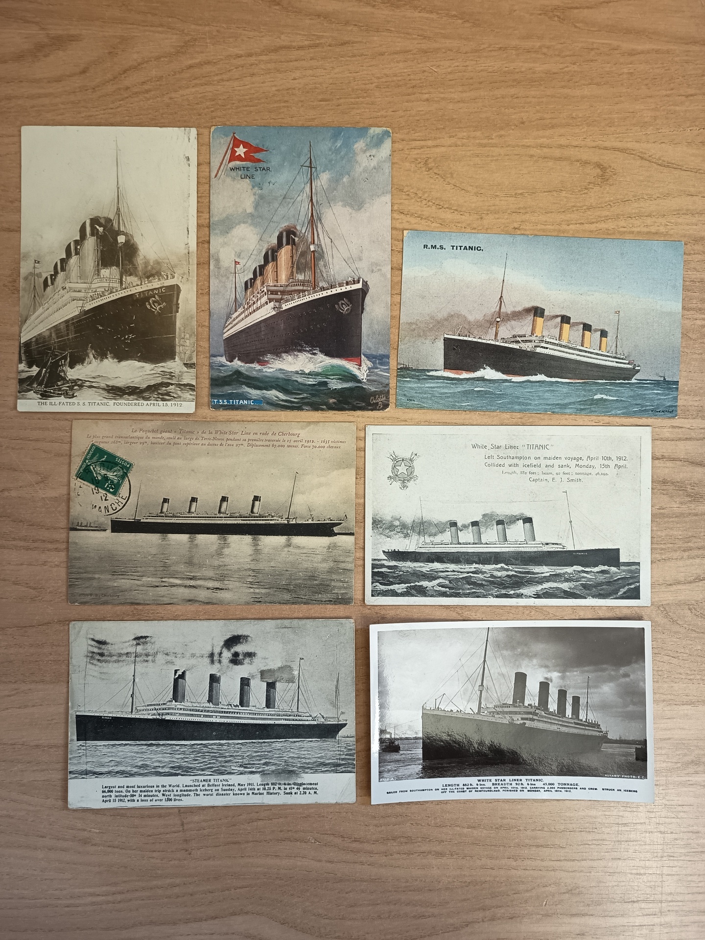 Thematics, Ships. Picture postcards. TITANIC lot 7 different cards. Mostly good quality.