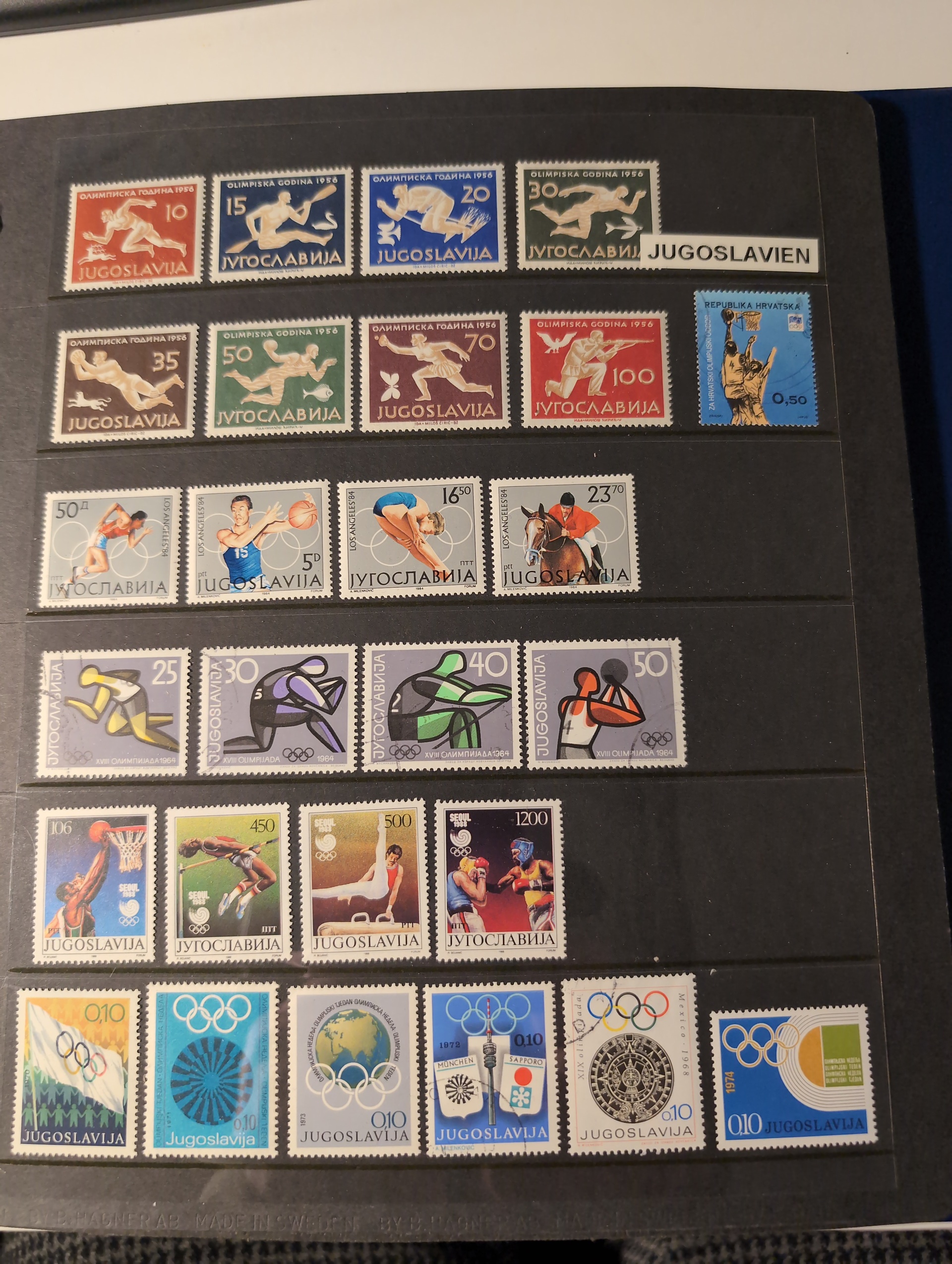 Thematics, Sports / olympic games. Collection ★★/★/⊙ 1900–1980s in box. Three visir albums and one other album with sport stamps. The visir ablums dedicated to olympics and the last one with all sort of different sports. Please see a selection of scans at www.philea.se. Mostly fine quality. Approx. 6 kg. (1500+)