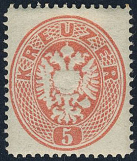 Austria. Michel 26 ★, 1863 Double Eagle 5 Kr rose. EUR 850