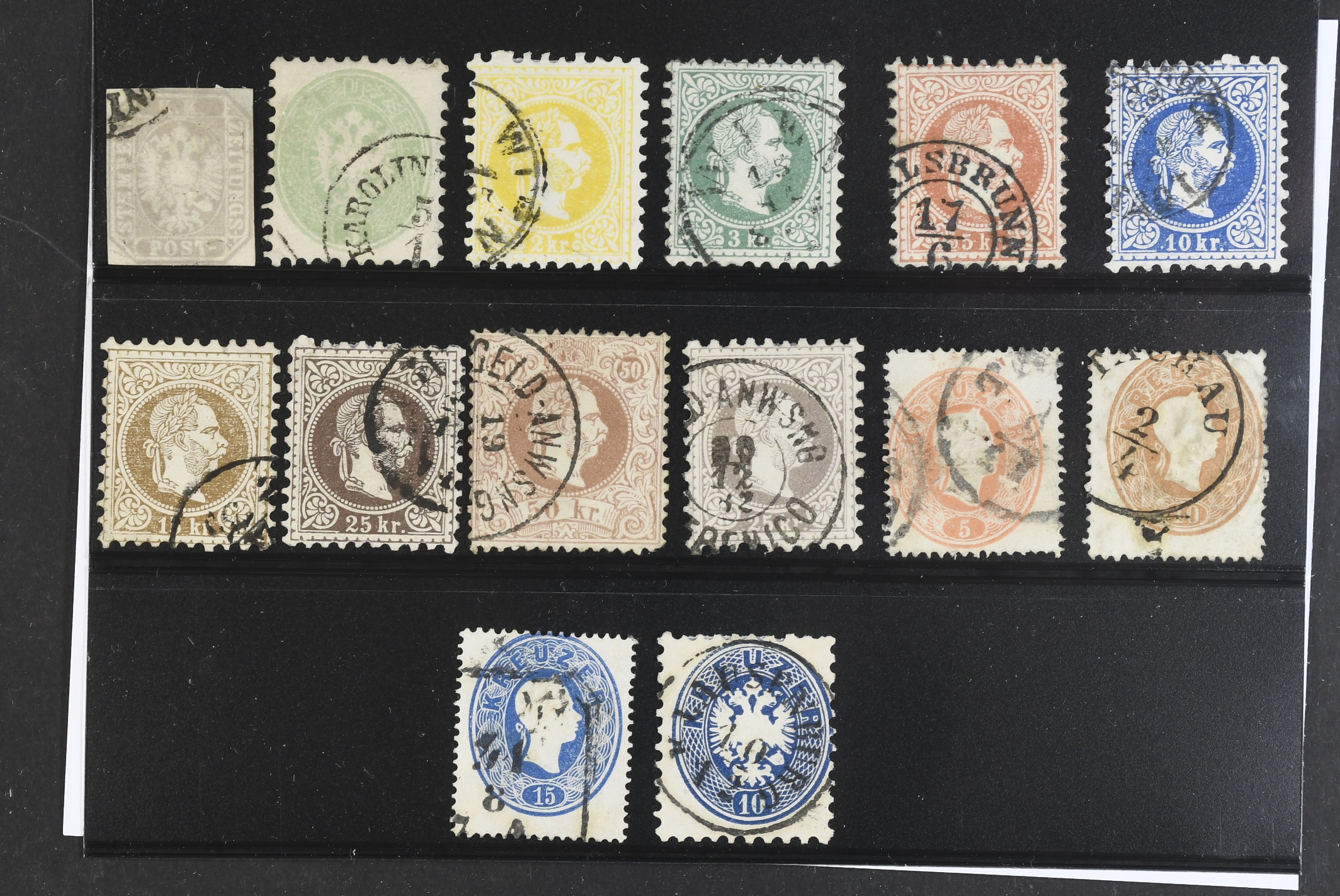 Austria. Used 1860–1867. All different, e.g. Mi 29, 31, 35 I–41 I, 40 II. Mostly good quality. Mi € 540 (14)