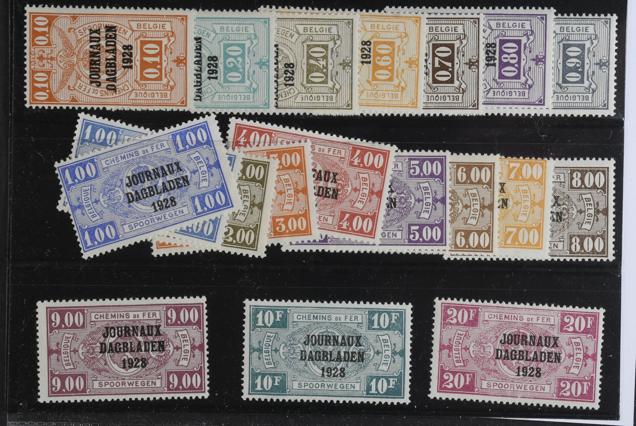 Belgium. Newspaper Michel 1–19 ★★/★, 1928 Overprint in railway stamps SET (19). EUR 350