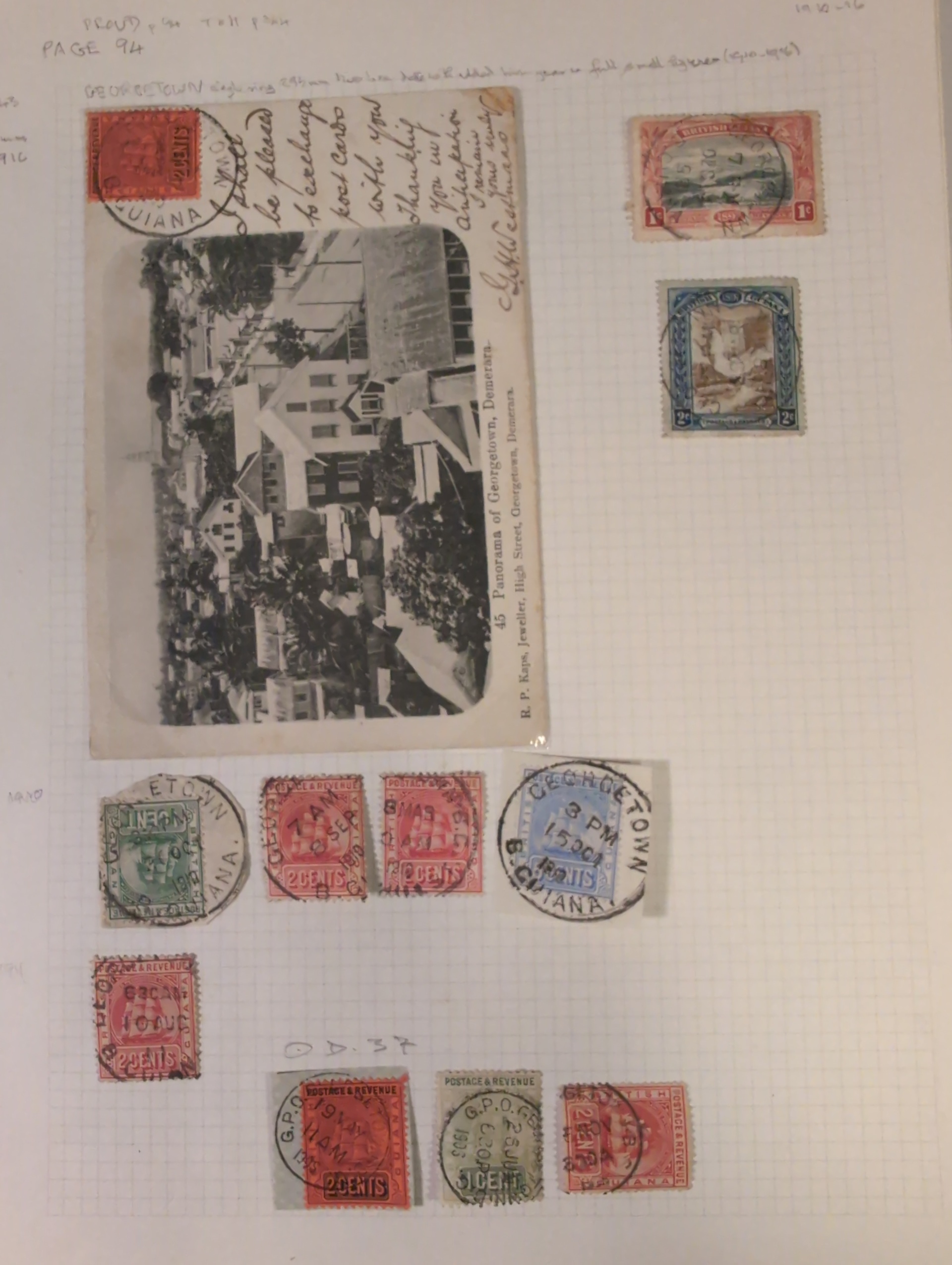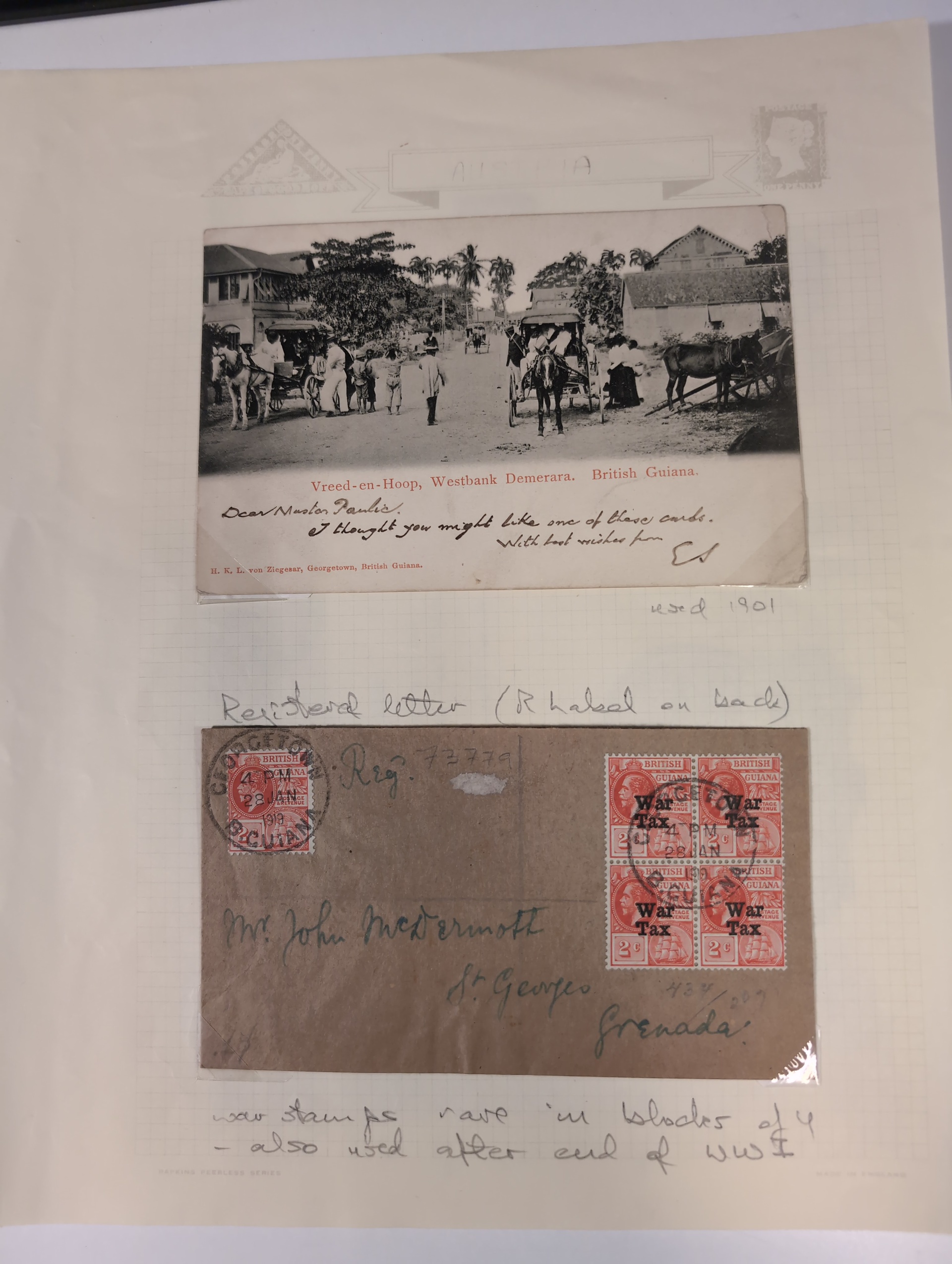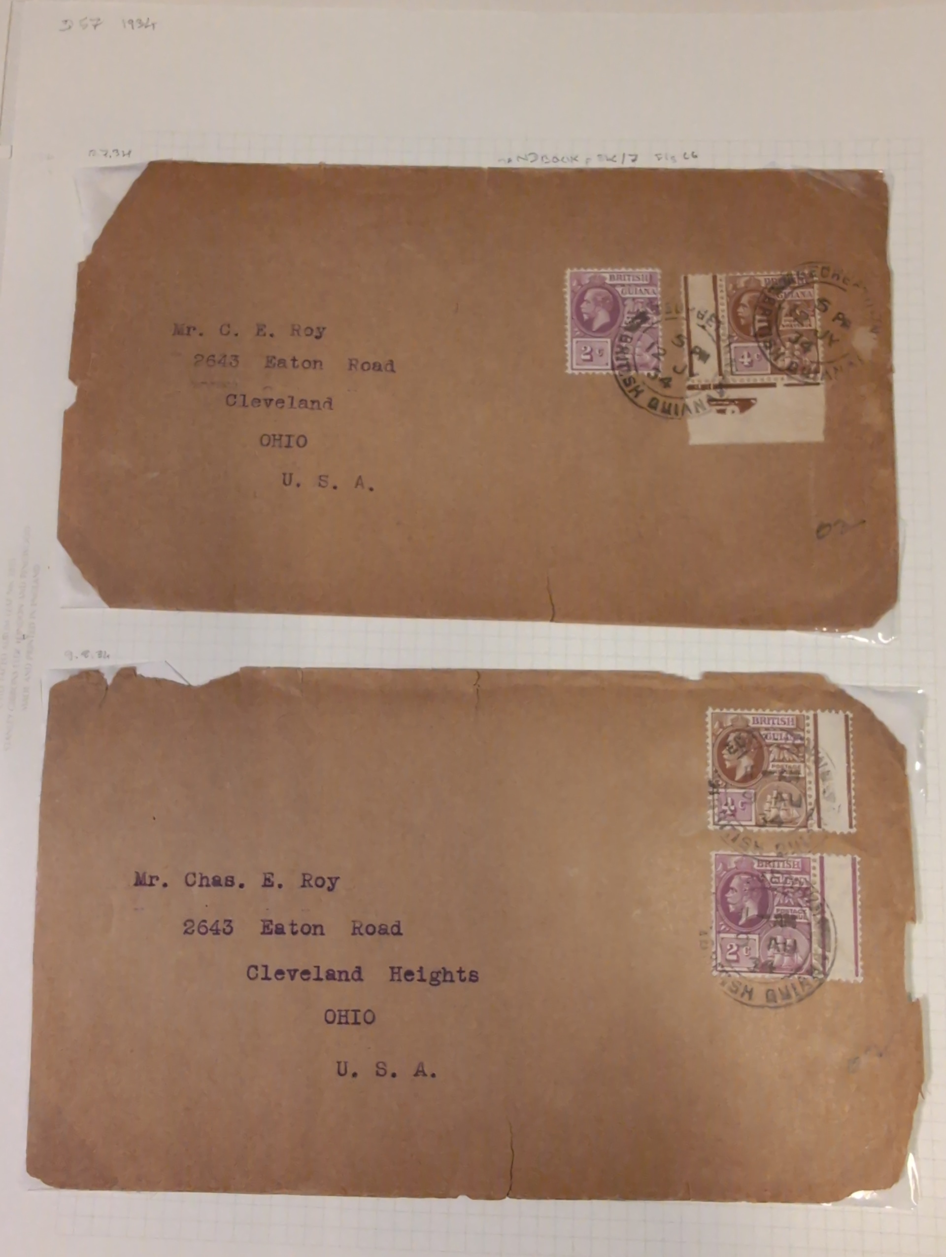 British Guyana. Collection covers 1916–1948 on leaves. Two early postcards and 10 covers. Stamps with cancel interest. The entire lot is presented at www.philea.se. Mostly good quality. (12 Covers+24 stamps)
