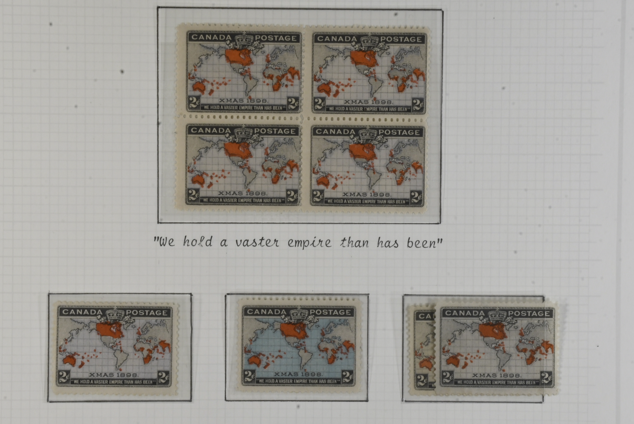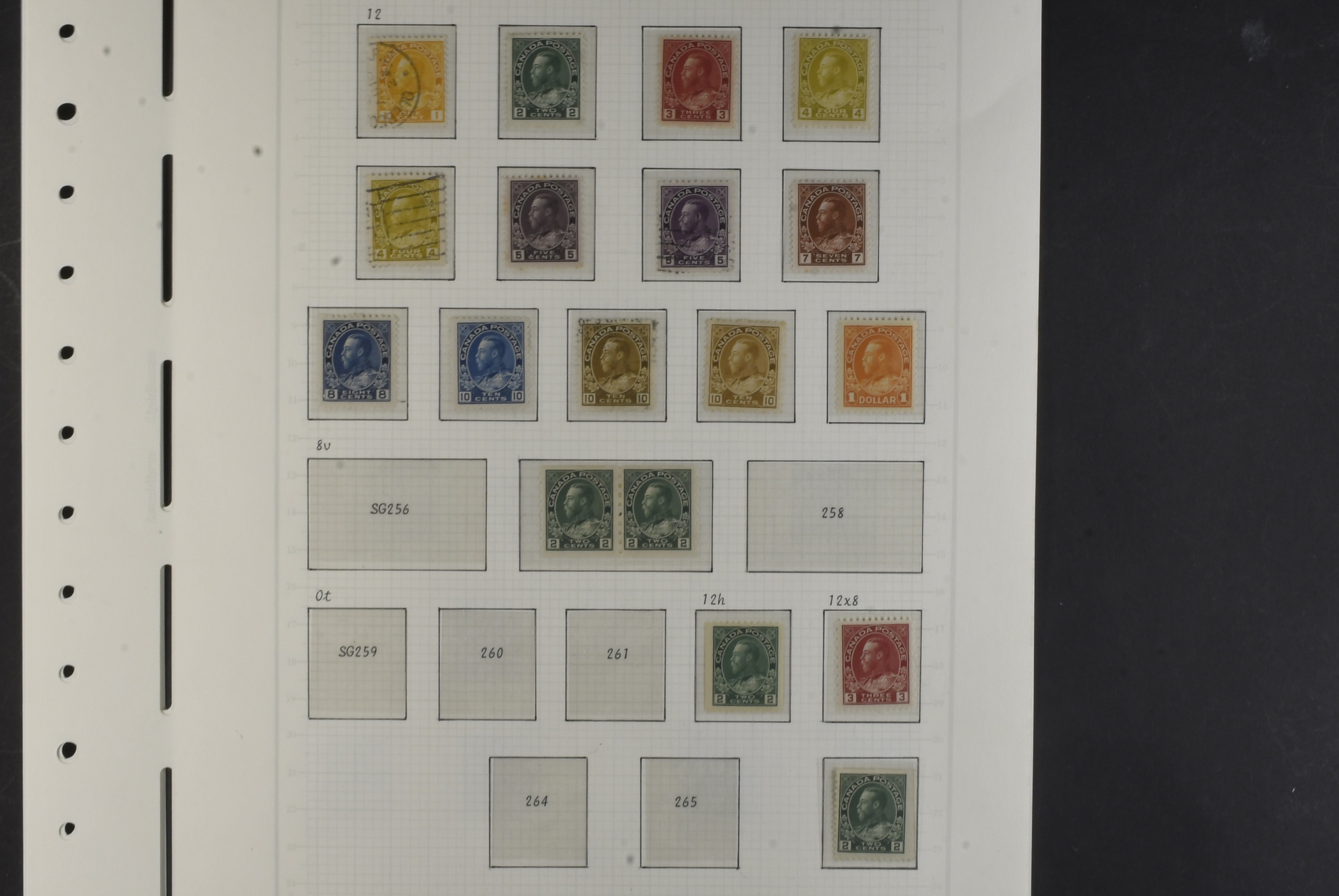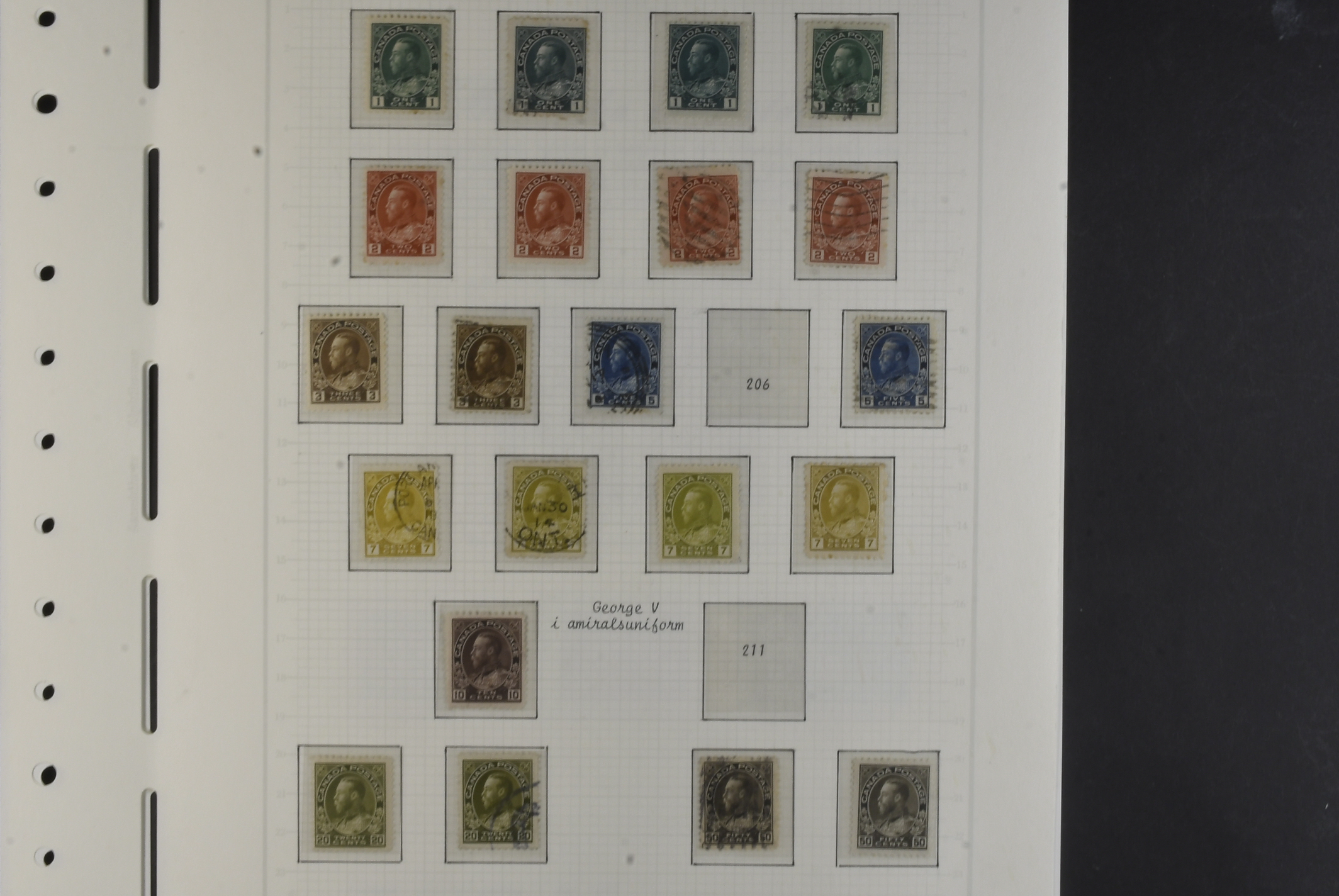 Canada. Collection ★/⊙ 1911–1937 on leaves. 1898 block of 4 UM with usual gum bends. 1911 KGV mixed mint and used with several better and some coils. E.g. SG207 used, 212 mh, 215 mh, 224b used, 255 mh, 262 UM and Newfoundland KGVI coronation set SG257–267 Please see a selection of scans at www.philea.se. Good quality. (79)
