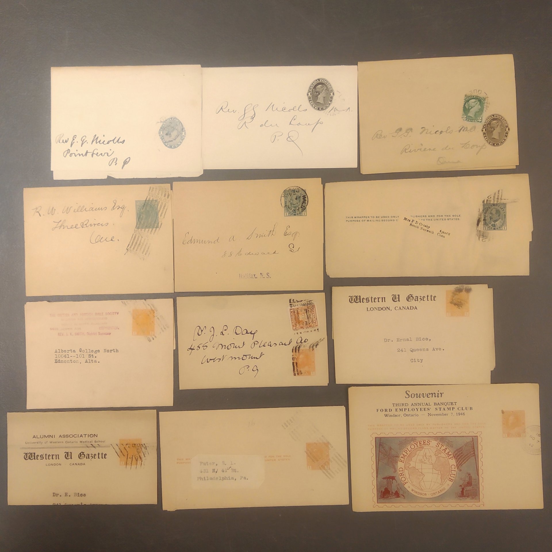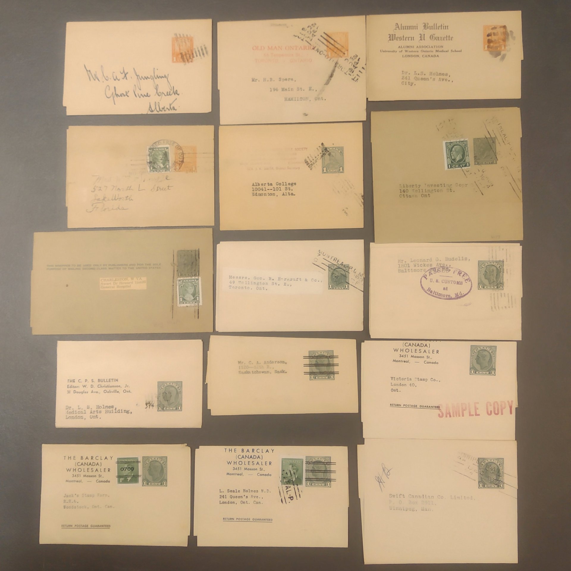 Canada. Postal stationery. Collection Wrappers ex No 1–41, incl. types, additional frankings, destinations and private prints, also two official with perfins. 67 different in glassine envelopes classified after special catalogue by Kosniowski. Please see a selection of scans at www.philea.se. Good quality.