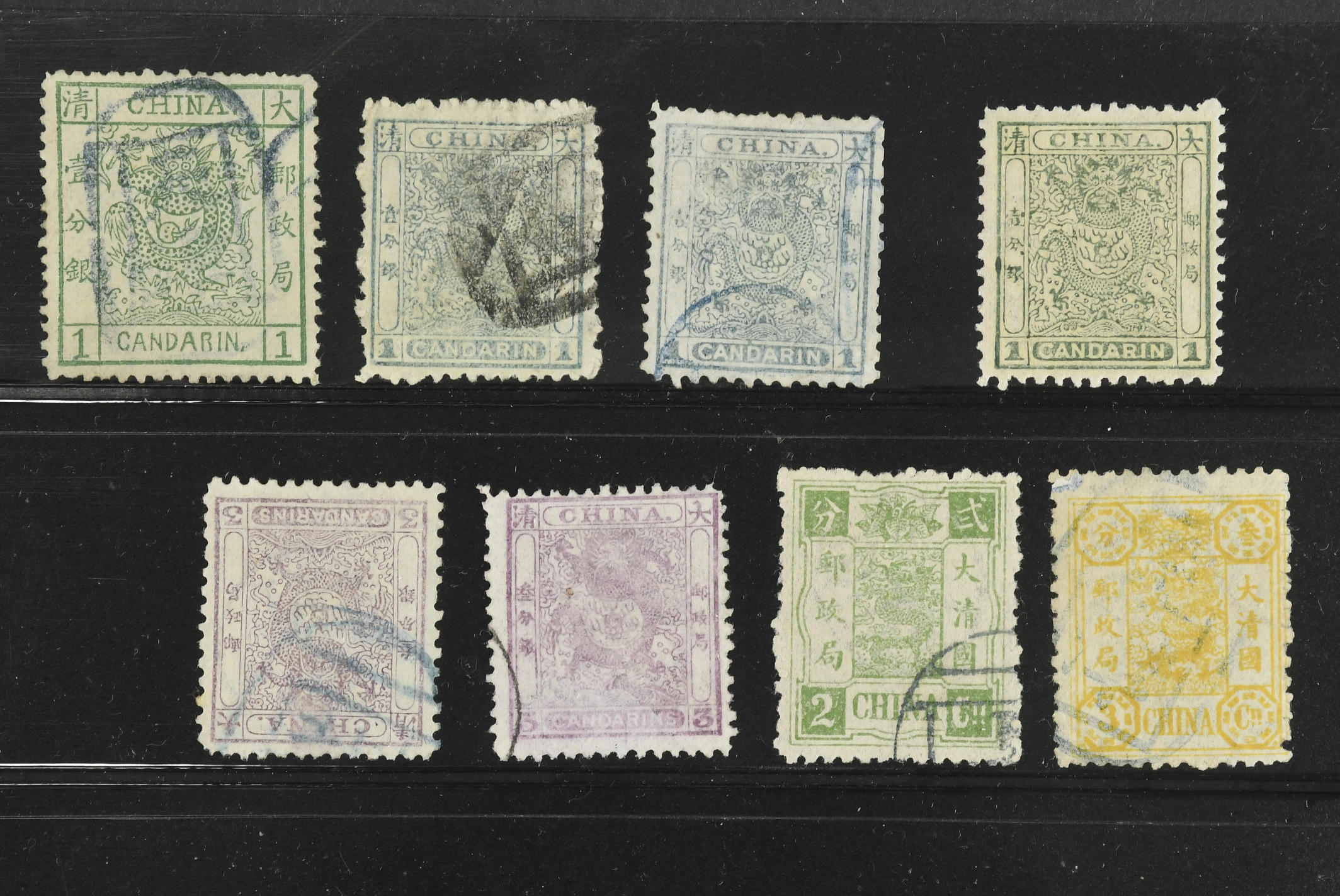 China, Empire. Lot used 1878–1894. Large dragon with perf. faults, others F/VF. €595