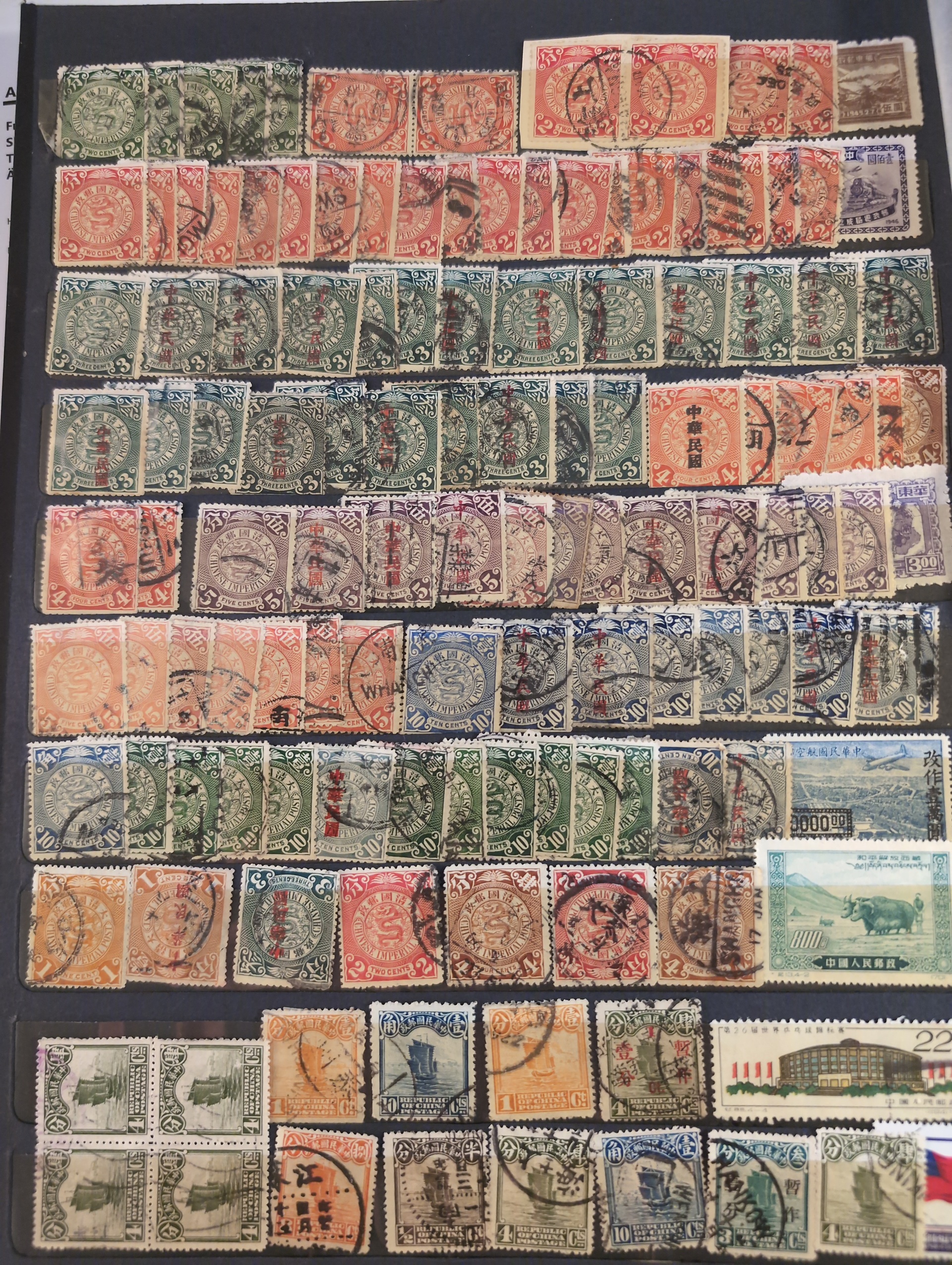 China, mixed. Accumulation ★★/★/⊙ ca. 1900–1990s in stockbook. Nothing expensive but incl. about 180 coiling dragons. Please see a selection of scans at www.philea.se. Somewhat mixed quality. (1000+)