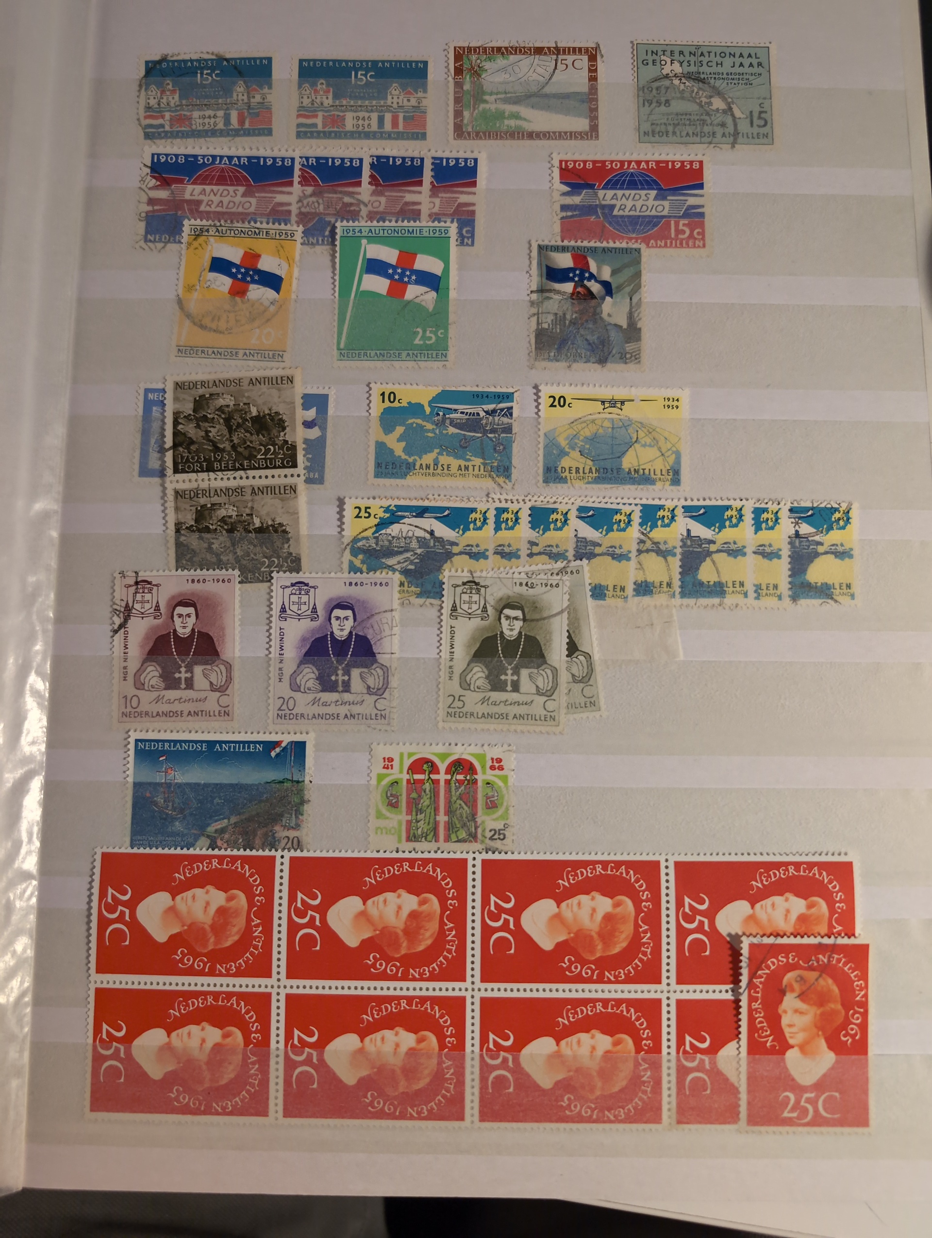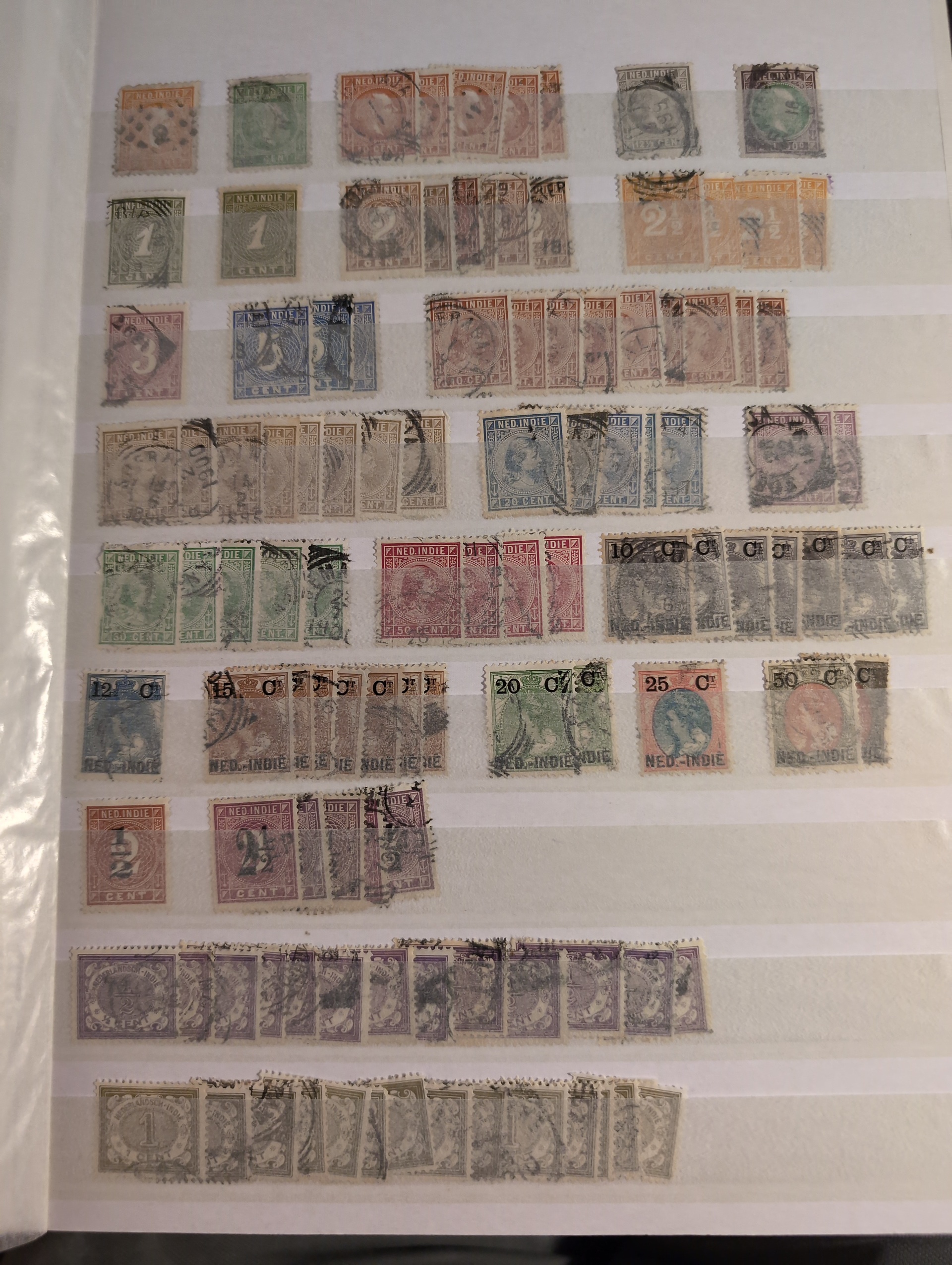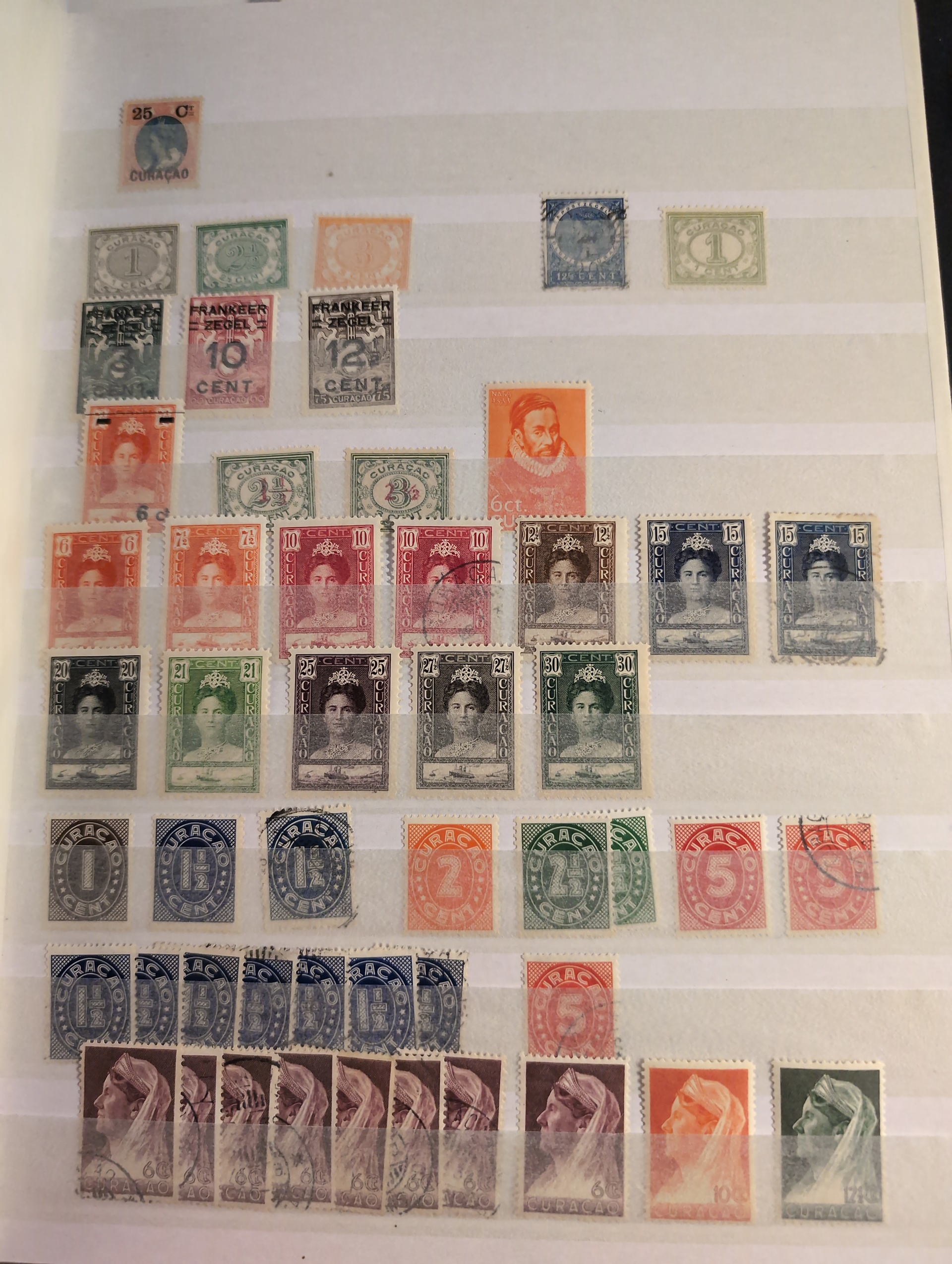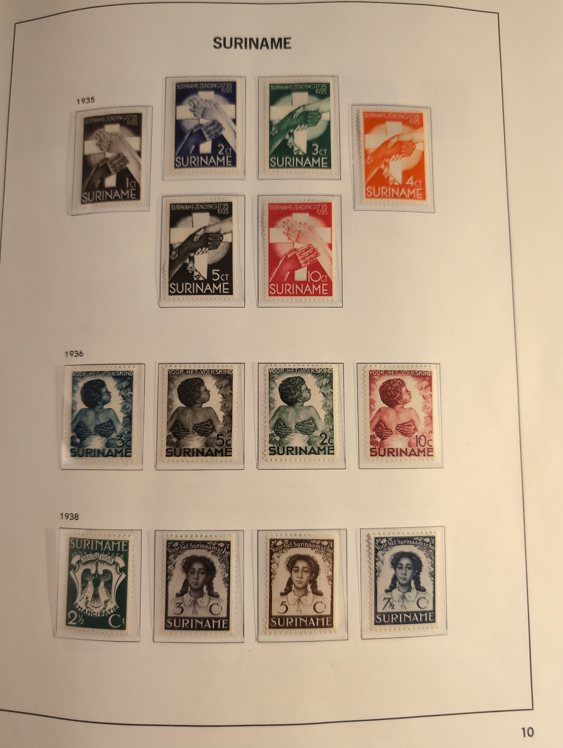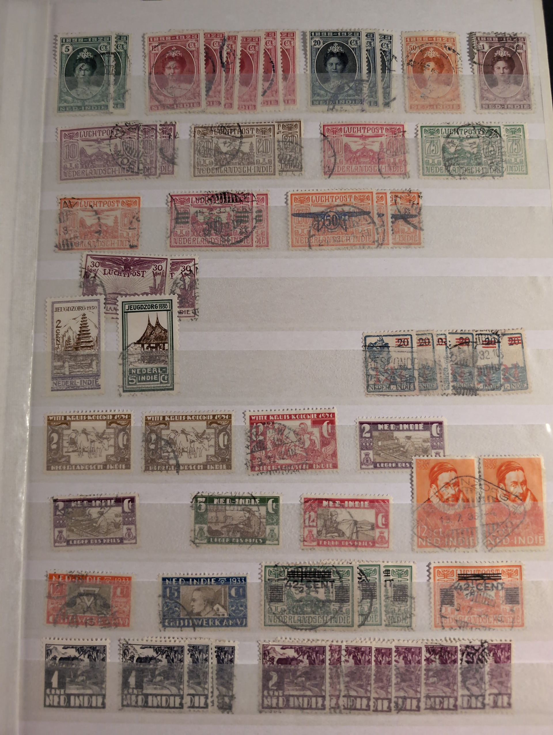 Dutch colonies. Collection/accumulation ★★/★/⊙ ca. 1870–1960s in two albums. Collection Surinam in Davo album with mounts, Dutch New Guinea on pages and Stockbook with duplicates from all Netherland colonies. Incl. some a bit better stamps. Please see a selection of scans at www.philea.se. Somewhat mixed quality. (1000s)