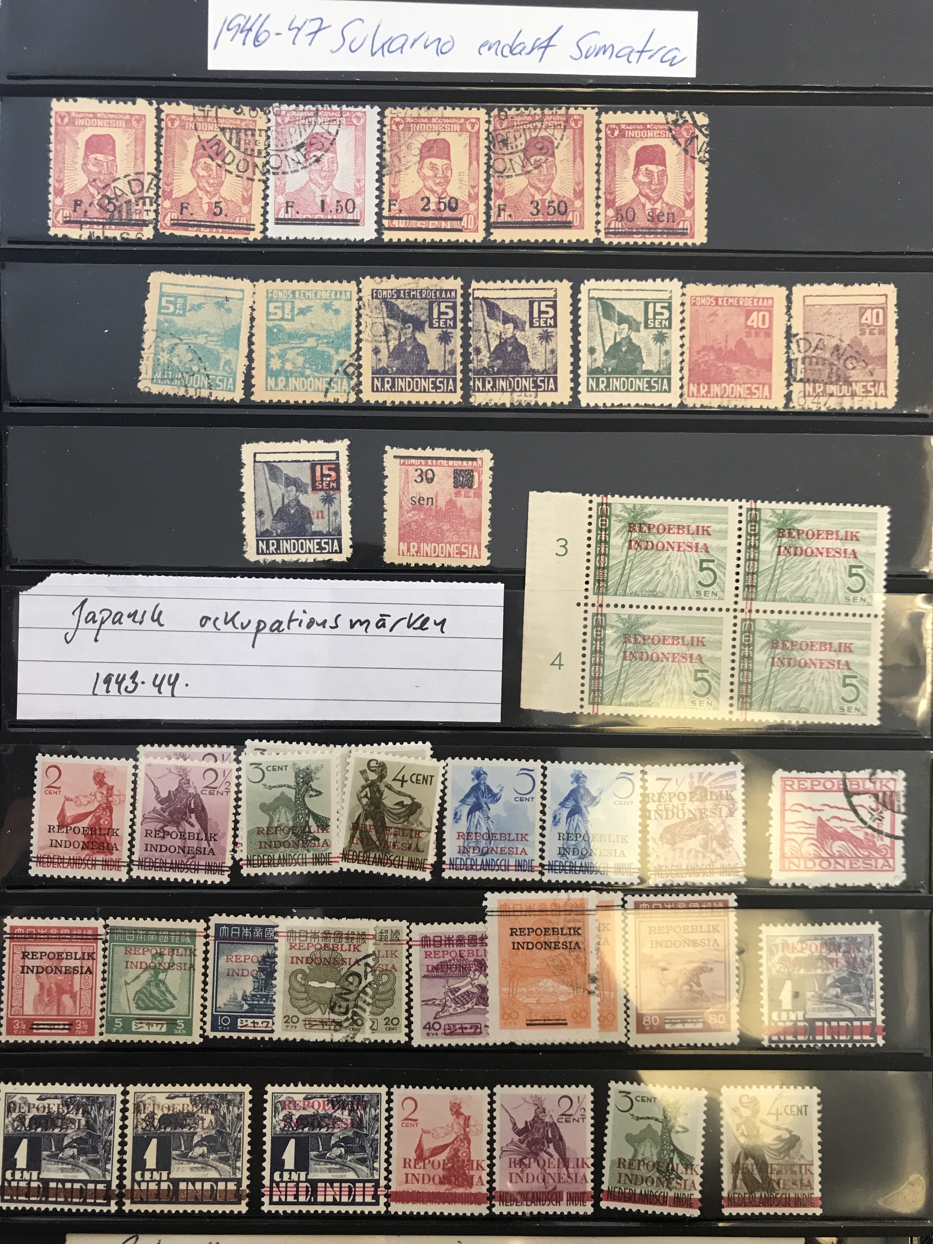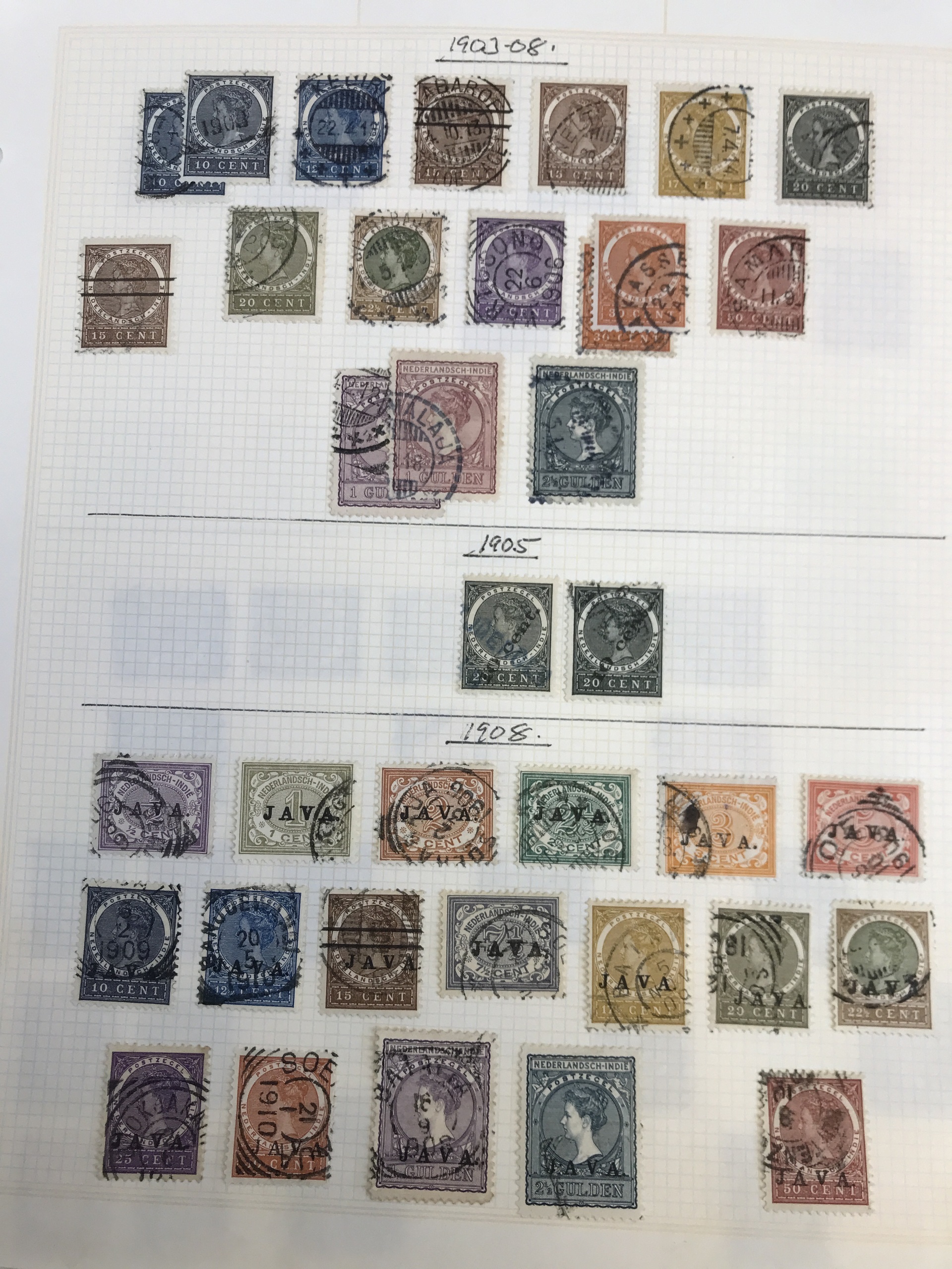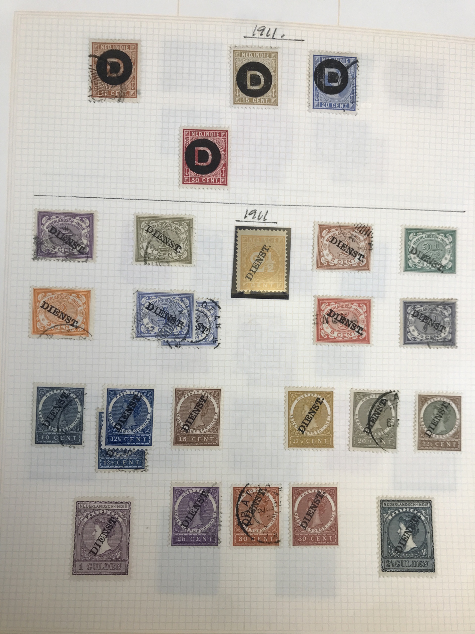 Dutch East Indies. Mostly used. Collection 1864–ca. 1970 on leaves. Containing e.g. Mi1–55, 61–78 and some better back-of-the-book, etc. Please see a selection of scans at www.philea.se. Mostly fine quality. (800)