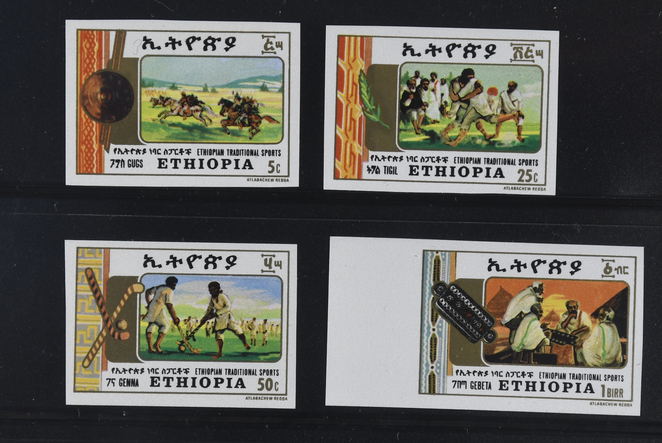Ethiopia. Michel 1192–95 ★★, Traditional Sports set. Imperforated, only 150 sets issued. Not valued in Michel.