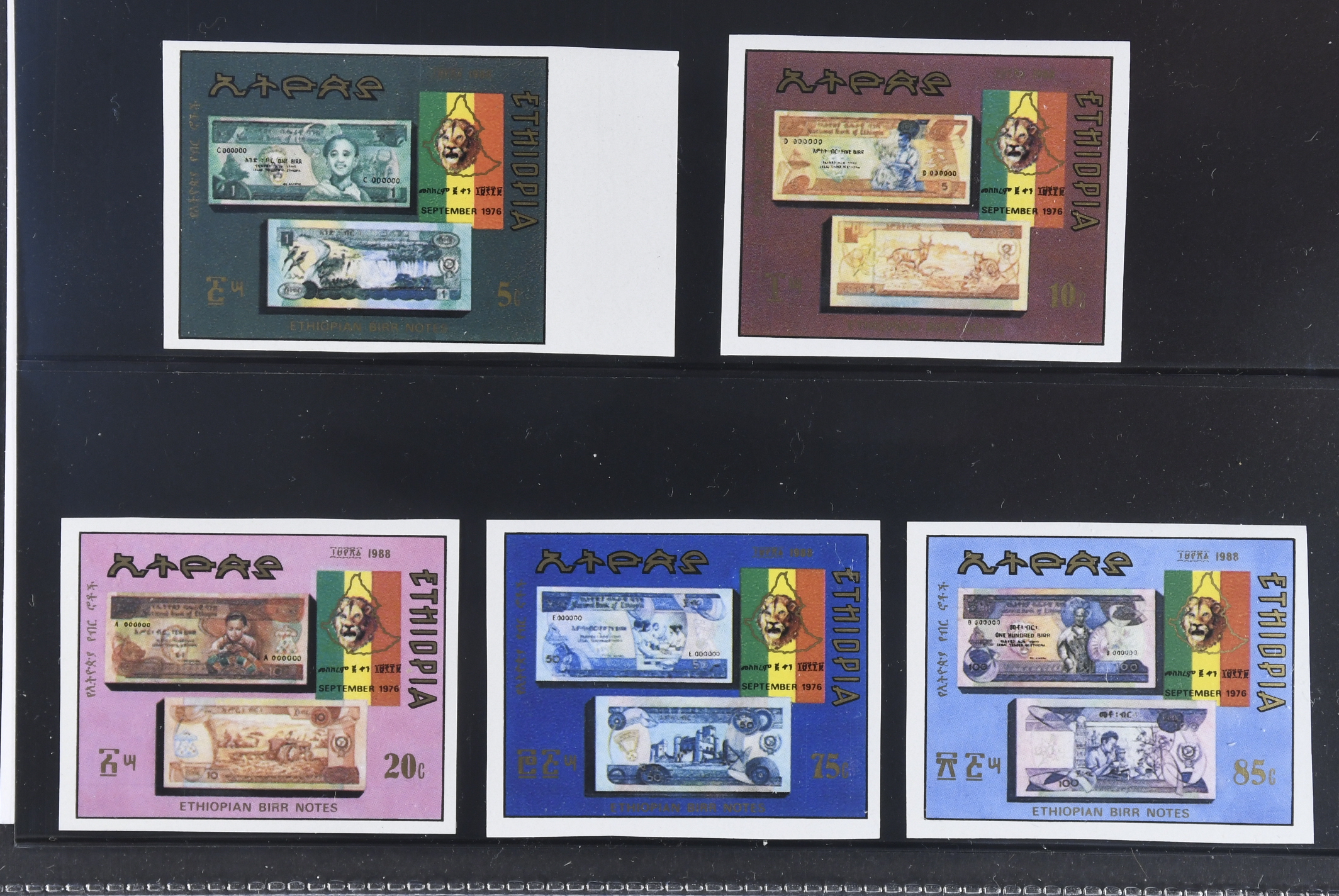 Ethiopia. Michel 1311–15 ★★, Bank Notes set. Imperforated, only 150 sets issued. Not valued in Michel.