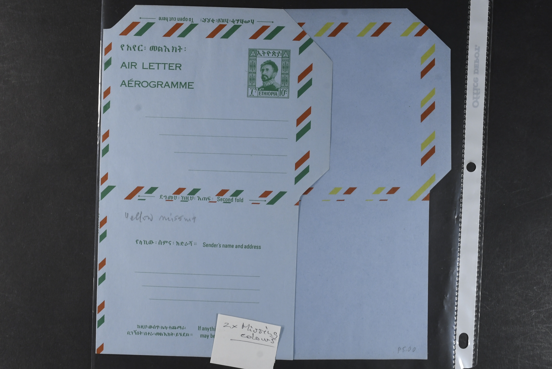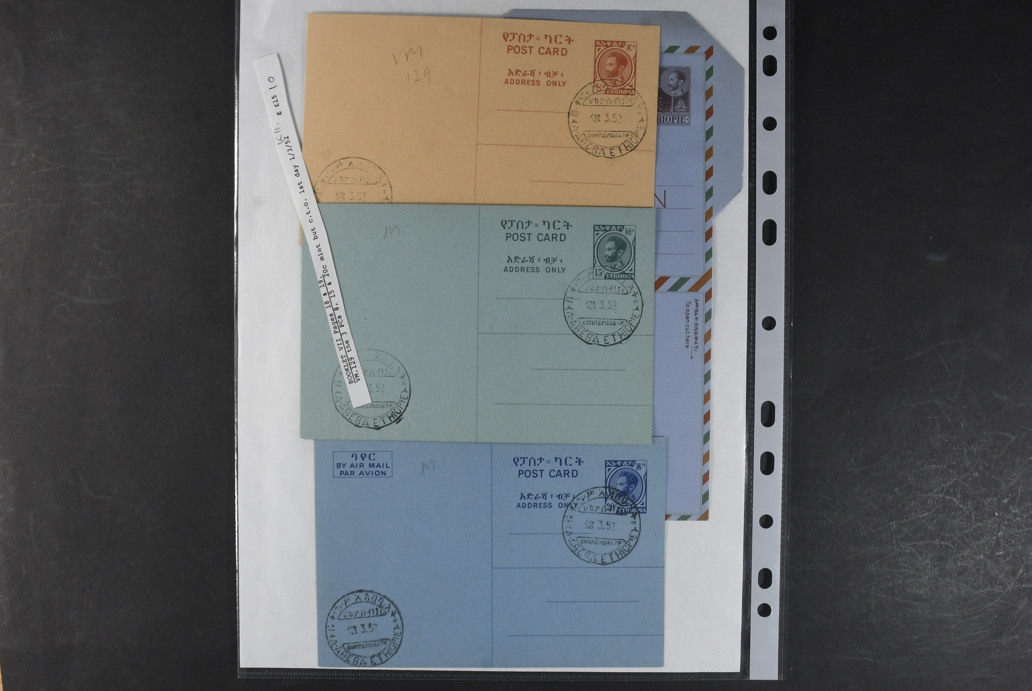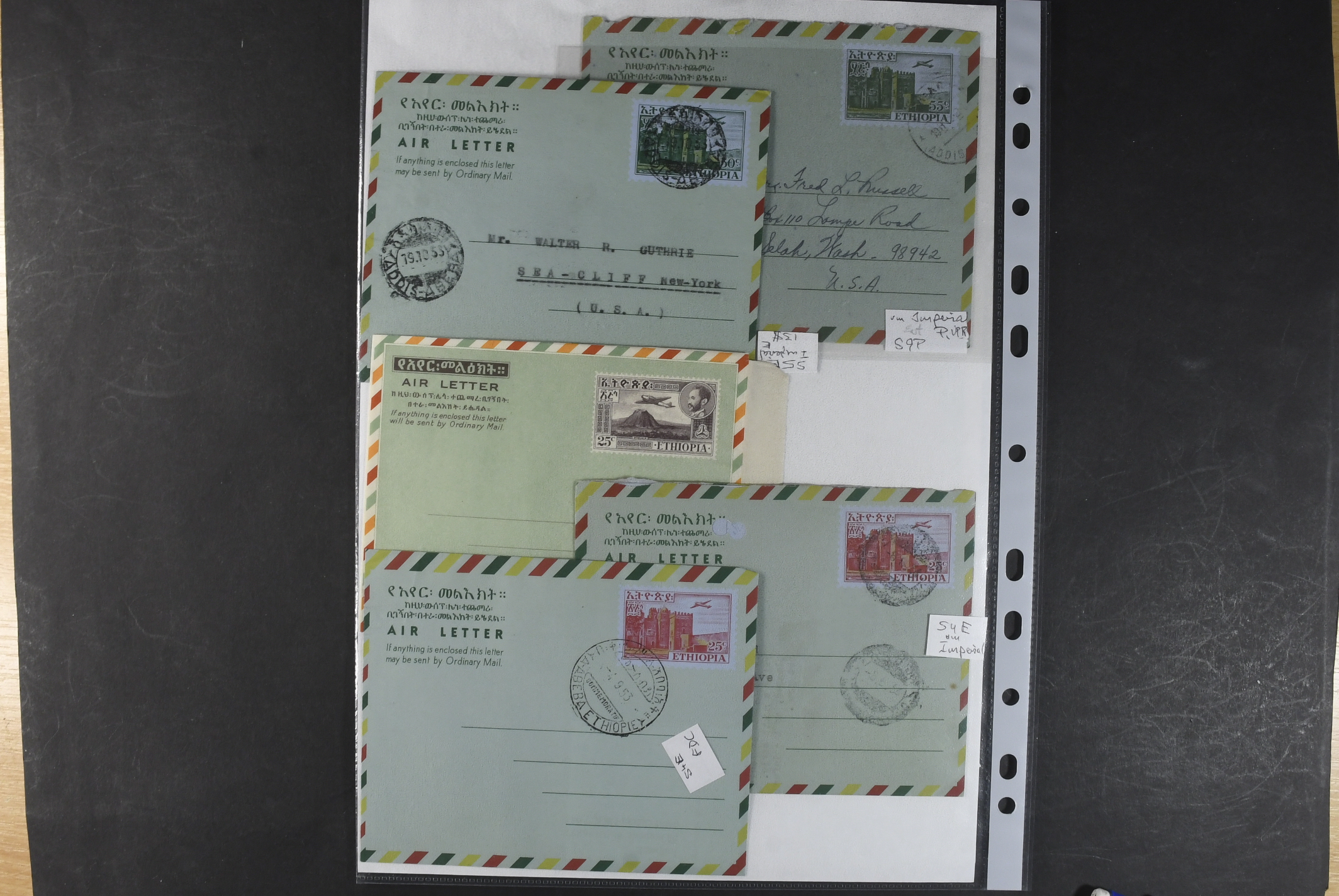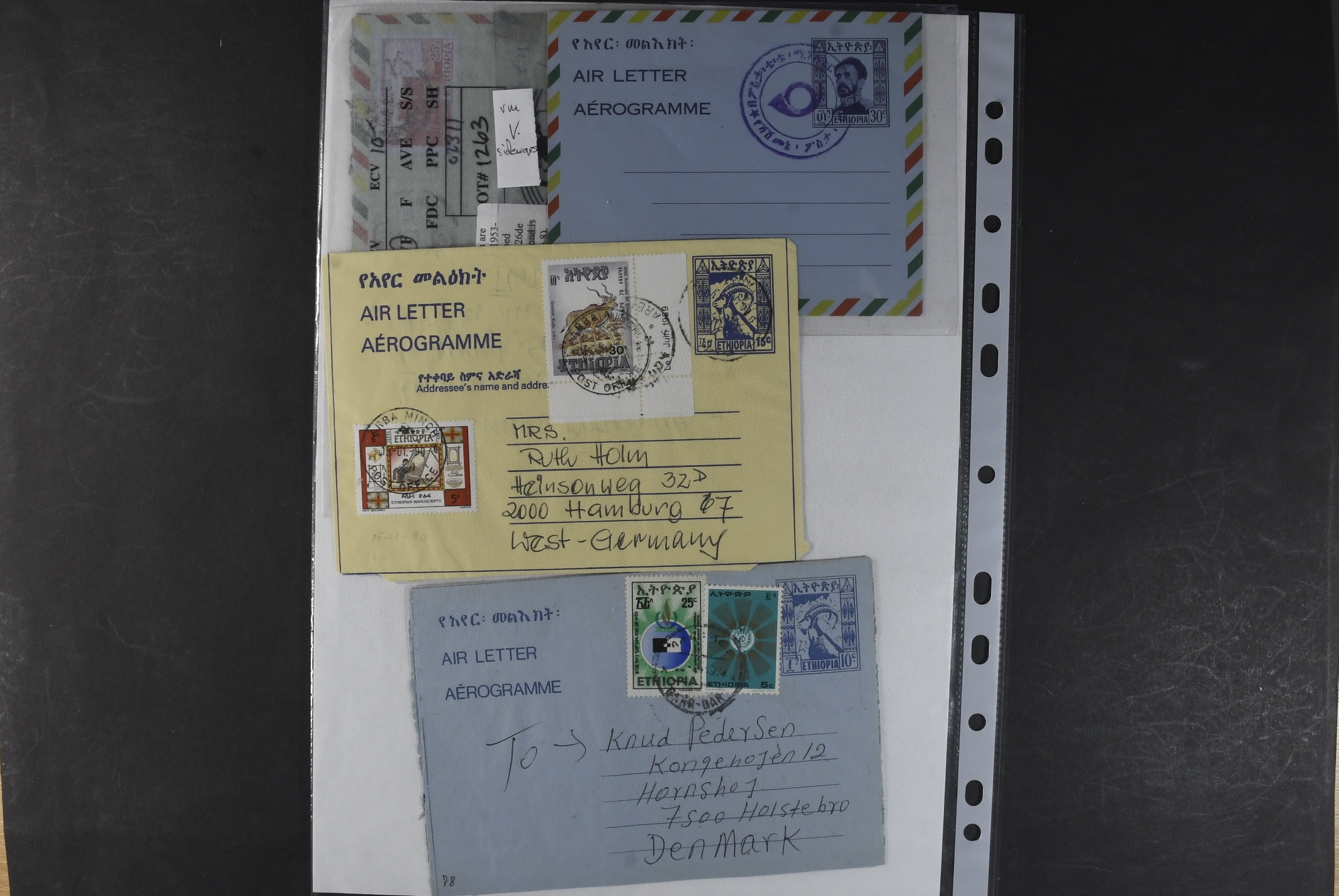 Ethiopia. Postal stationery, collection 1950s–1970s. Air Letters, incl. two Specimen, two with missing colours, one unofficial and a couple of postal cards. The entire lot is presented at www.philea.se. Mostly fine quality. (25)