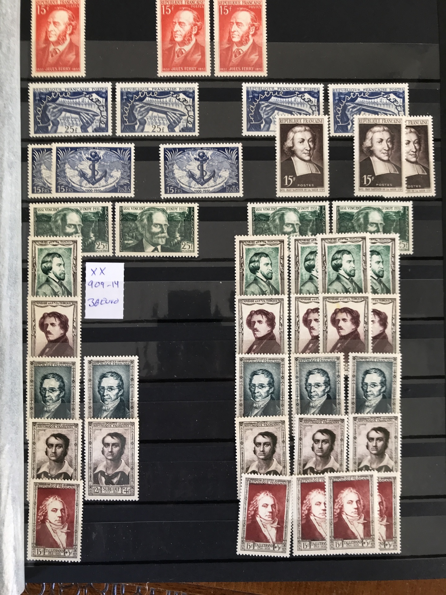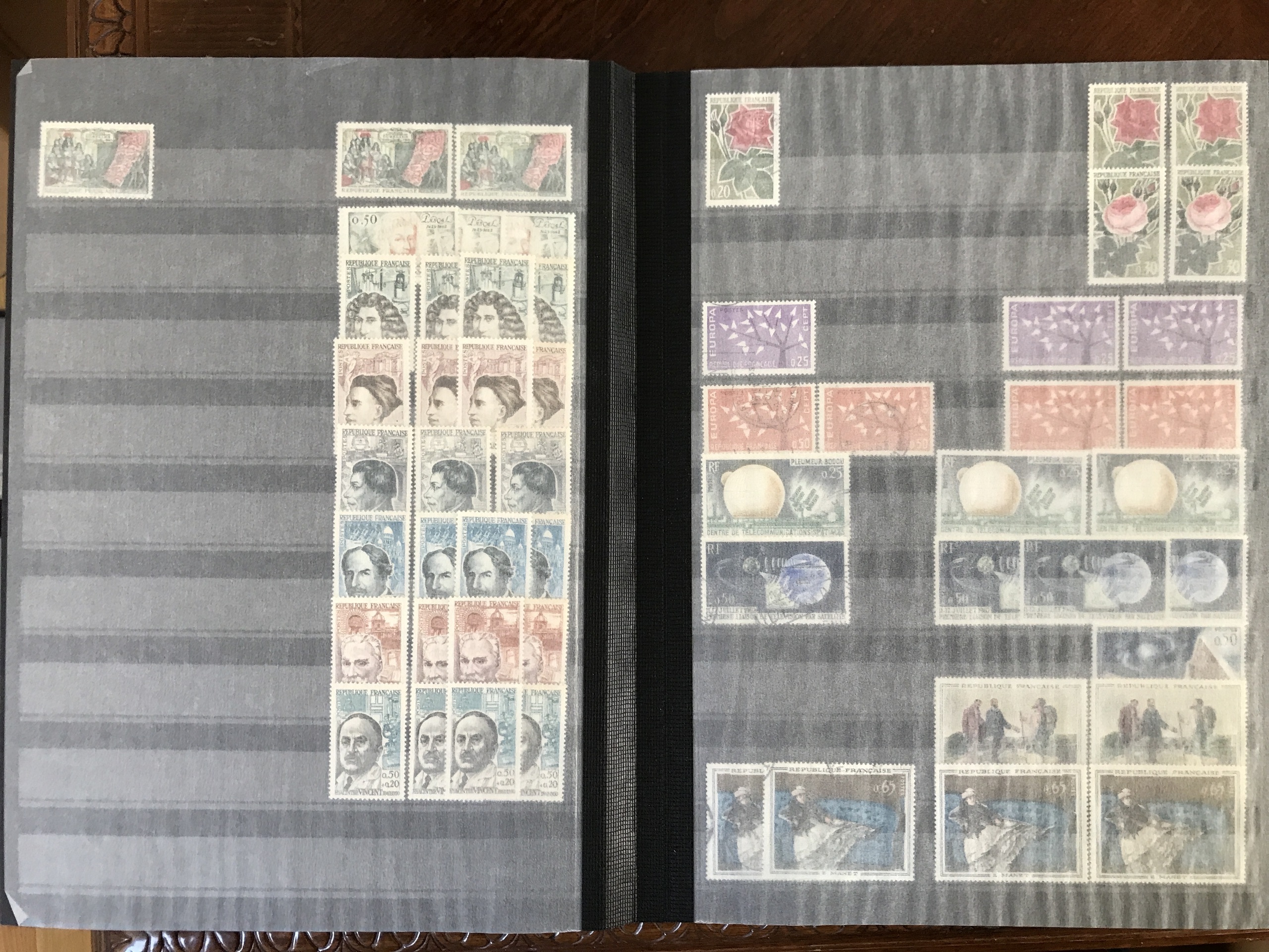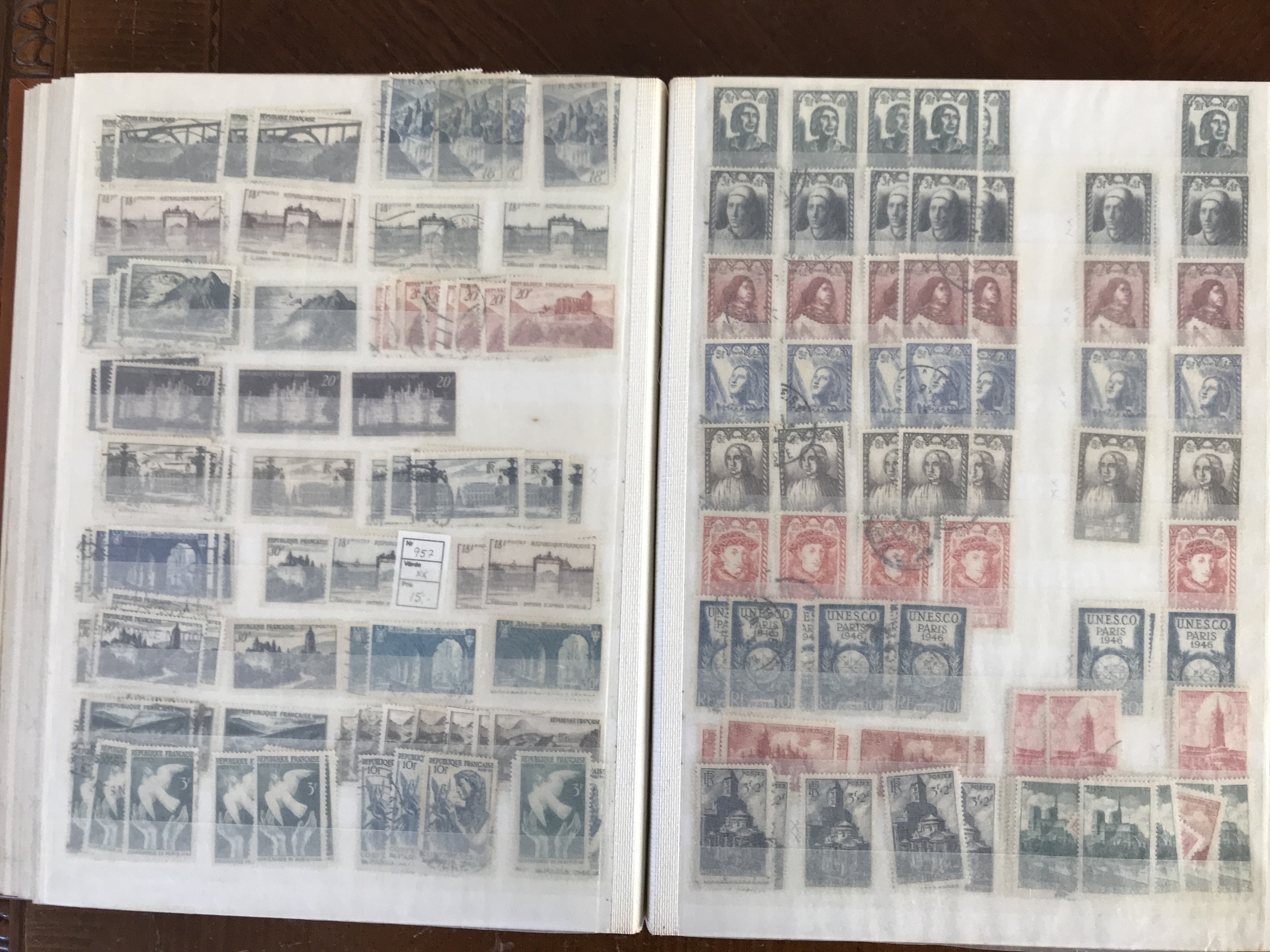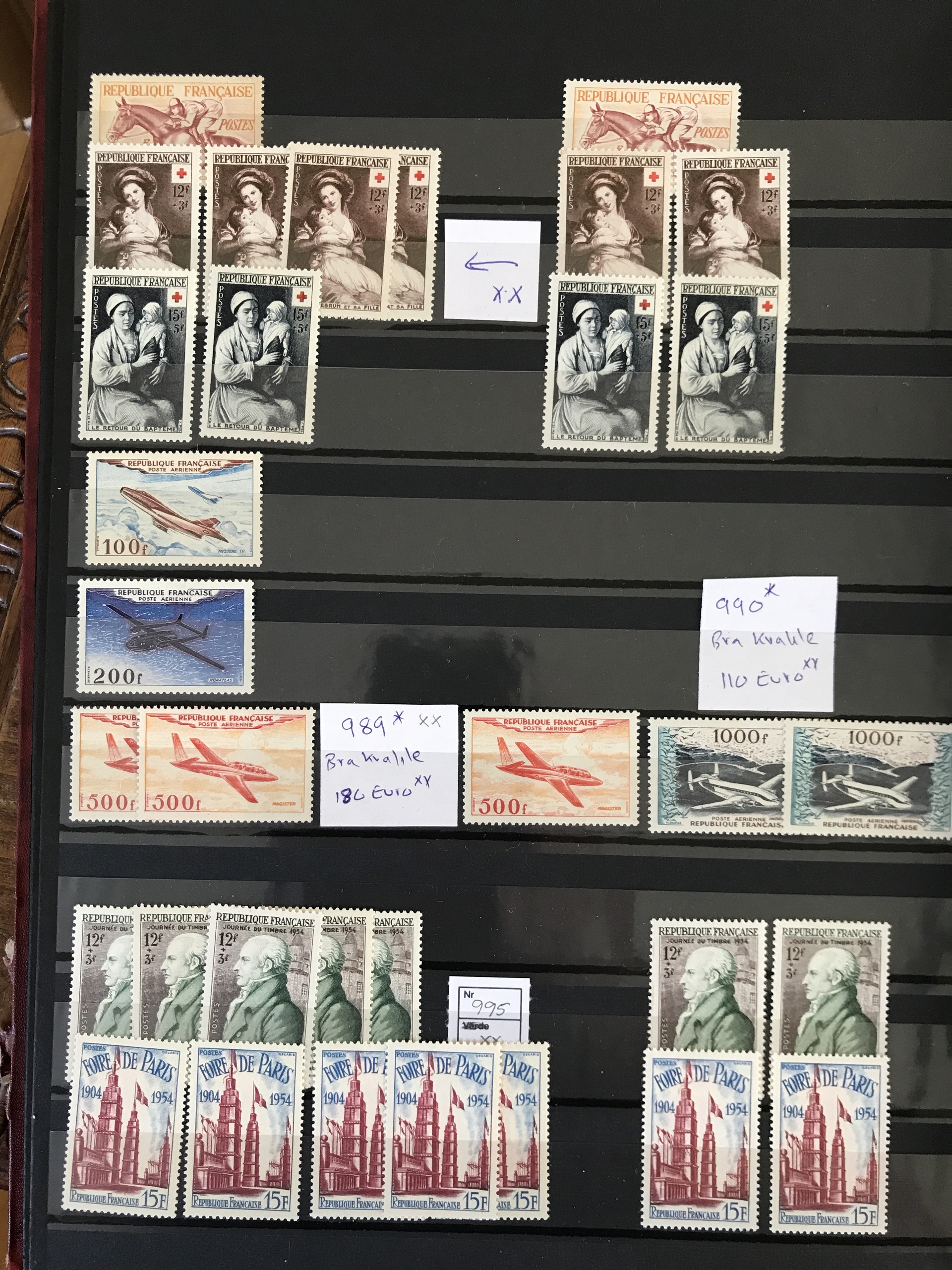 France. Accumulation ★★/★/⊙ 1945–1970s in box. Six thick stockbooks with dealer's stock incl. some better stamps and sets e.g. Mi 987–990 */**. Please see a selection of scans at www.philea.se. Good quality. Approx. 8 kg. (1000s)