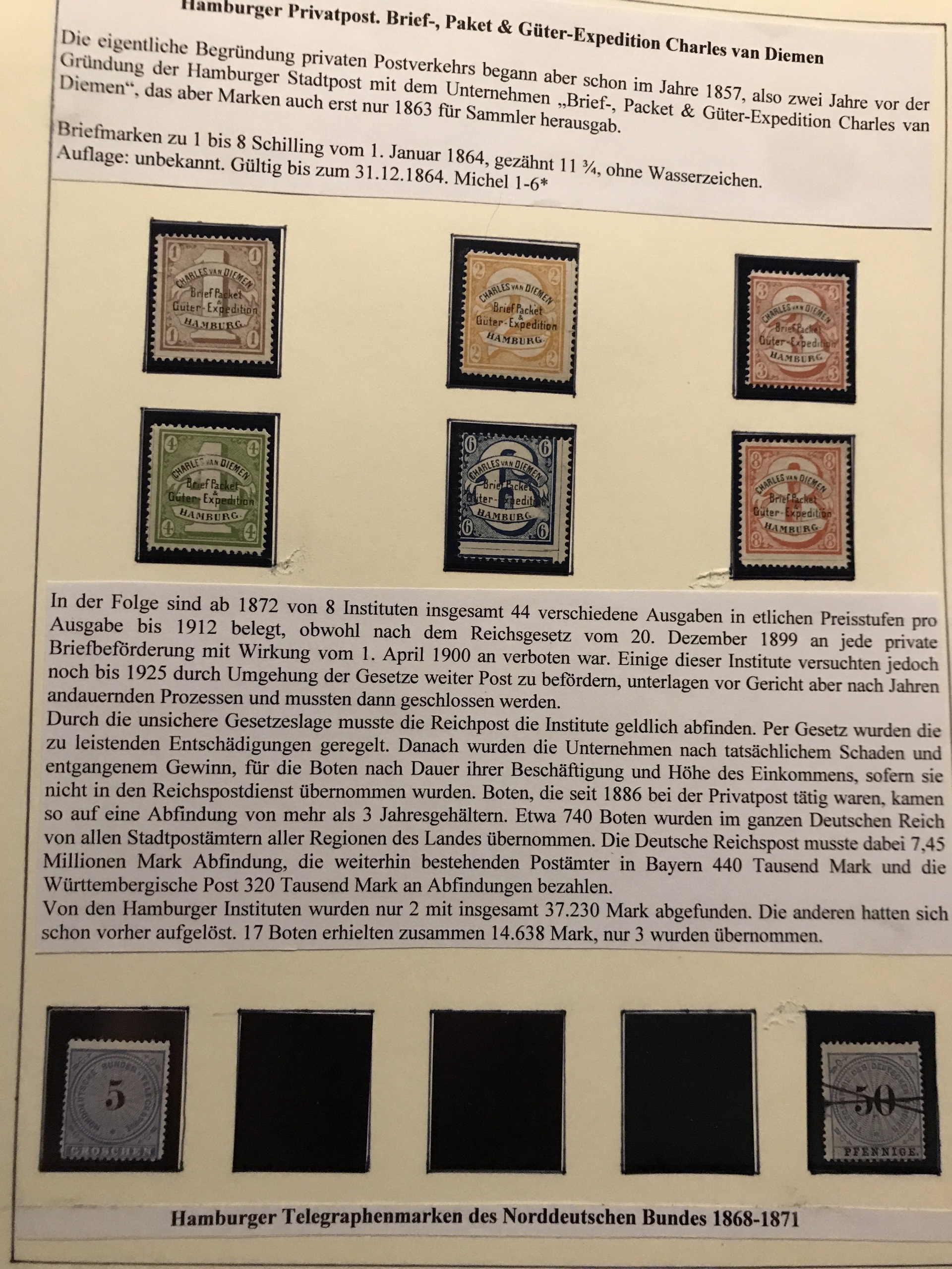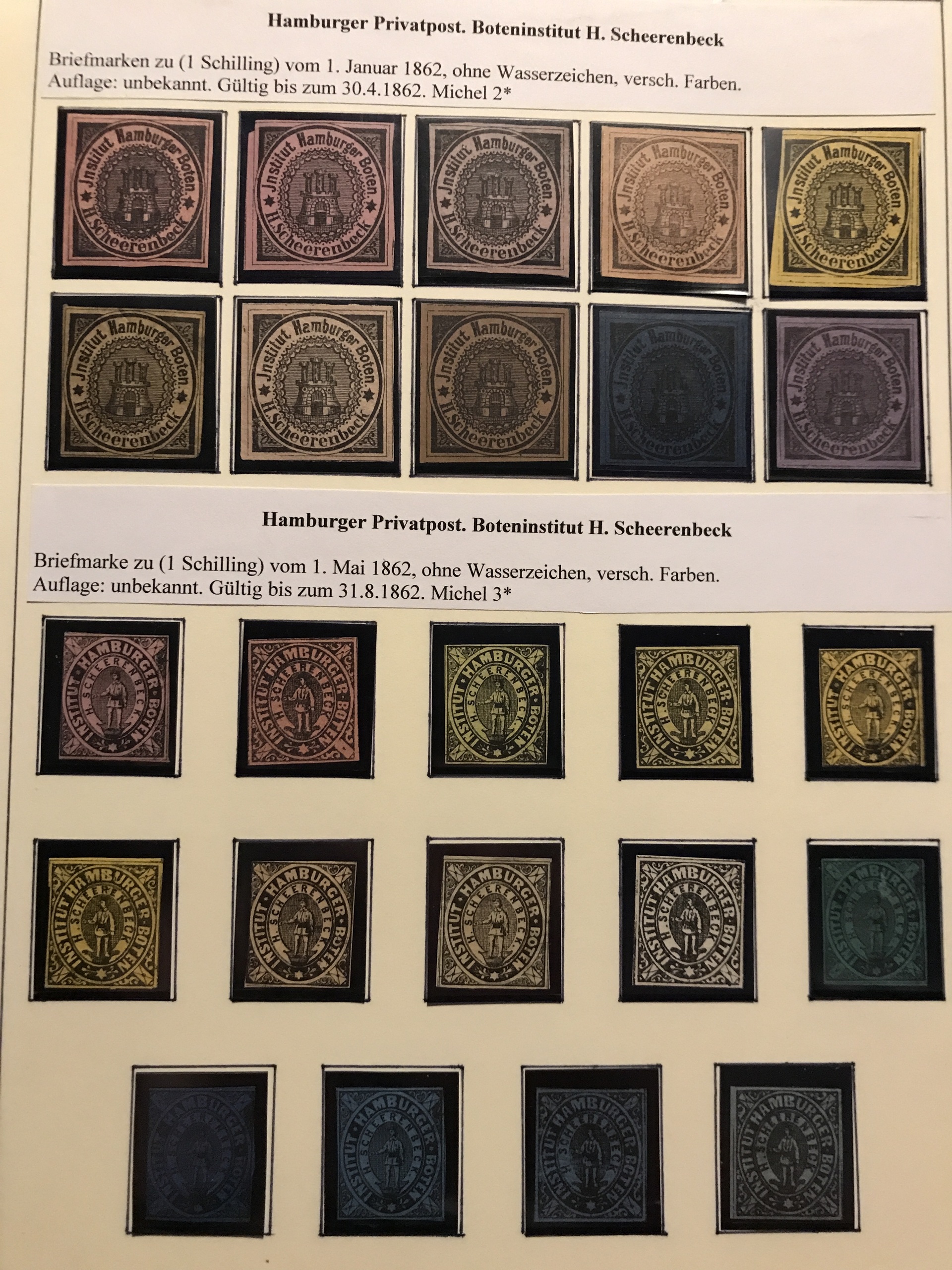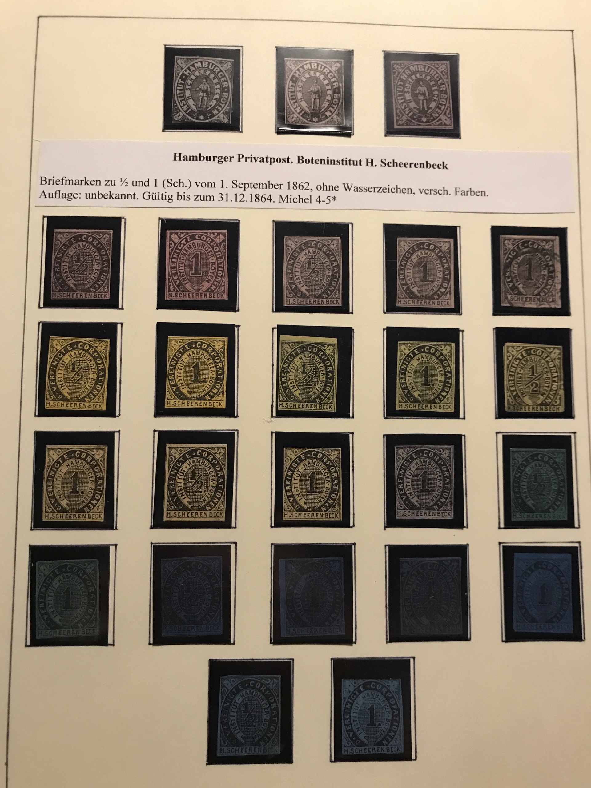 Germany, Hamburg. ★★/★. Epic collection Private Post stamps **/*/(*) 1861-64 on leaves incl. some Parcel stamps etc. Please see a selection of scans at www.philea.se. (143)