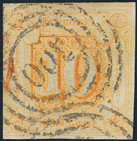 Germany, Thurn und Taxis. Michel 19 used, 1859 Numeral type 2nd issue 10 Gr orange. Nice copy signed Buhler. EUR 600