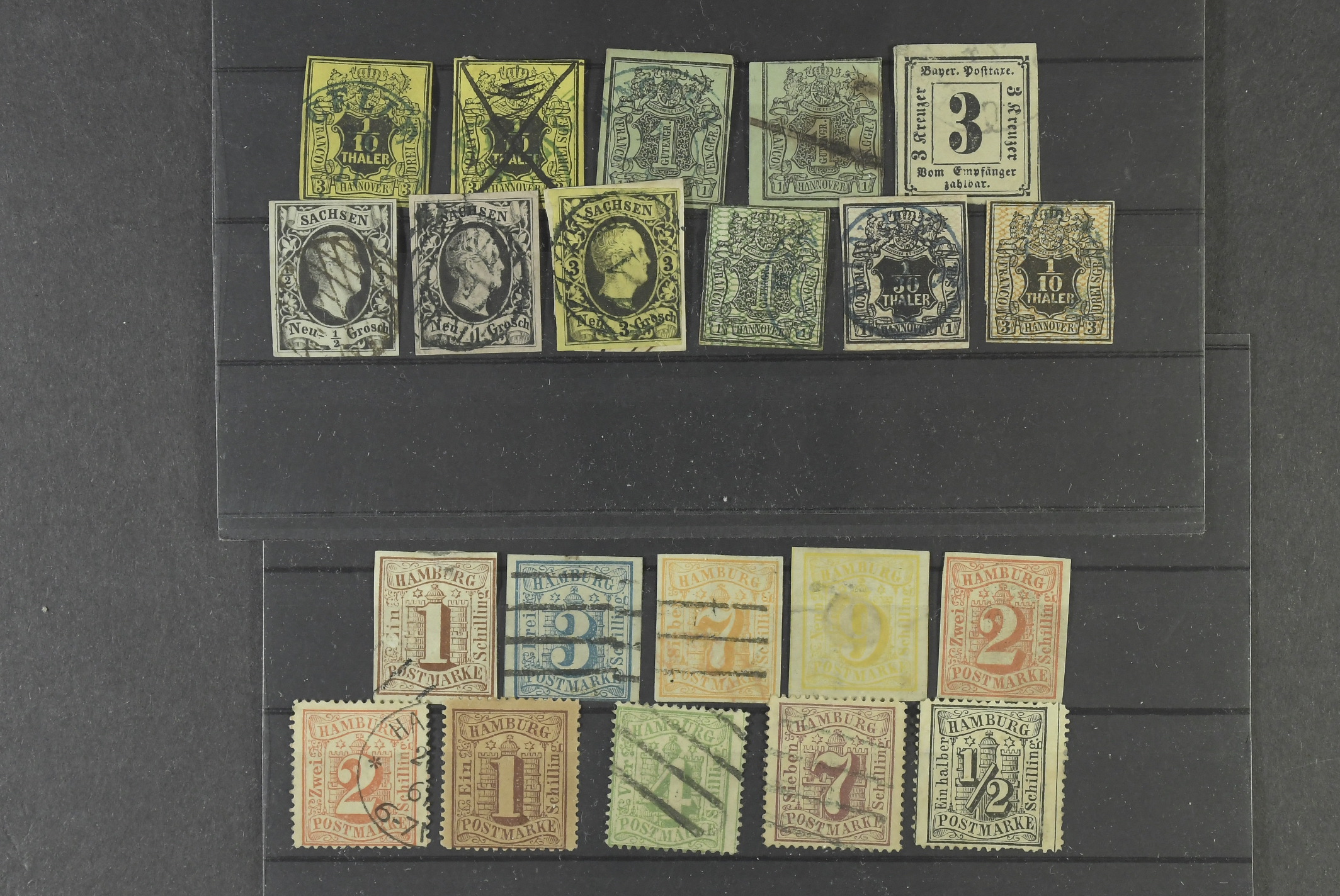 Germany, states. ★/⊙. Box with many stockcards with stamps from several different states. All valued and marked with Michel numbers. High value. Somewhat mixed quality.