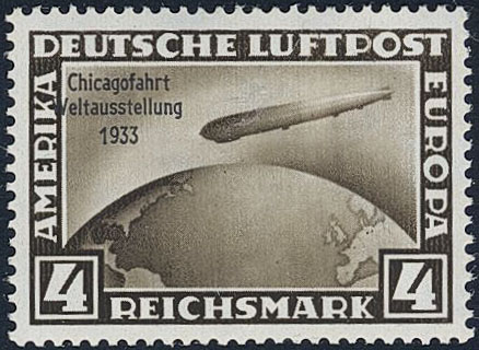 Germany, Reich. Michel 498 ★★, 1933 Graf Zeppelin - World Exhibition in Chicago 4 RM black-brown. EUR 350