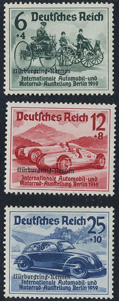 Germany, Reich. Michel 695–97 ★★, 1939 NÜRBURGRING-RENNEN overprint SET (3). EUR 300