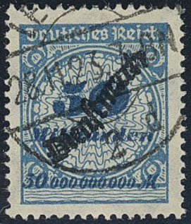 Germany, Reich. Official Michel 88 used, 1923 Overprint 50 mrd M pale cobalt/black-cobalt. Signed Peschl. EUR 260