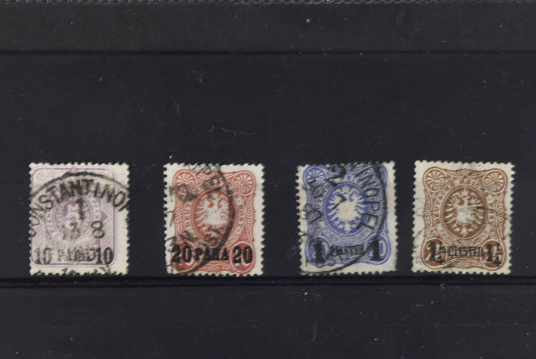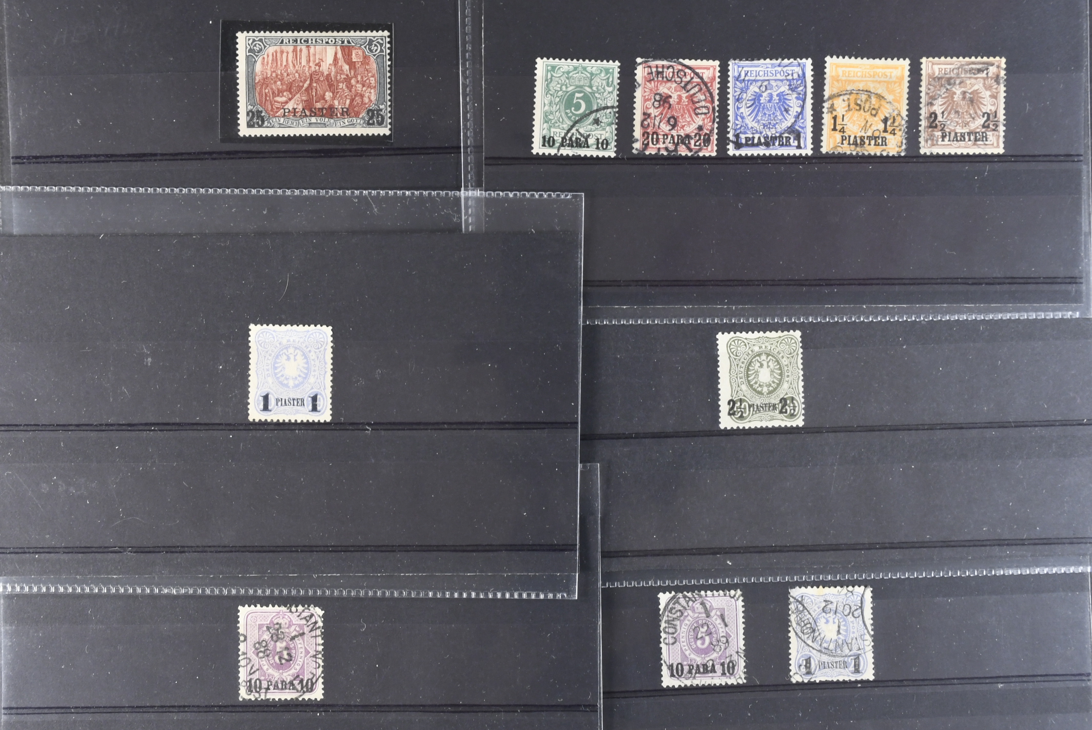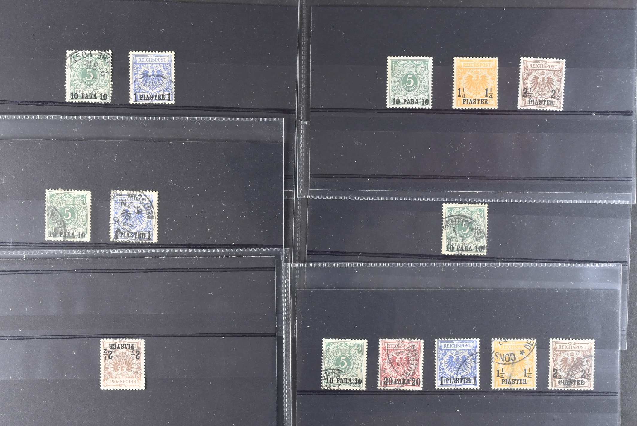 Germany, post in Turkey. ★★/★/⊙ on 20 cards. Very attractive range of Kaiser's Yachts & earlier Eagle and Shield Issues, including high values mint and used, occasionally MNH when you would least expect it. All the used are postal cancels. Great lot, completely uncatalogued, please inspect. The entire lot is presented at www.philea.se.