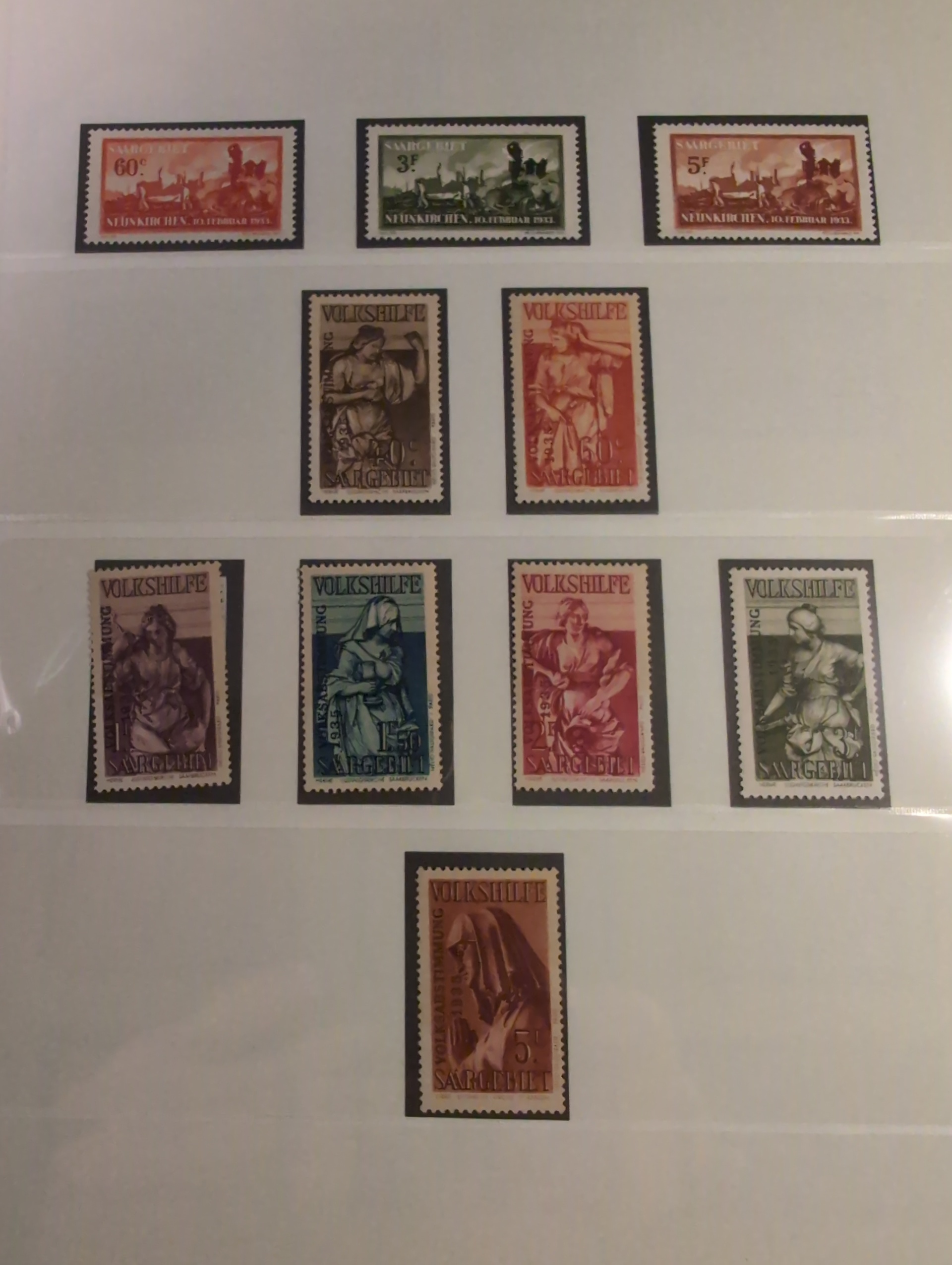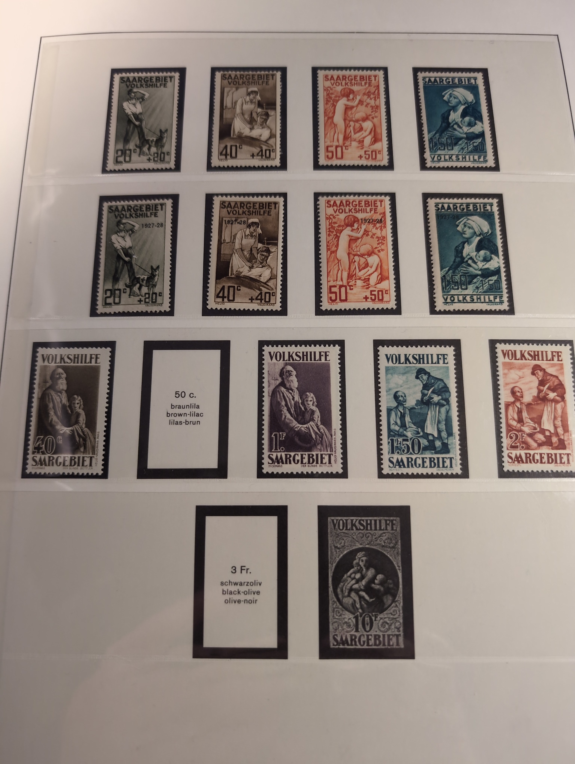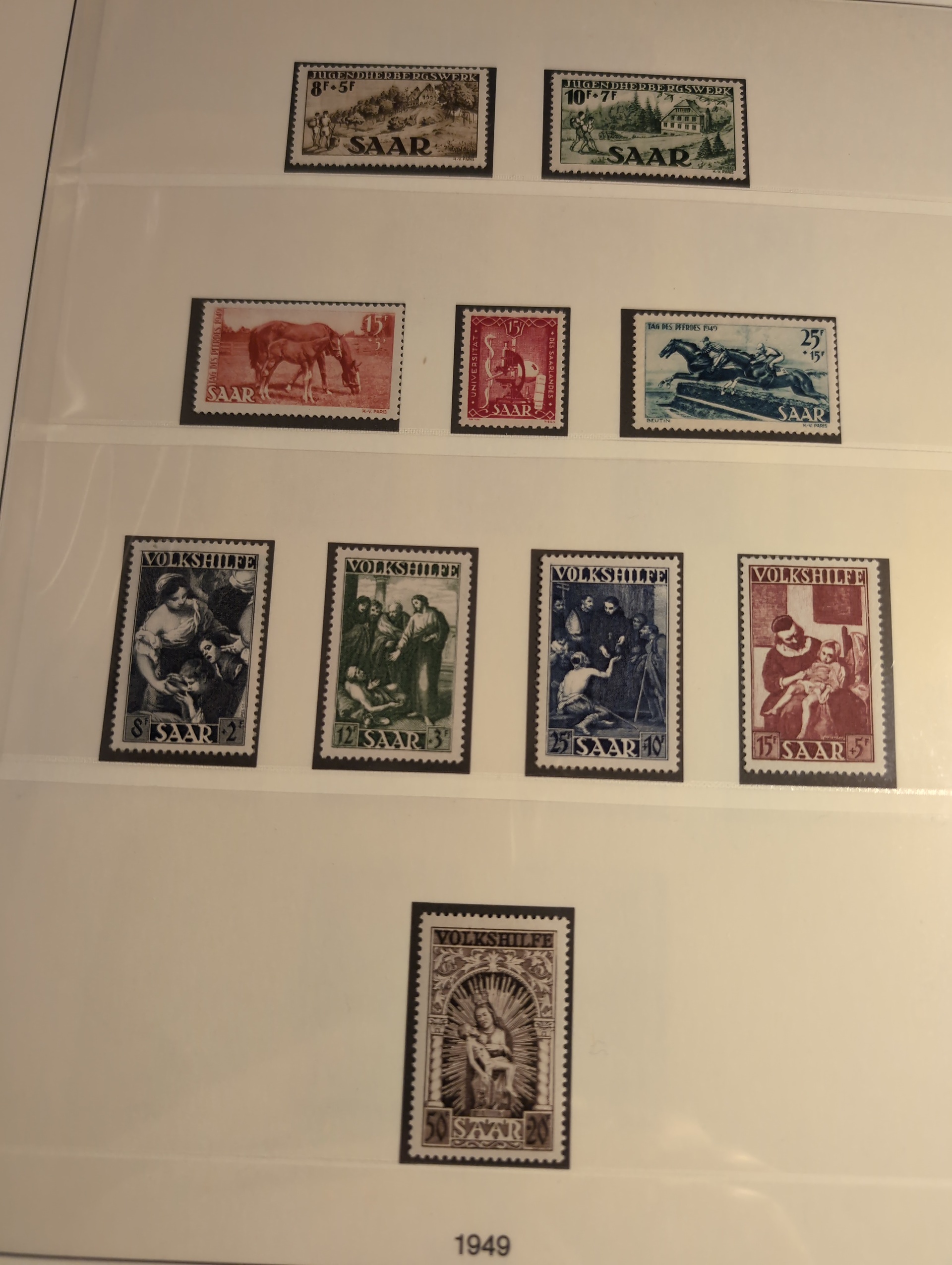 Germany, Saar. Collection ★★/★ 1920–1959 in Lindner album with stamp mounts. Well filled with many better stamps. Saargebiet mostly mint but also a few NH and sadly some with 'postfrisch' hinges. Saarland almost complete just missing Mi bl2. Majority is NH but a few hinged have been spotted. Bl. 1 is signed C. Ney (high) and have disturbed gum. Please see a selection of scans at www.philea.se. Somewhat mixed quality. (ca. 400)