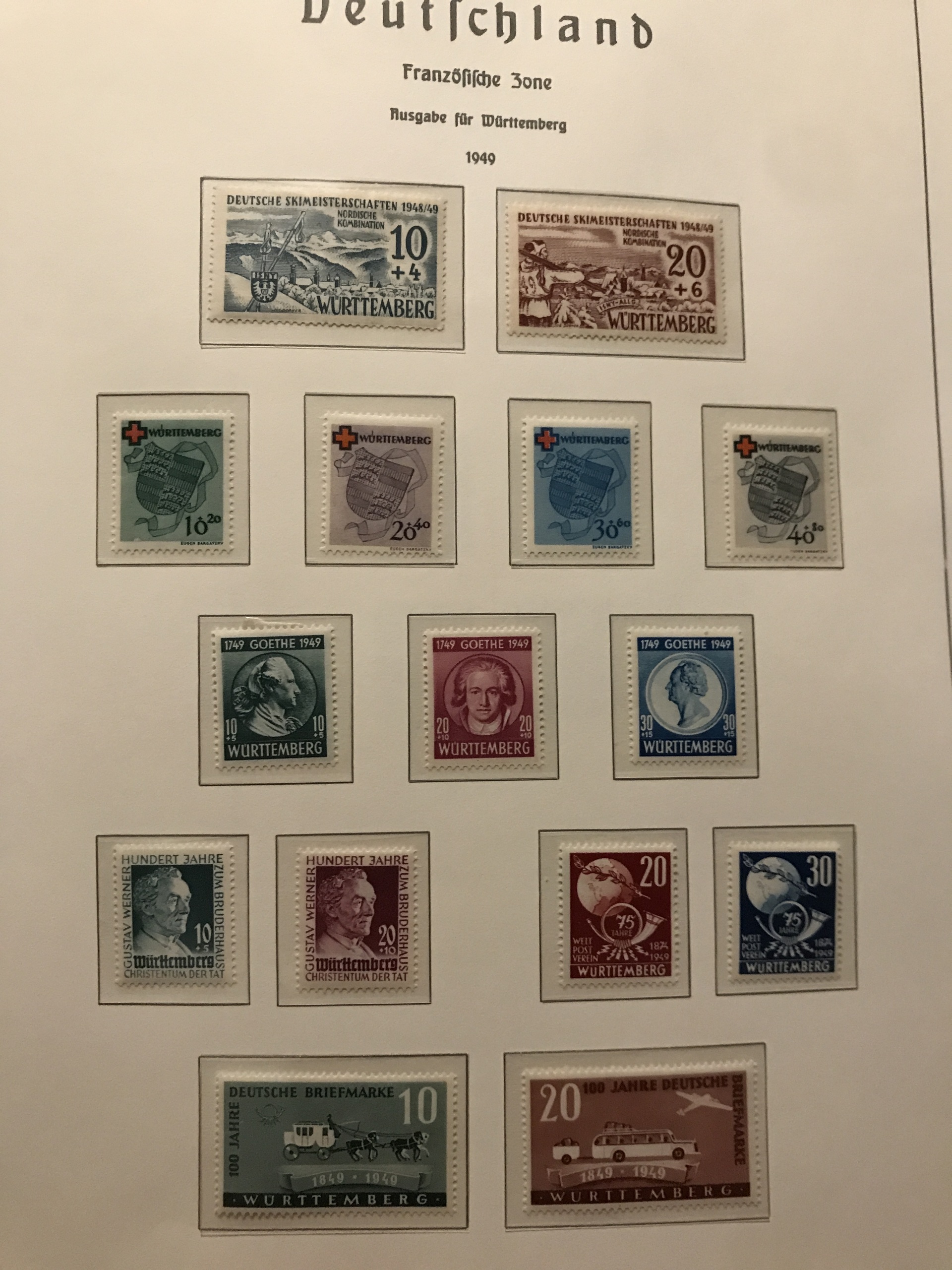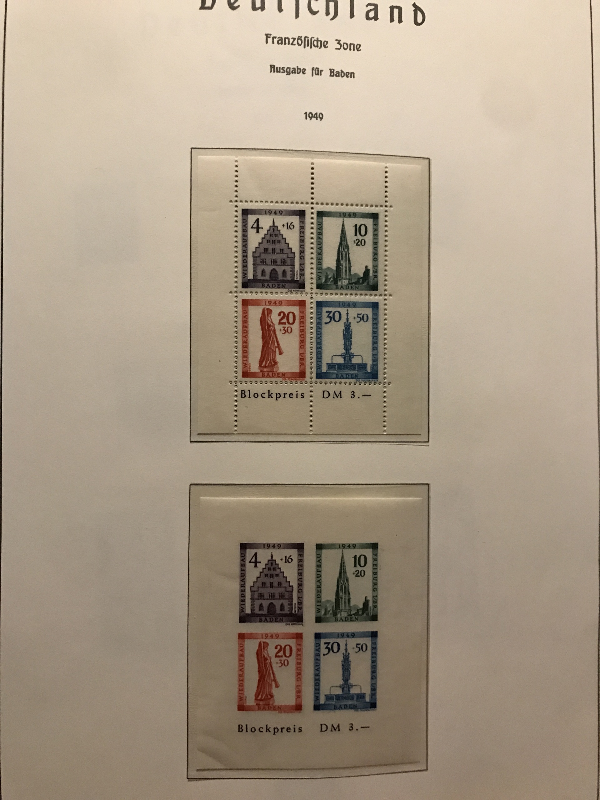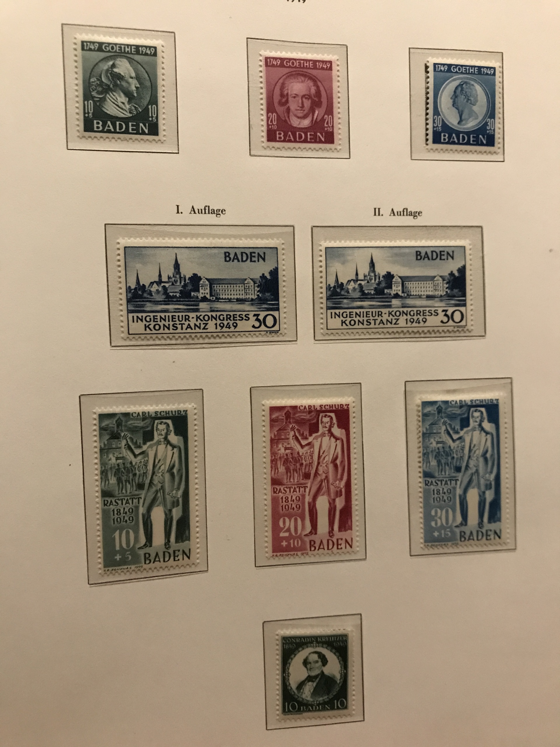 Germany, French zone. Mostly ★. Apparently complete collection all three areas 1945–1949 incl. Baden Mi46I ** and all mini sheets. (135)