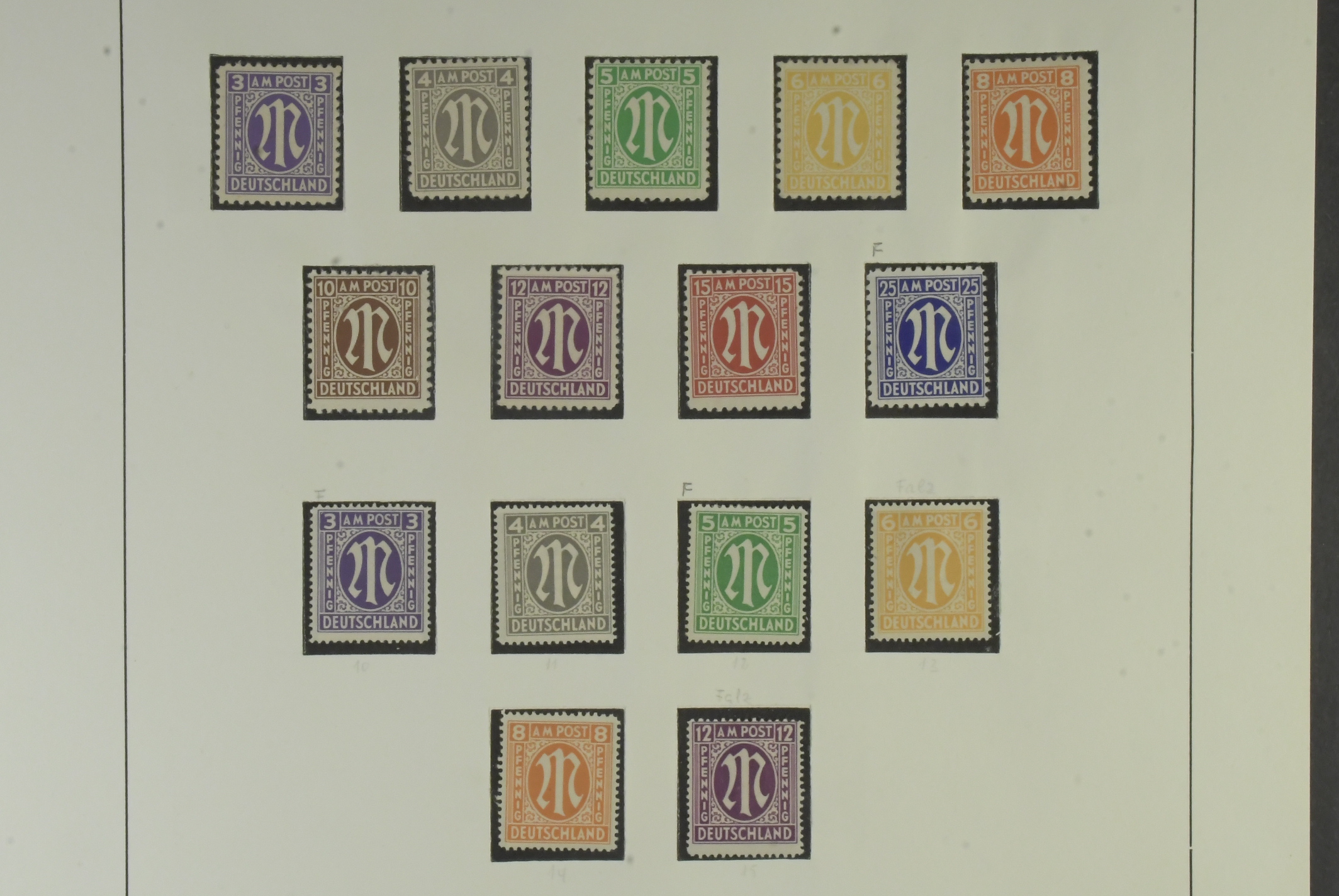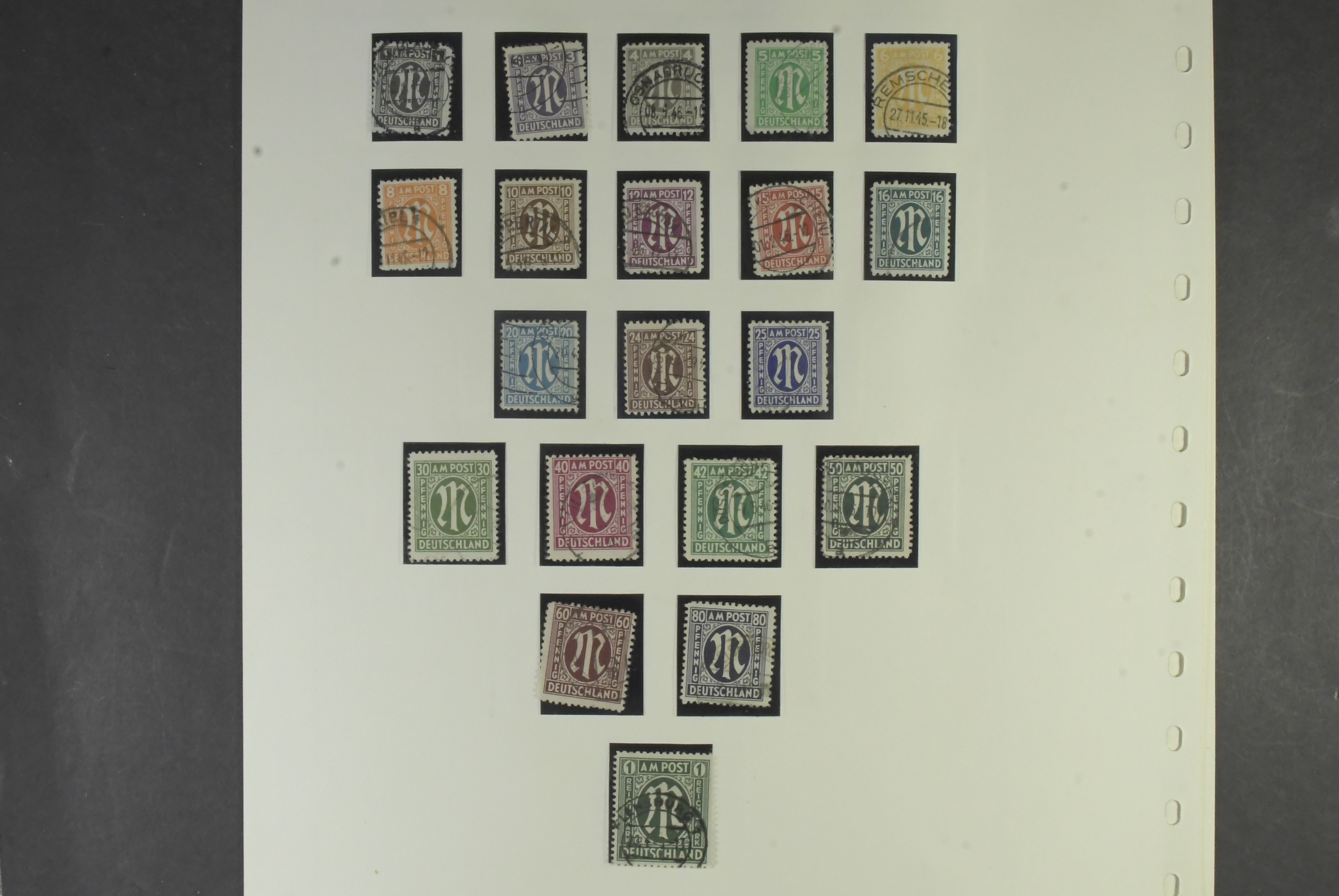 Germany, zones. Collection ★★/★/⊙ 1945–1950 on leaves. Common + American/British, incl. a few souvenir sheets, etc. Mostly good quality. (350)