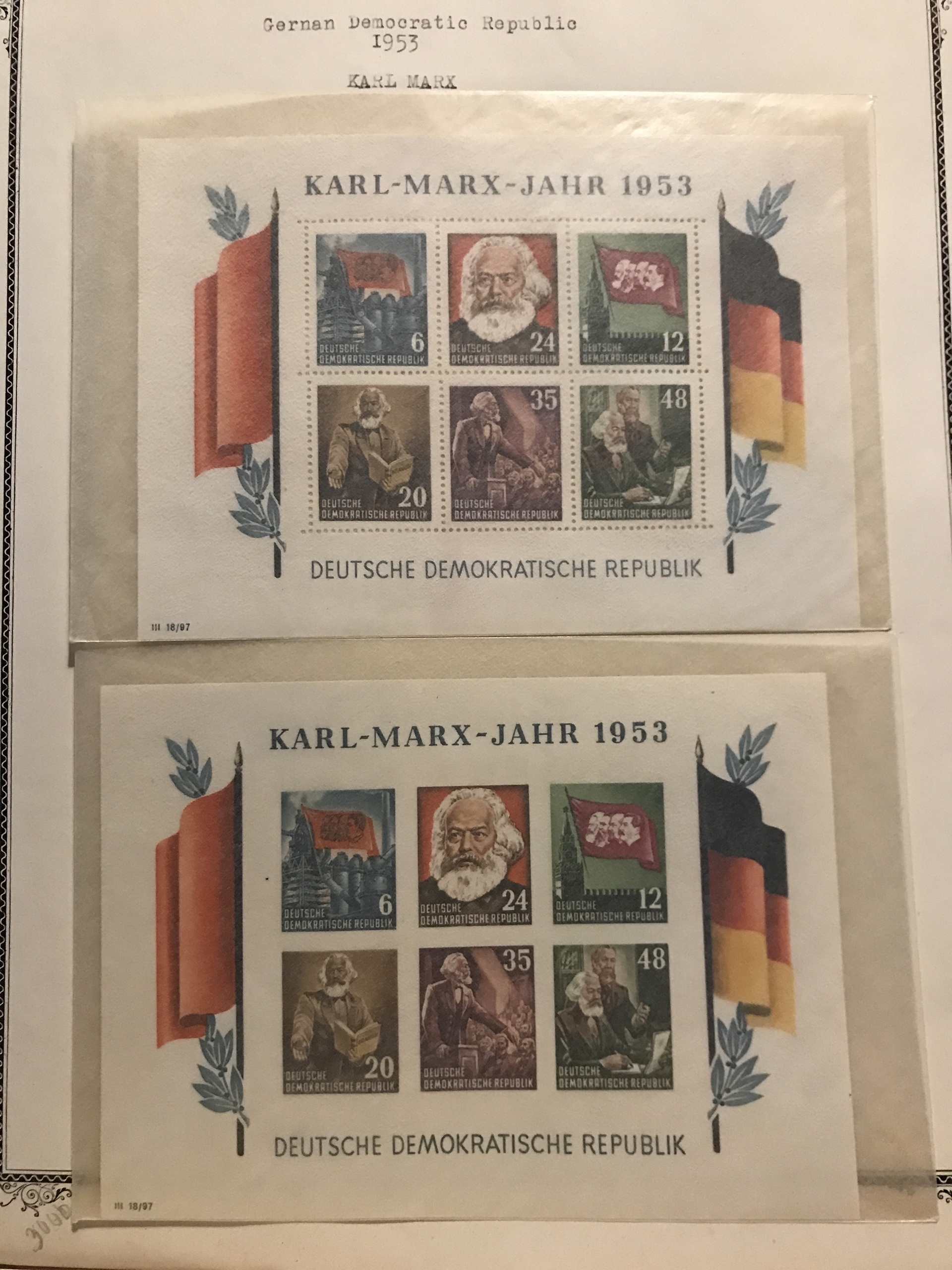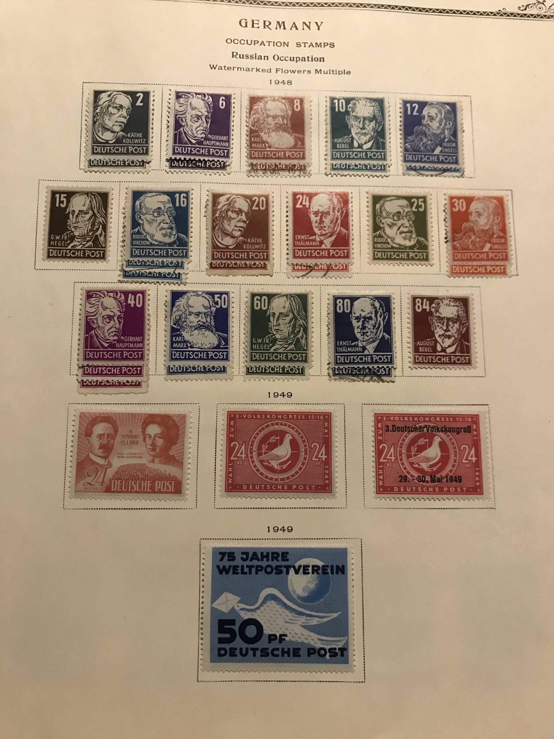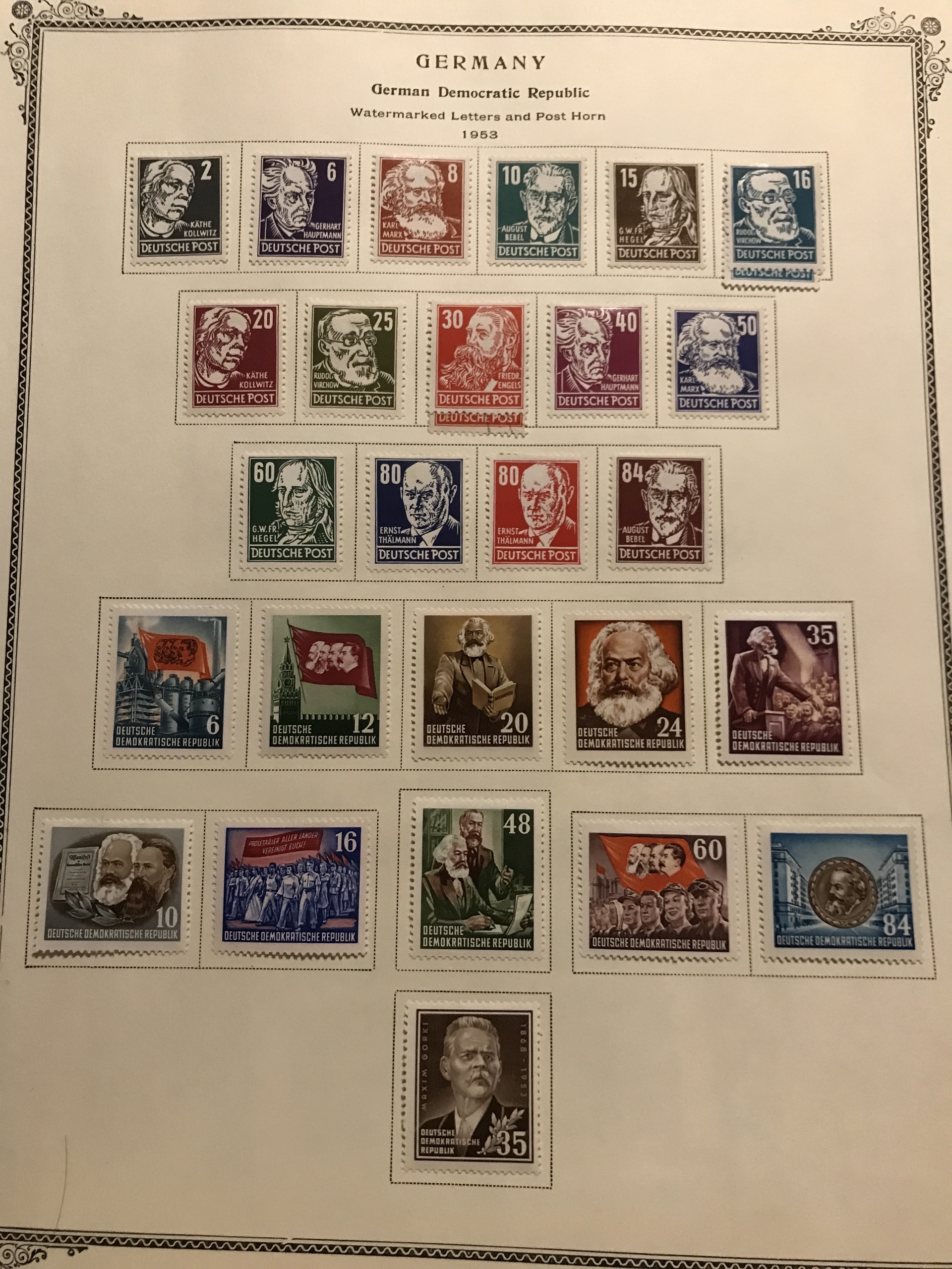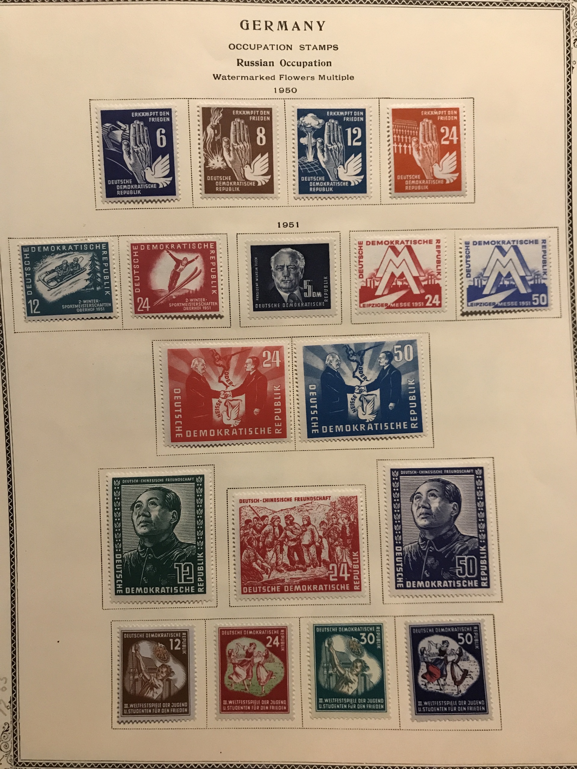 Germany, GDR (DDR). Mostly ★. Collection 1949–1961 on leaves. Apparently complete in main numbers incl. souvenir sheets + also a section Soviet Zone and official stamps. Sometimes * and used parallell. (800)