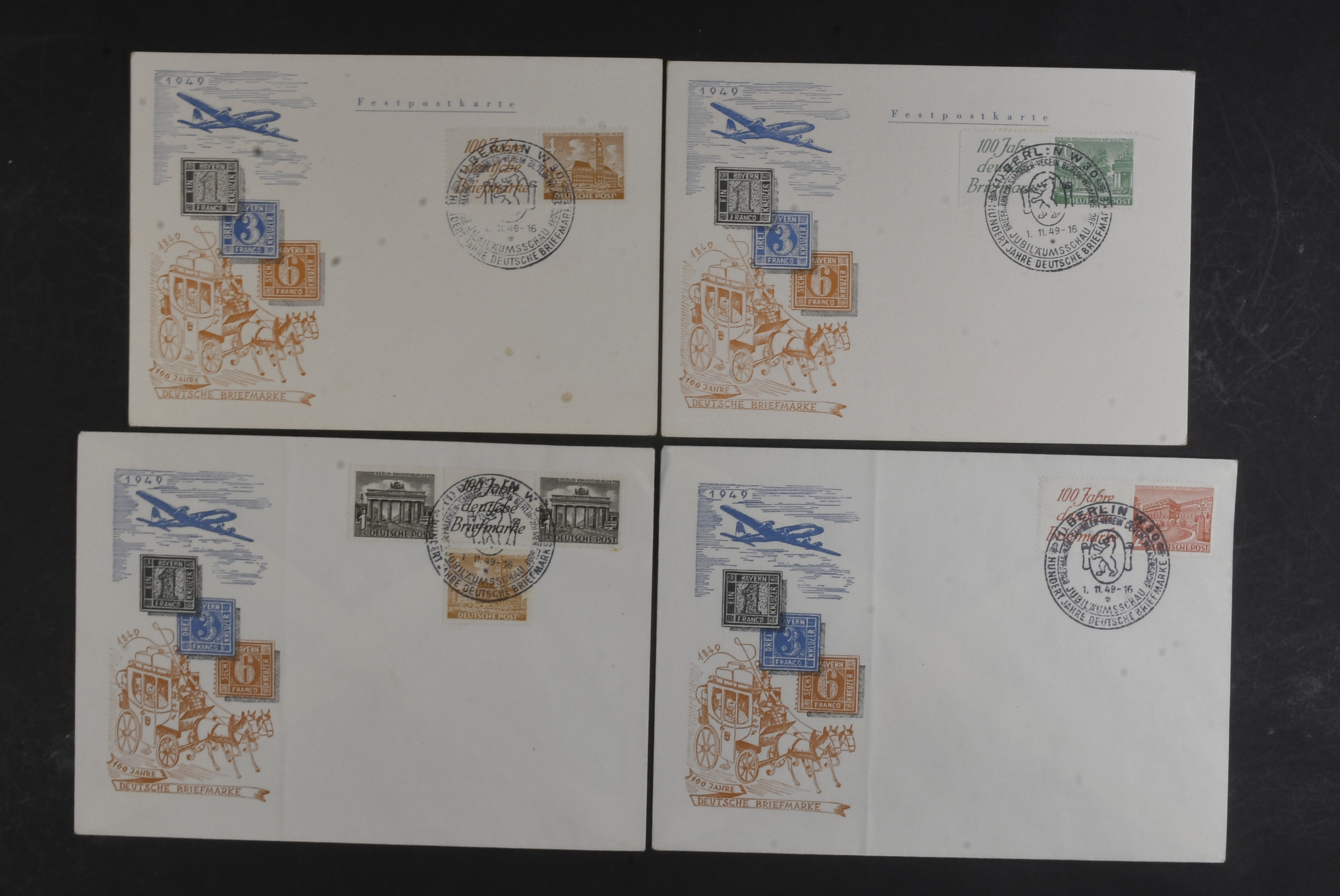Germany, Berlin. Covers. Four unaddressed covers with different combinations from the first booklet 1949, all cancelled with special cancel.