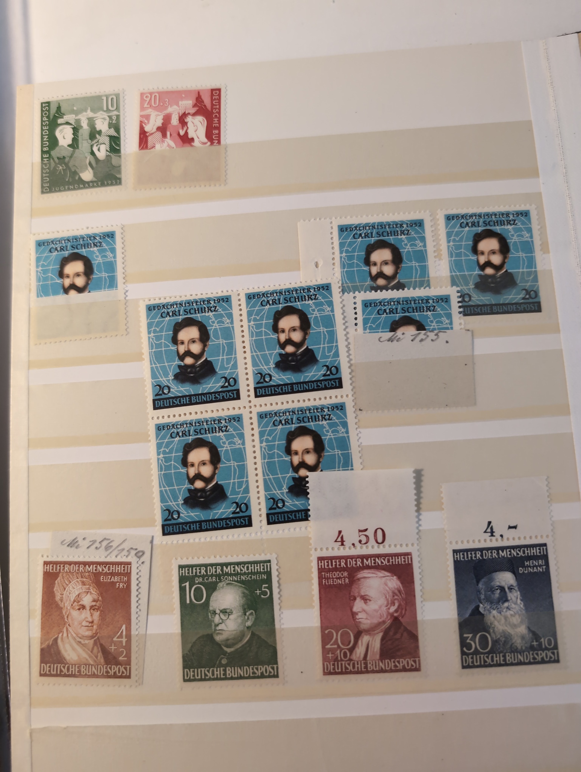 Germany, GFR (BRD). Accumulation ★★ 1945–1955 in small stockbook. with mostly early sets in exellent condition with up to 3 of each set. Please see a selection of scans at www.philea.se. Excellent quality. (150+)