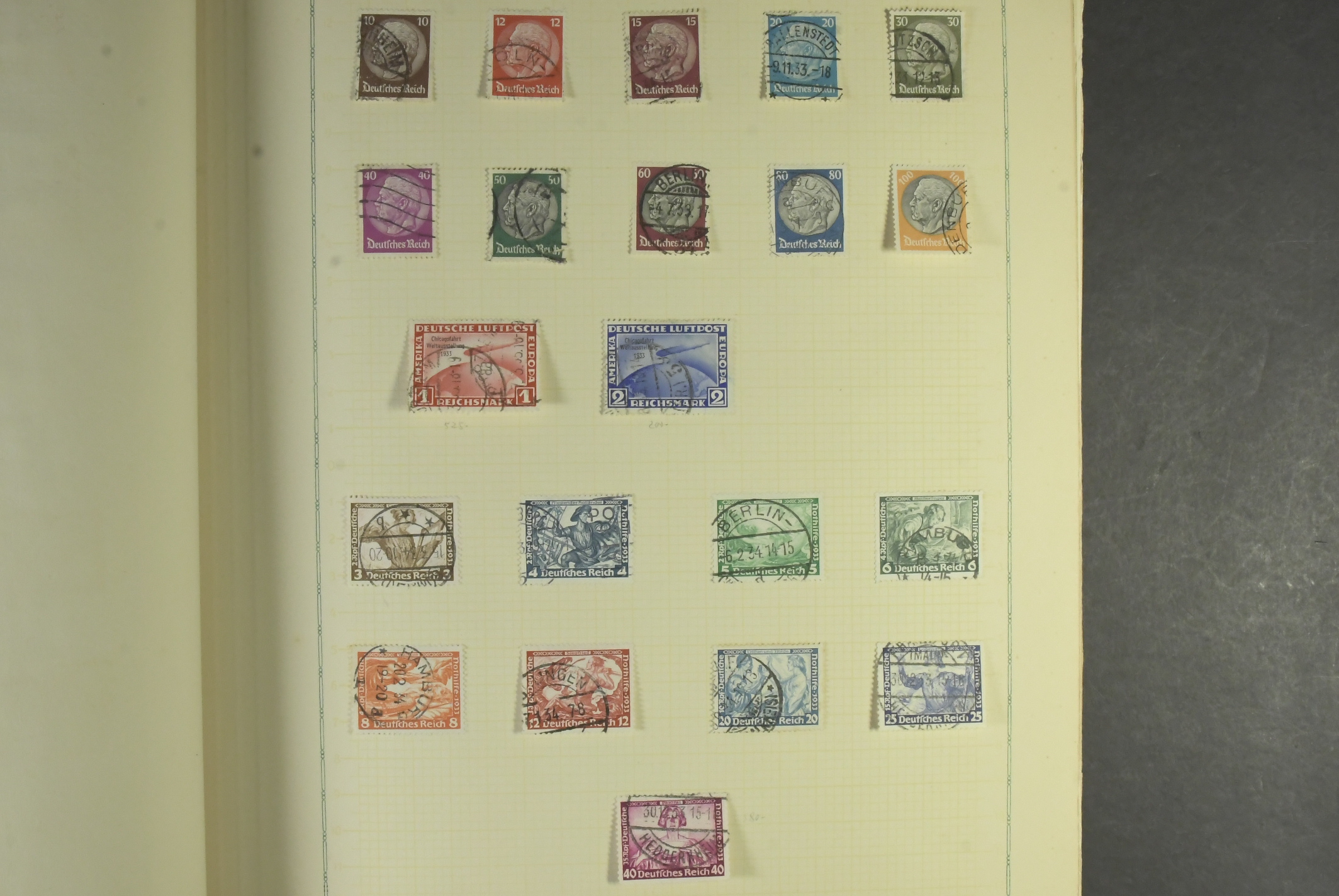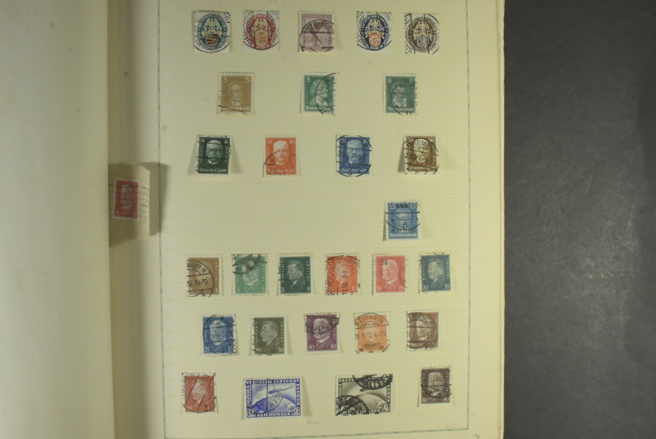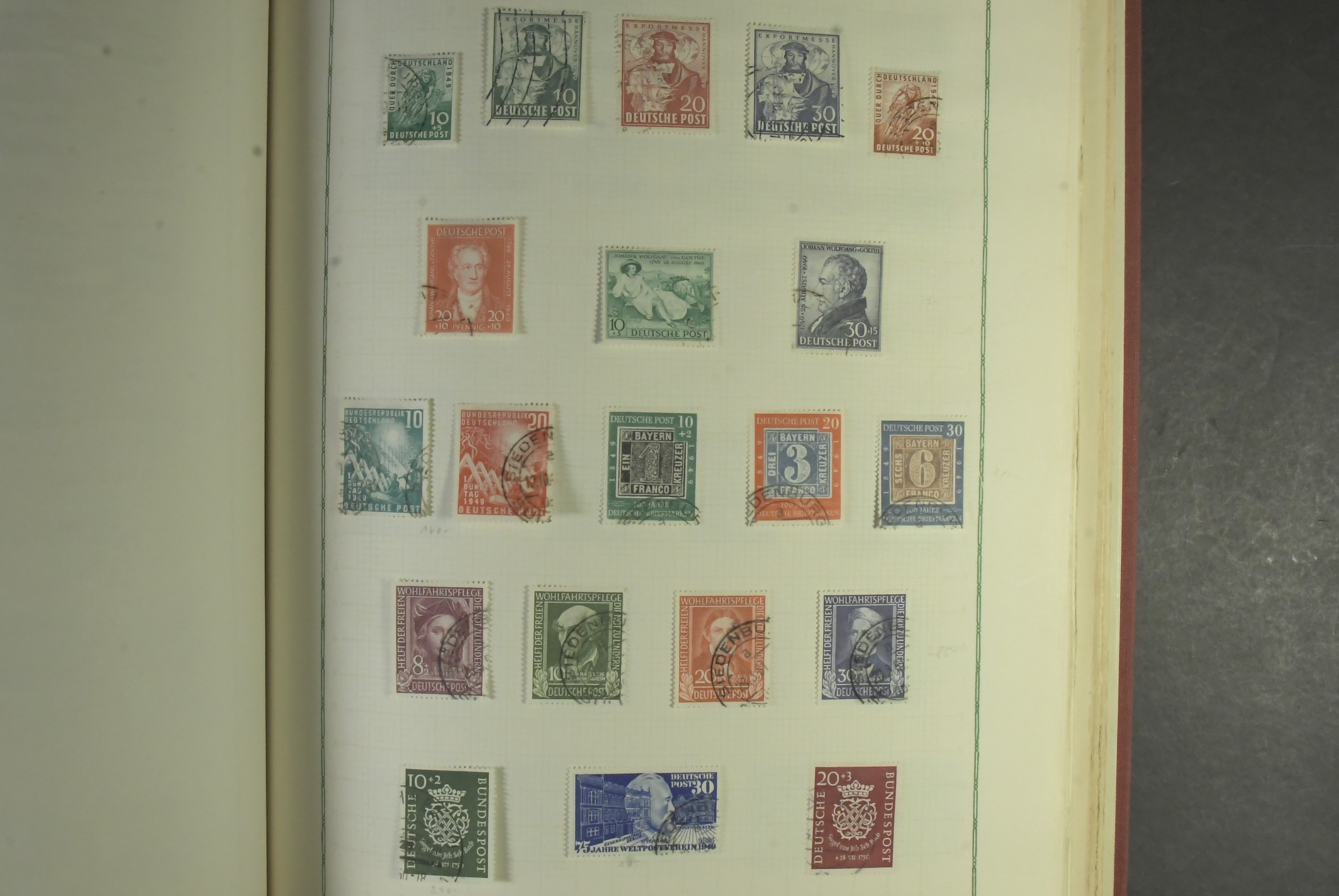 Germany, mixed. Collection used 1850–1964 in album. Several fine and better as "Gelber Hunden", Mi 118 with Hannover cancel on piece, Chicagofahrt 1 and 2 RM, s/s 10 and good early BRD. Mostly fine quality, partly with some aging.