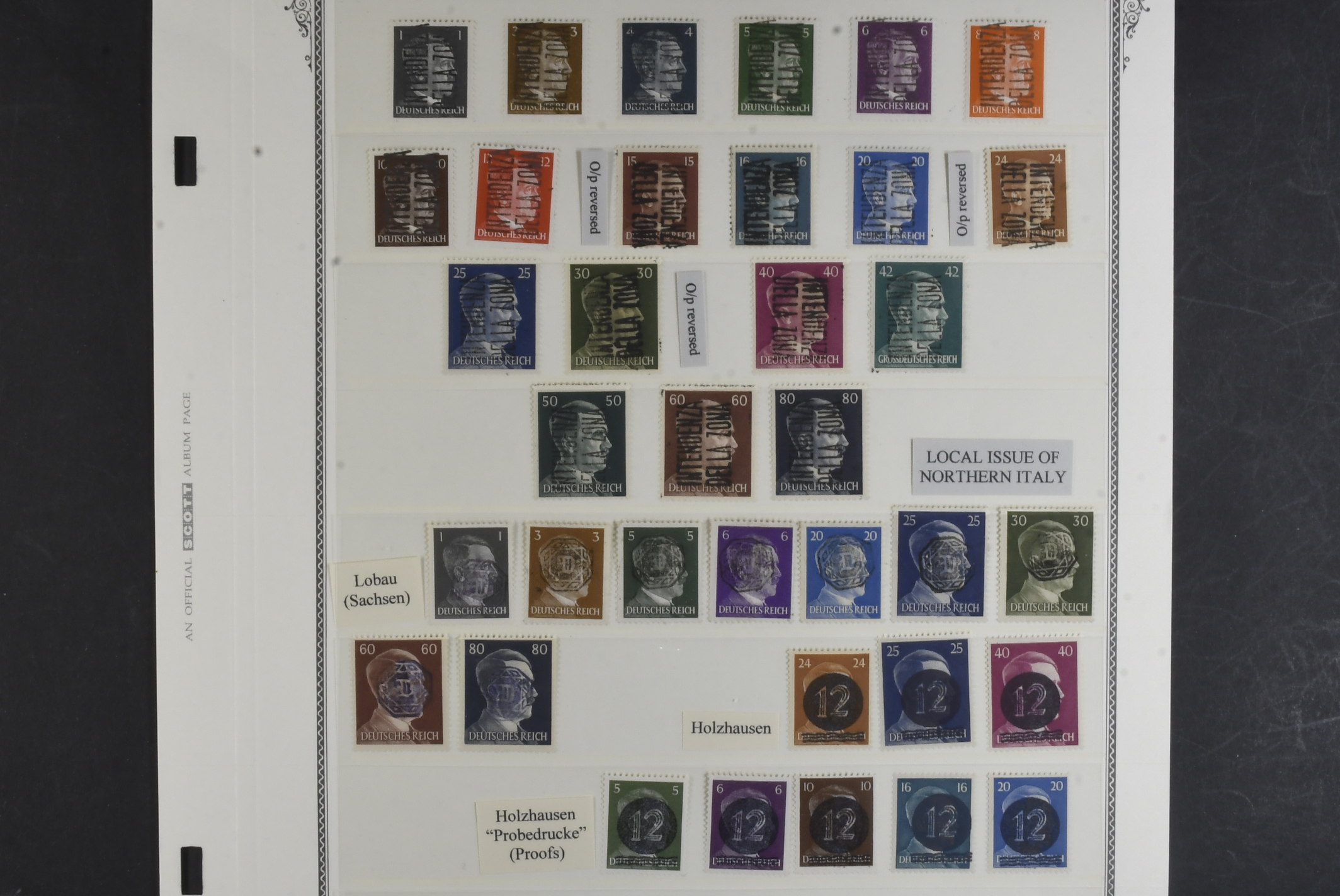 Germany, mixed. ★★/★. 'Hitler is dead', provisional local usages, unlisted in the main stream catalogues including unusual reverse varieties O/Ps for the liberation of Northern Italy, as well as unused Lobau in Saxony, Holzhausen incl. six very scarce proofs, 37 different stamps all in all, no signs.