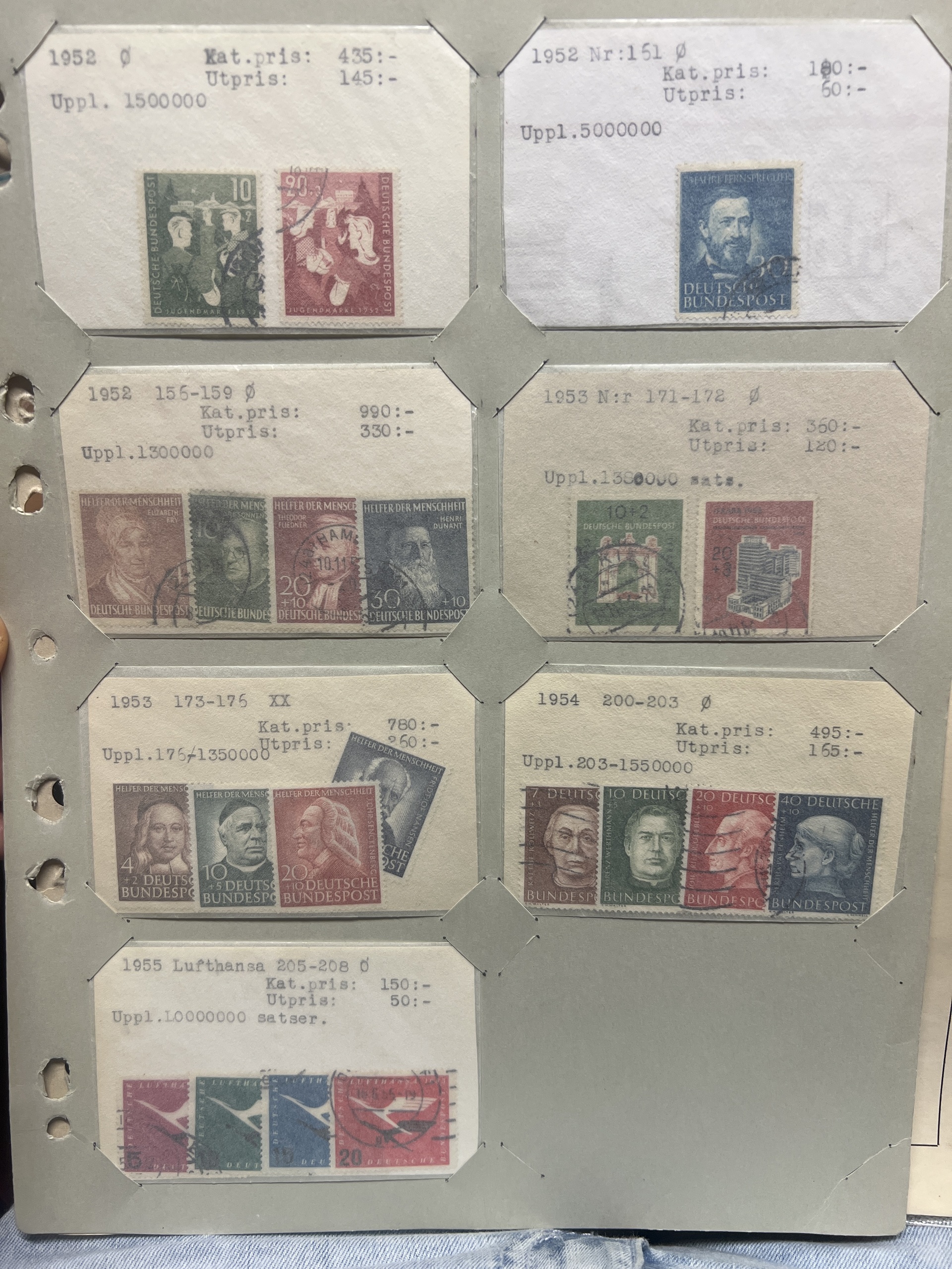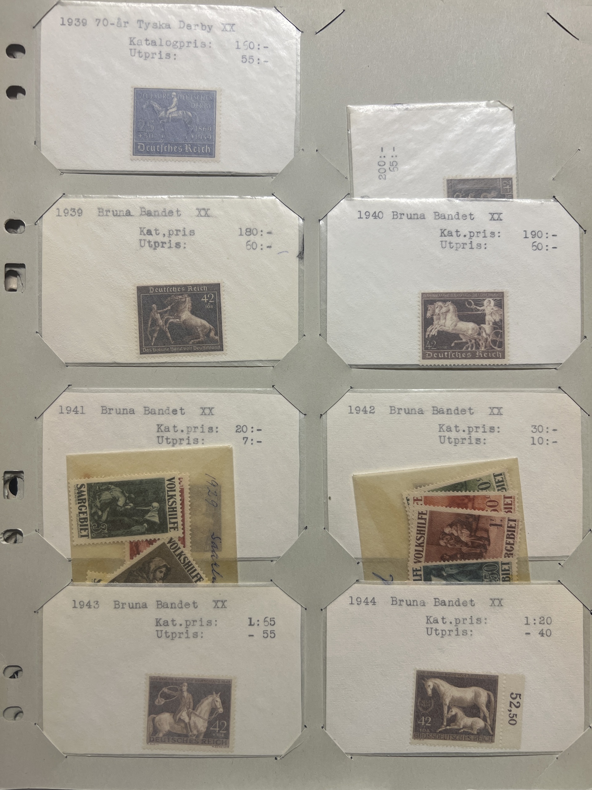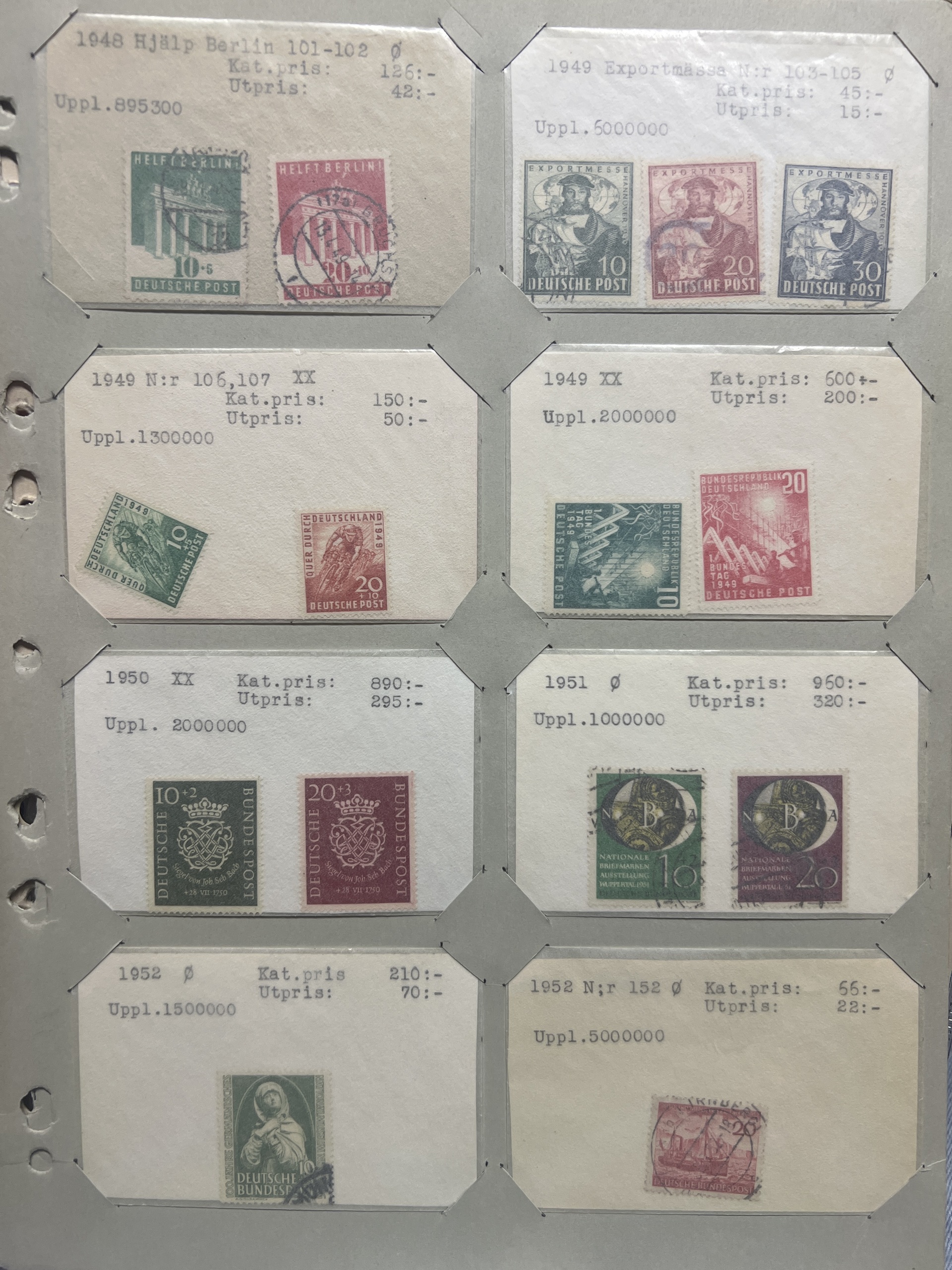 Germany, mixed. Accumulation ★★/★/⊙ 1940–1955 on leaves. Better stamps and sets incl. SAAR, Reich i.e. Braune band 1939–1944, GFR and GDR incl. Karl-Marx souvenir sheets set *. Mostly fine quality. (76)