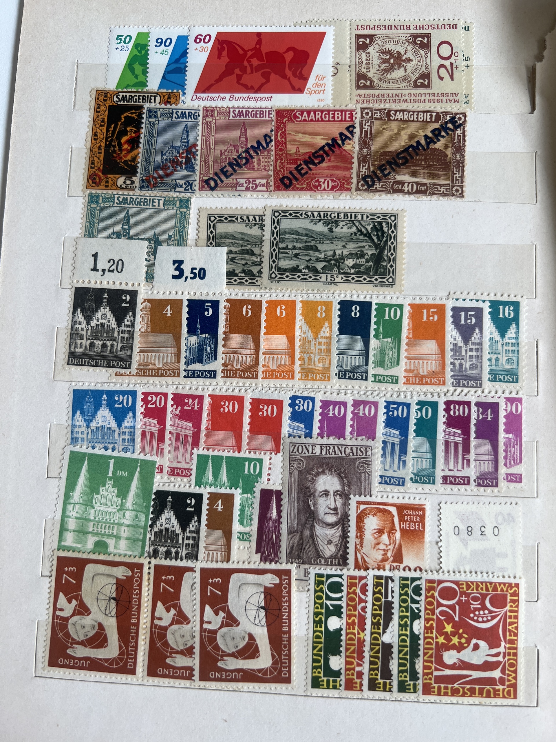 Germany, mixed. Lot ★★ 1945–ca. 1955 on leaves. With some better allied occupation and GFR. Fine quality. (100+)
