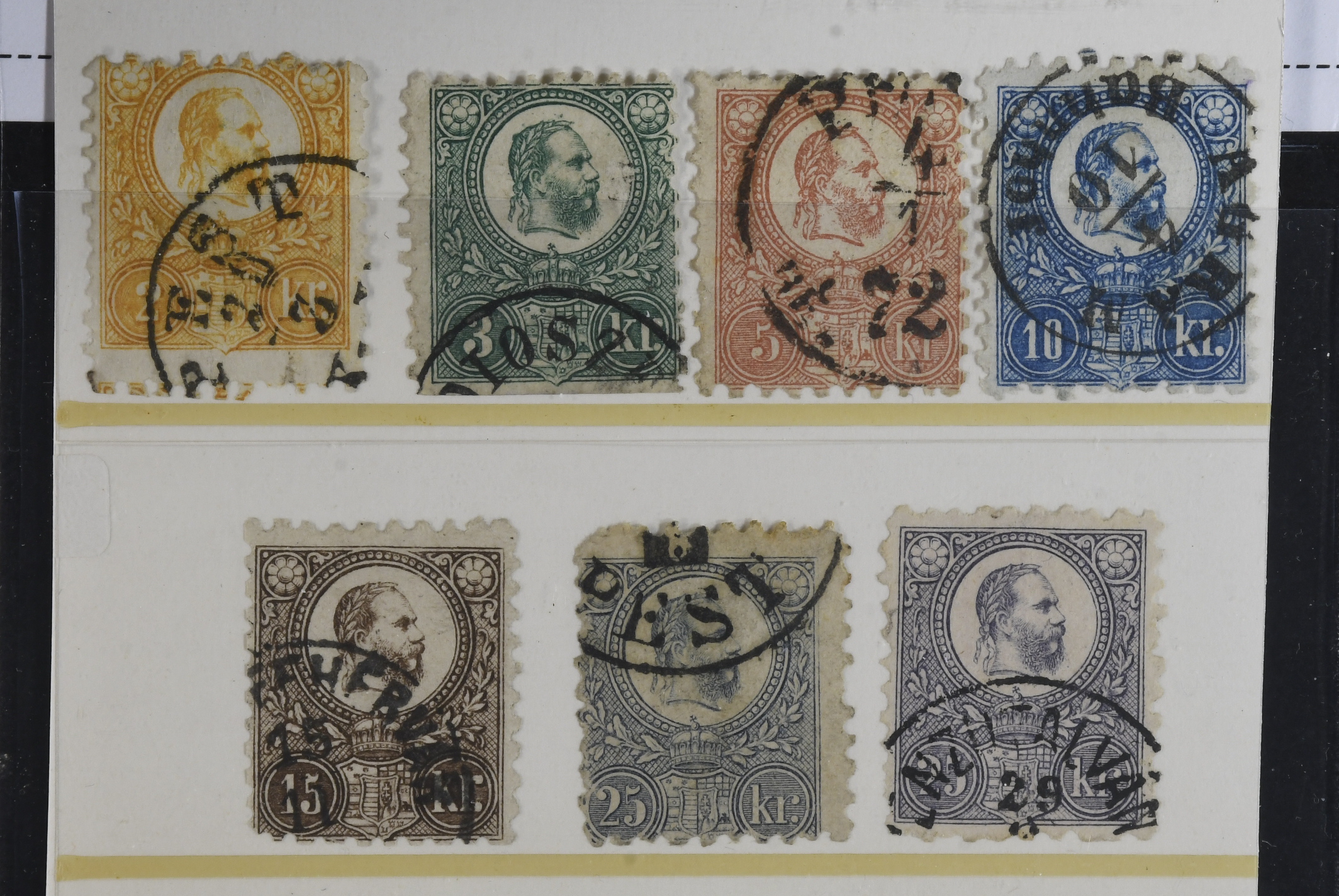 Hungary. Michel 8–13 used, 1871 King Franz Joseph SET type II (6). Including extra 25 kr pale blue (damages). EUR 264