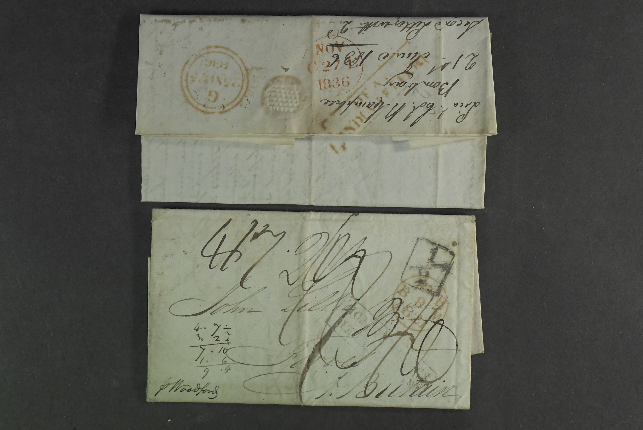 India. Covers. Four letters, amongst many other postmarks representing Deal, India letter, India letter Liverpool, India letter Plymouth, and India letter Ireland. Contents unread, as far as we can see, every cover has a postage due applied, 1830s, a lovely quartet.