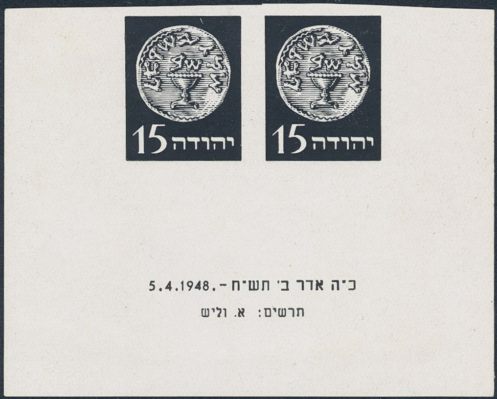 Israel. (★), Black essay 5.4.1948. ED.6, value $2500.